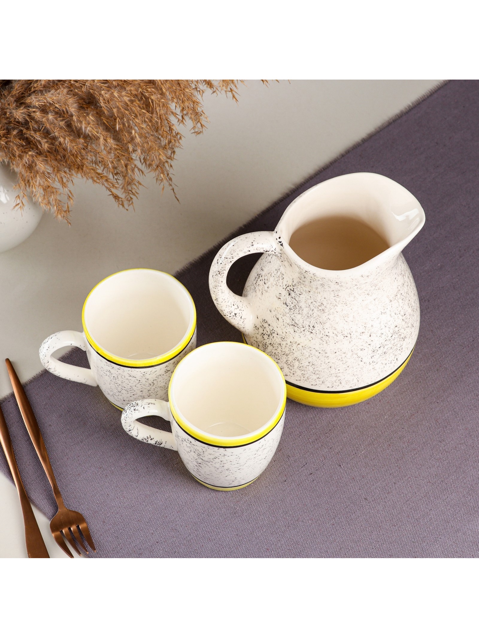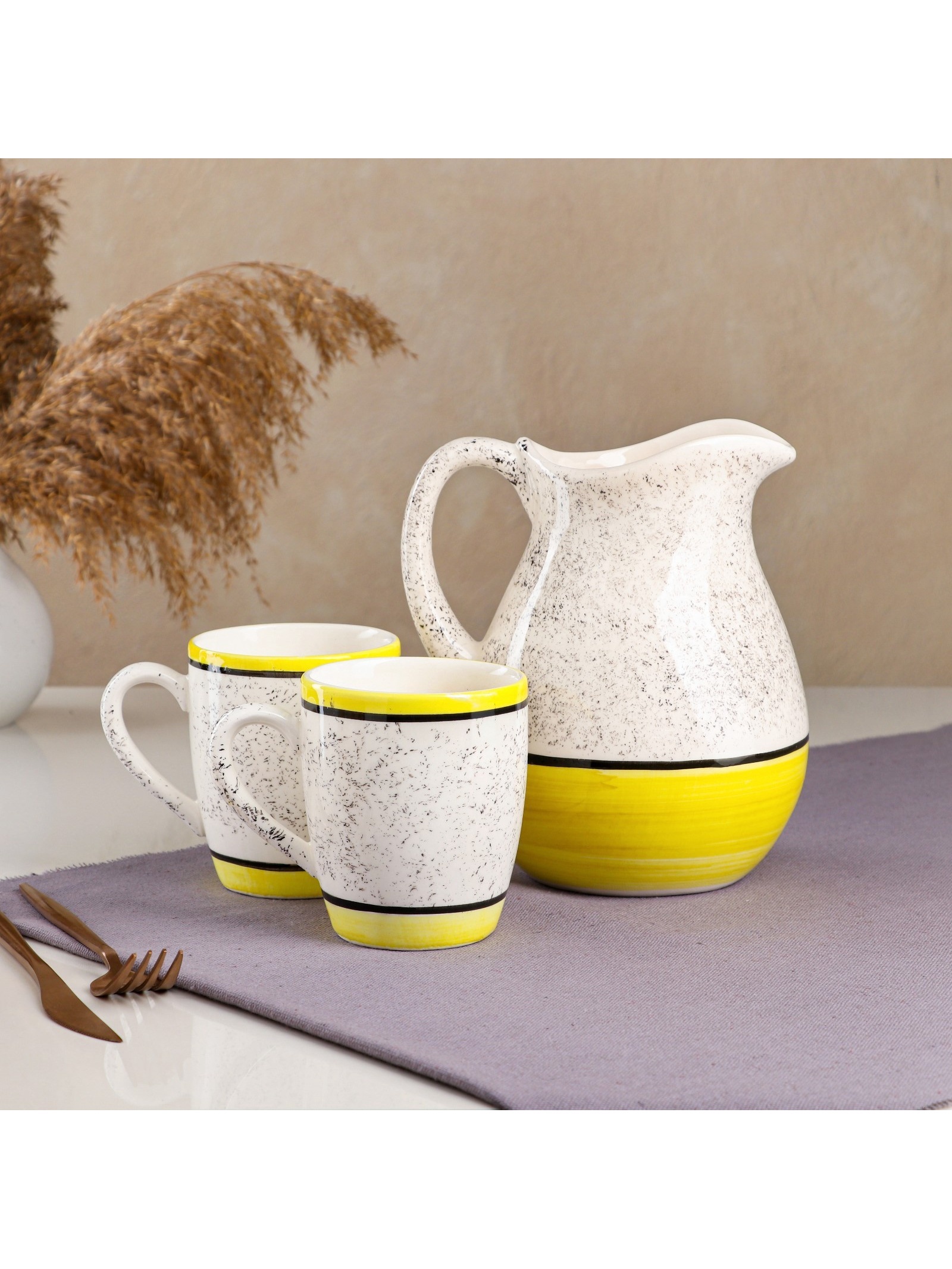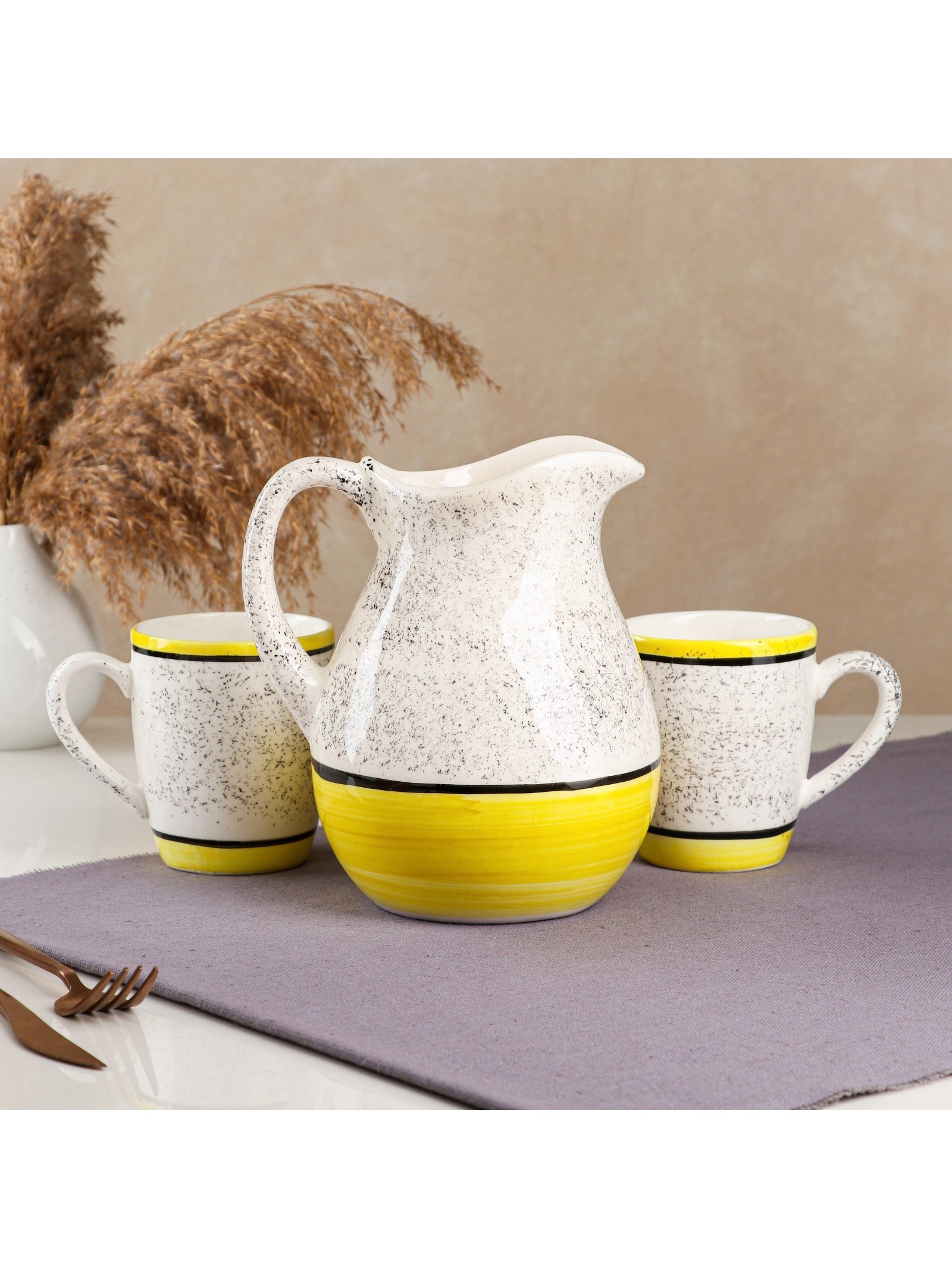 Набор посуды «персия», керамика, 3 предмета: кувшин 1.5 л, кружки 350 мл, 1 сорт, жёлтый, иран