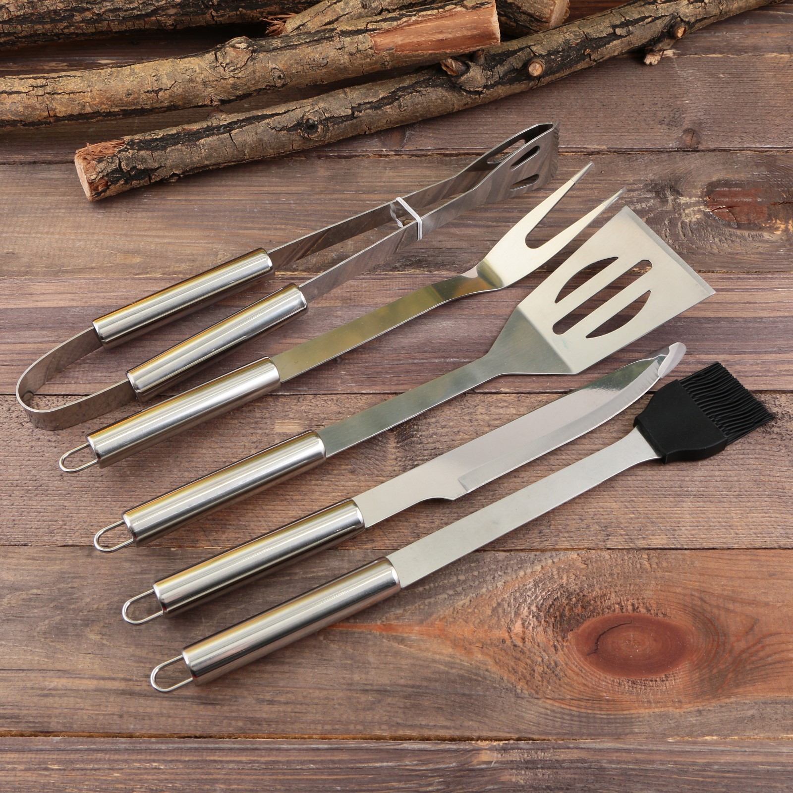 Подарочный набор для барбекю из 5 предметов — идеальный выбор для любителей отдыха на природе и приготовления пищи на открытом воздухе. В комплект входят столовые приборы для готовки на гриле.