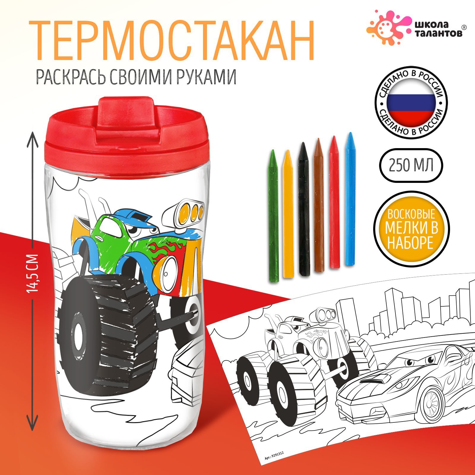 Термостакан детский «крутые гонки», с вставкой-раскраской, цвет ярко-красный, 250 мл