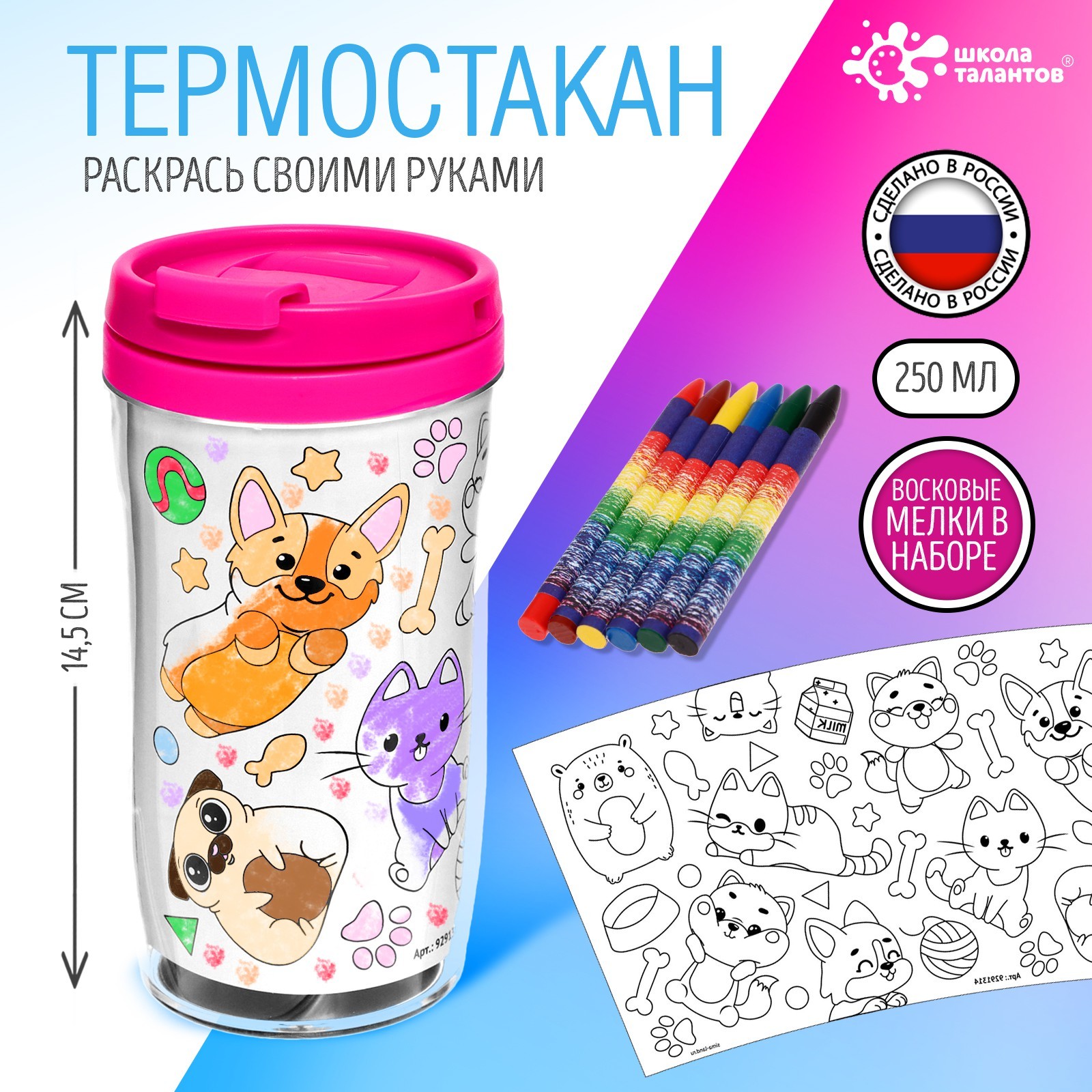Термостакан раскраска «милые зверята», микс