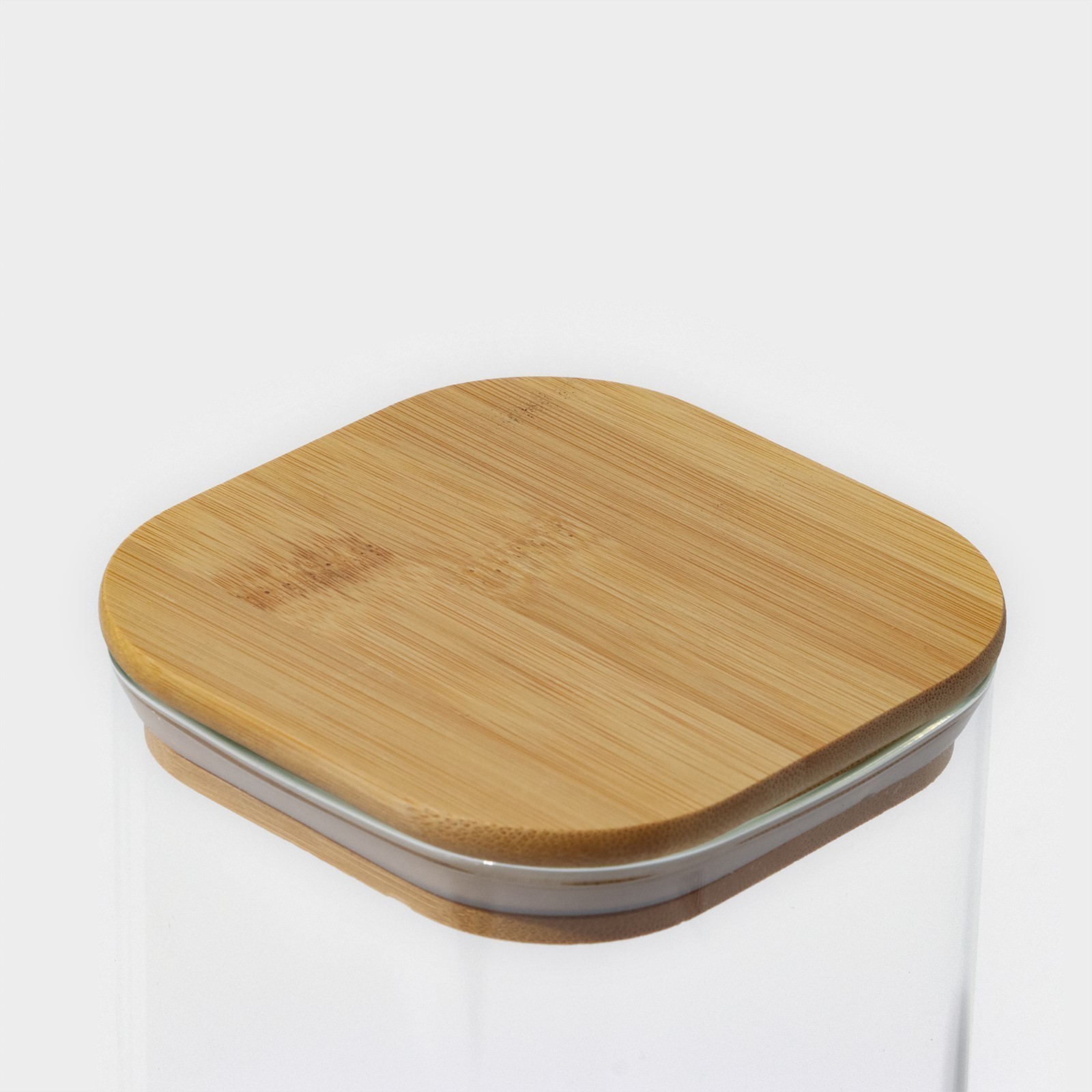 Банка стеклянная для сыпучих продуктов с бамбуковой крышкой Bellatenero «эко. квадратная», 1,5 л, 10x21 см
