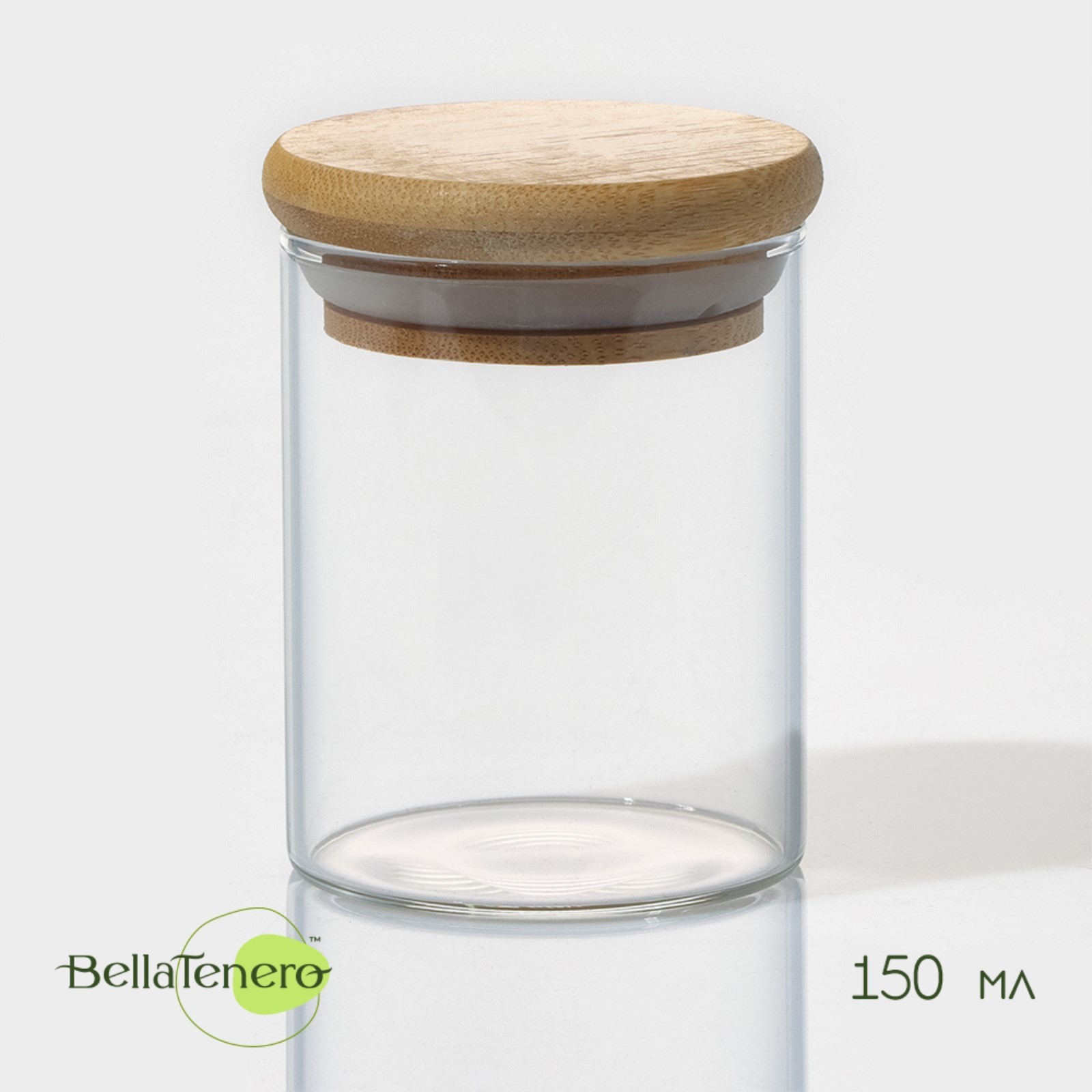 Баночка стеклянная для специй с бамбуковой крышкой Bellatenero «эко», 150 мл, 5,5x7 см