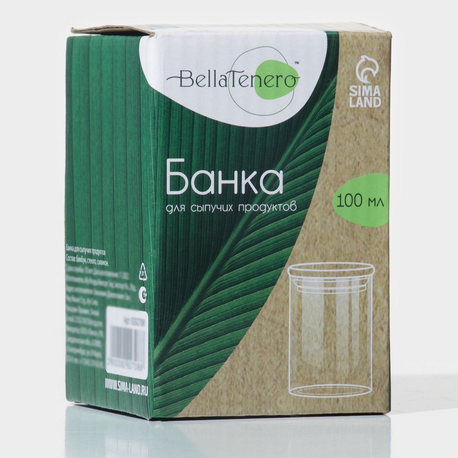 Баночка стеклянная для специй с бамбуковой крышкой Bellatenero «эко», 100 мл, 5x8 см