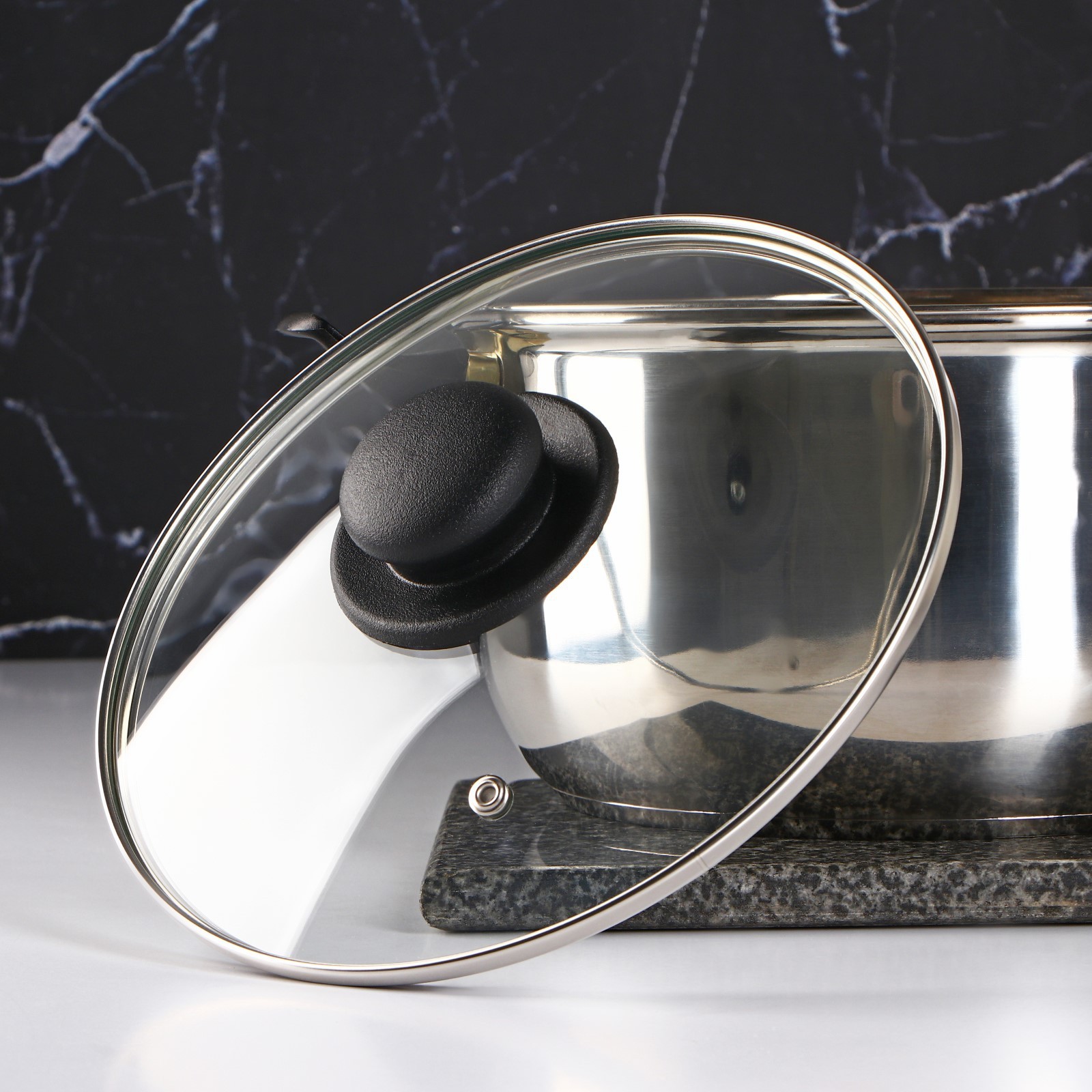 Крышка стеклянная для сковороды и кастрюли «доляна», D=22 см, нержавеющий обод, пластиковая ручка