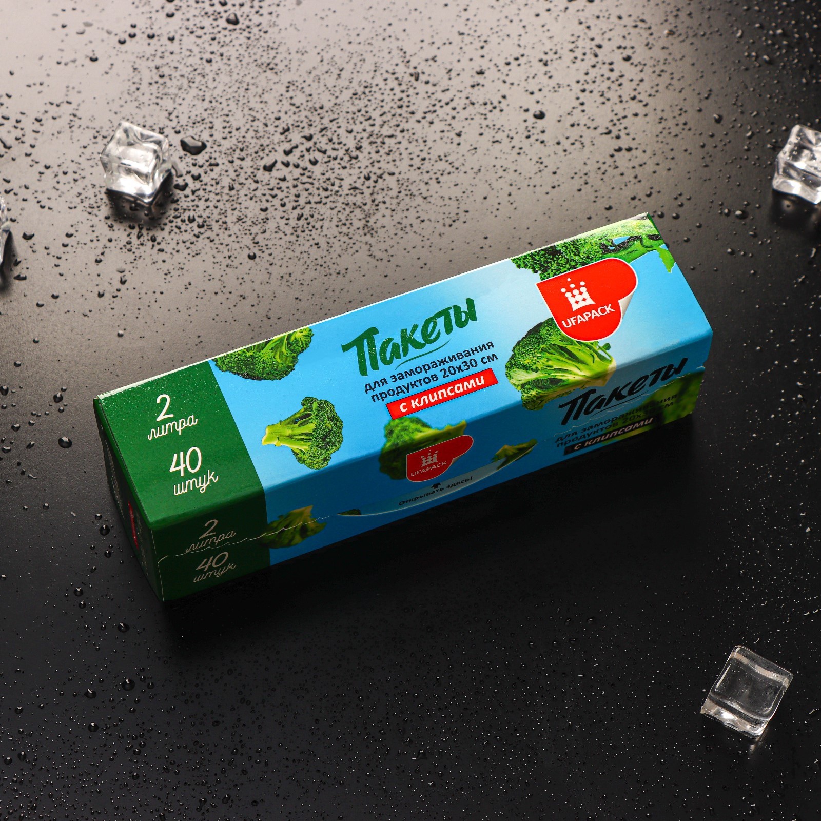 Пакеты для заморозки продуктов «уфа пак», 2 литра, 20x30 см, 40 шт, с клипсами. Пакеты для заморозки изготовлены из прочного и безопасного материала, который не содержит вредных веществ и не влияет на качество продуктов. Вы можете быть уверены, что ваши продукты будут оставаться свежими и безопасными для потребления. Не упускайте возможность приобрести эти пакеты для заморозки с застежкой и использовать их для хранения продуктов в вашем доме. Они станут надежным помощником в сохранении свежести и качества ваших продуктов, а также позволят сэкономить пространство в вашем холодильнике! parts count: 0 В наборе, шт.: 40 tnved: 3923210000 Вид застёжки: Клипса Материал: ПВД Назначение: Для замораживания Температурное ограничение: Нет  развернуть описание ▼