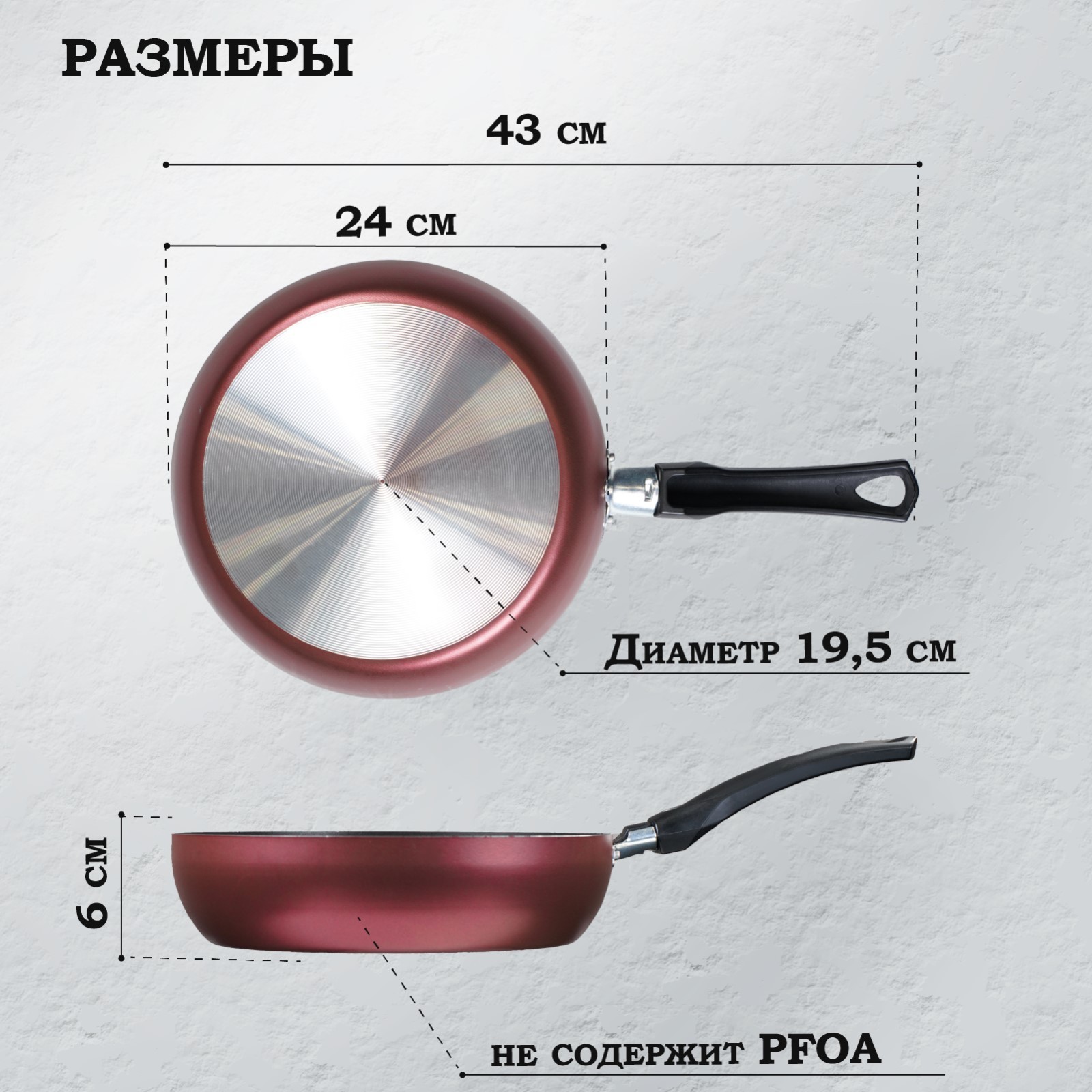 Сковорода Promo, D=24 см, пластиковая ручка, антипригарное покрытие, цвет бордовый