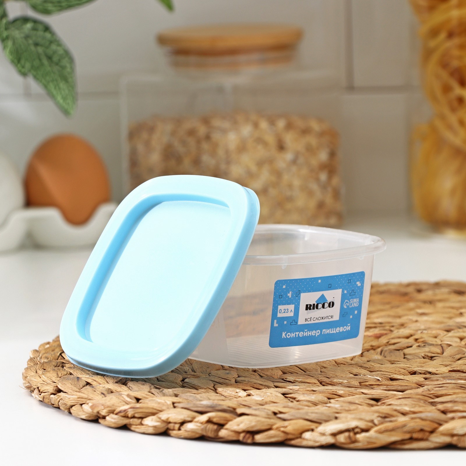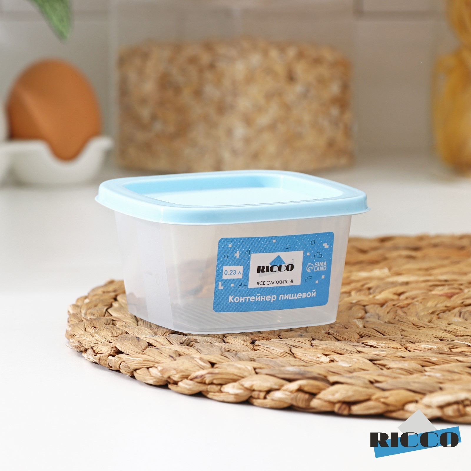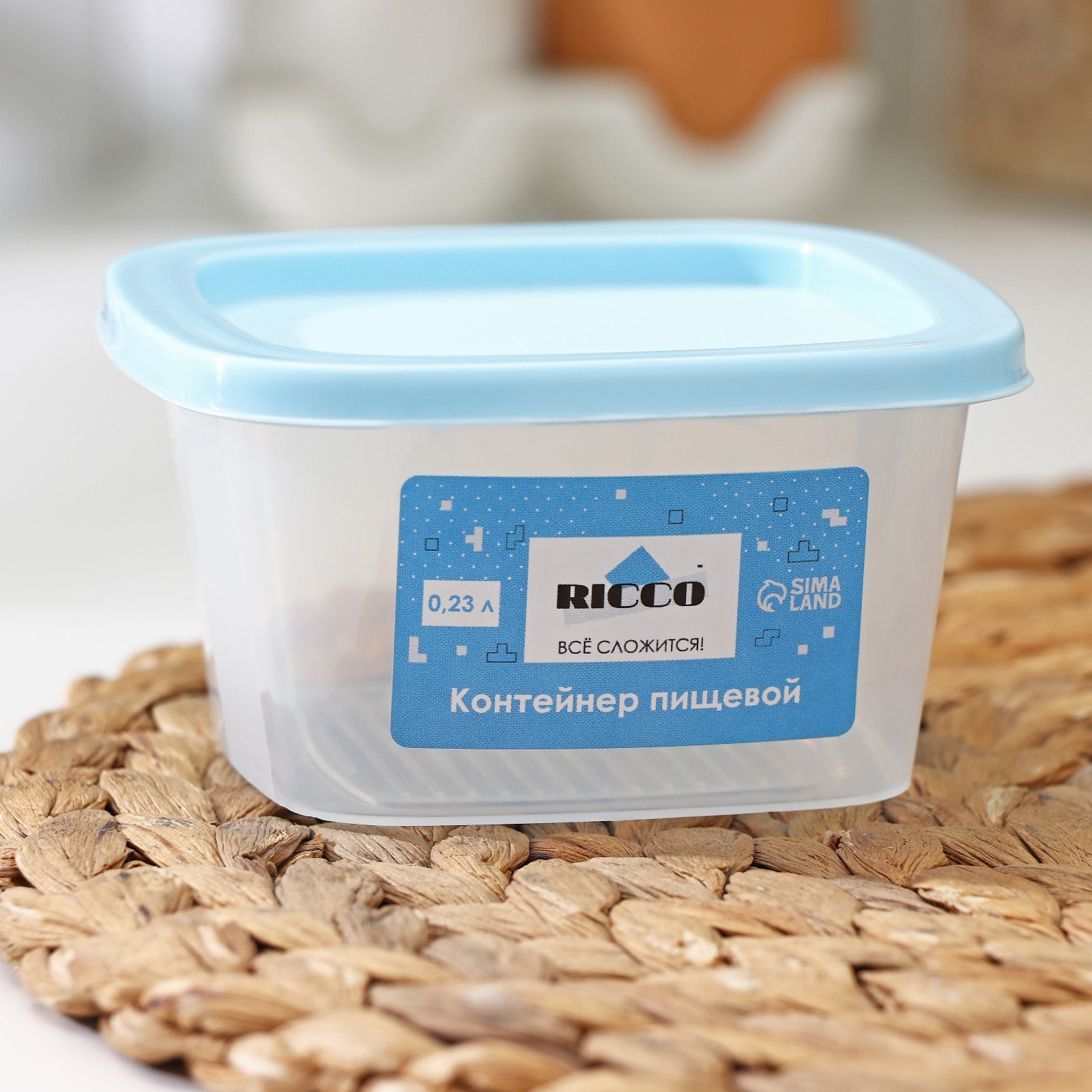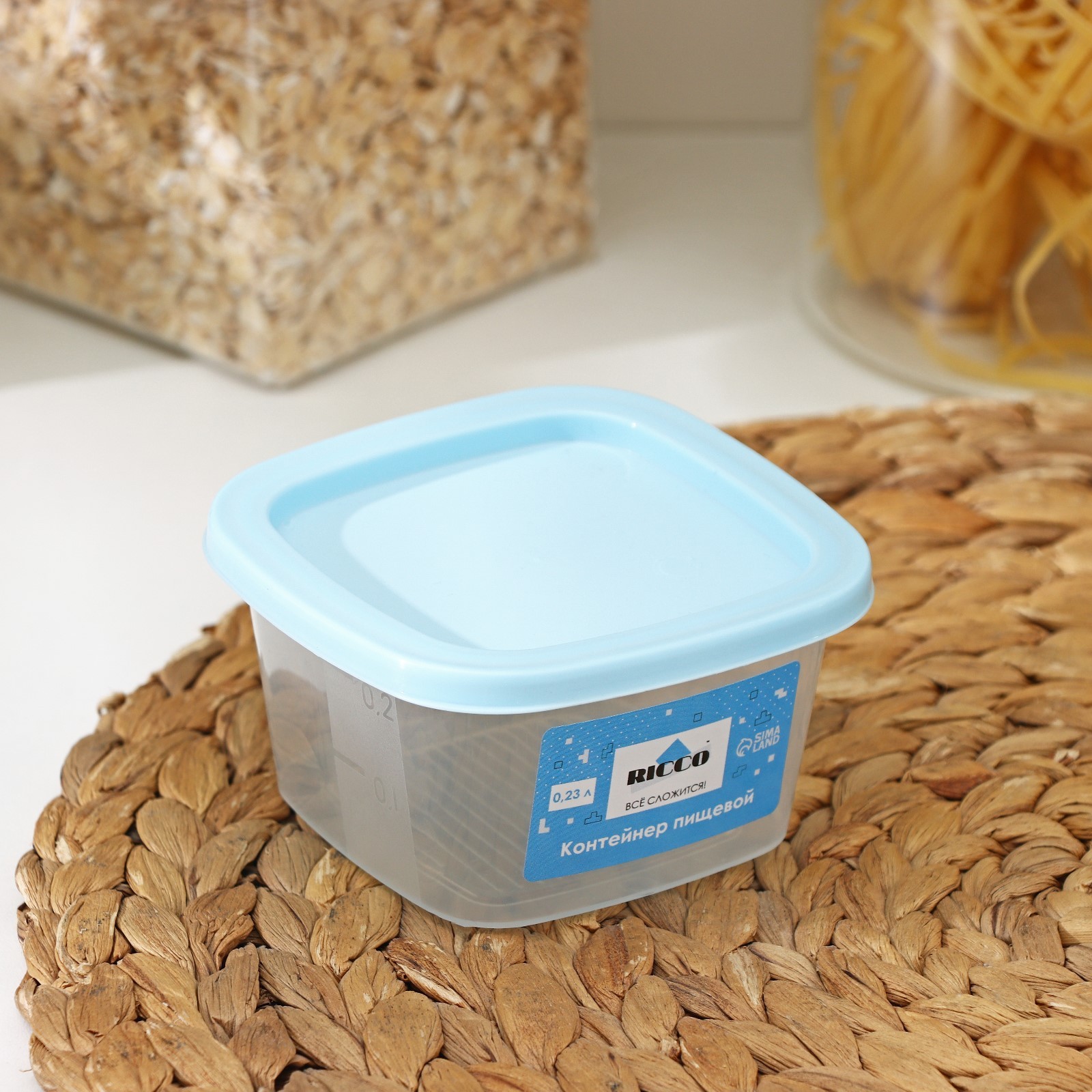 Контейнер пищевой Ricco, 230 мл, 9,6x9,6x5,2 см, квадрат, цвет прозрачный, крышка голубая