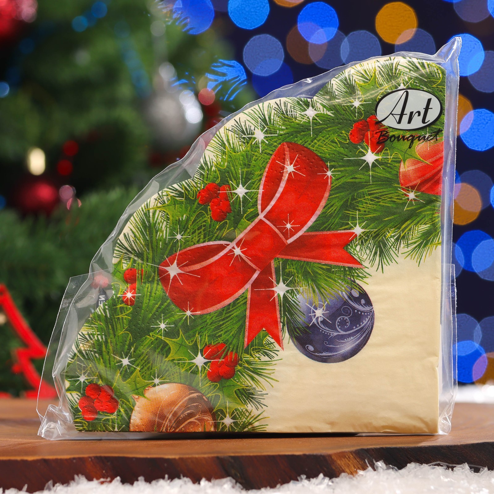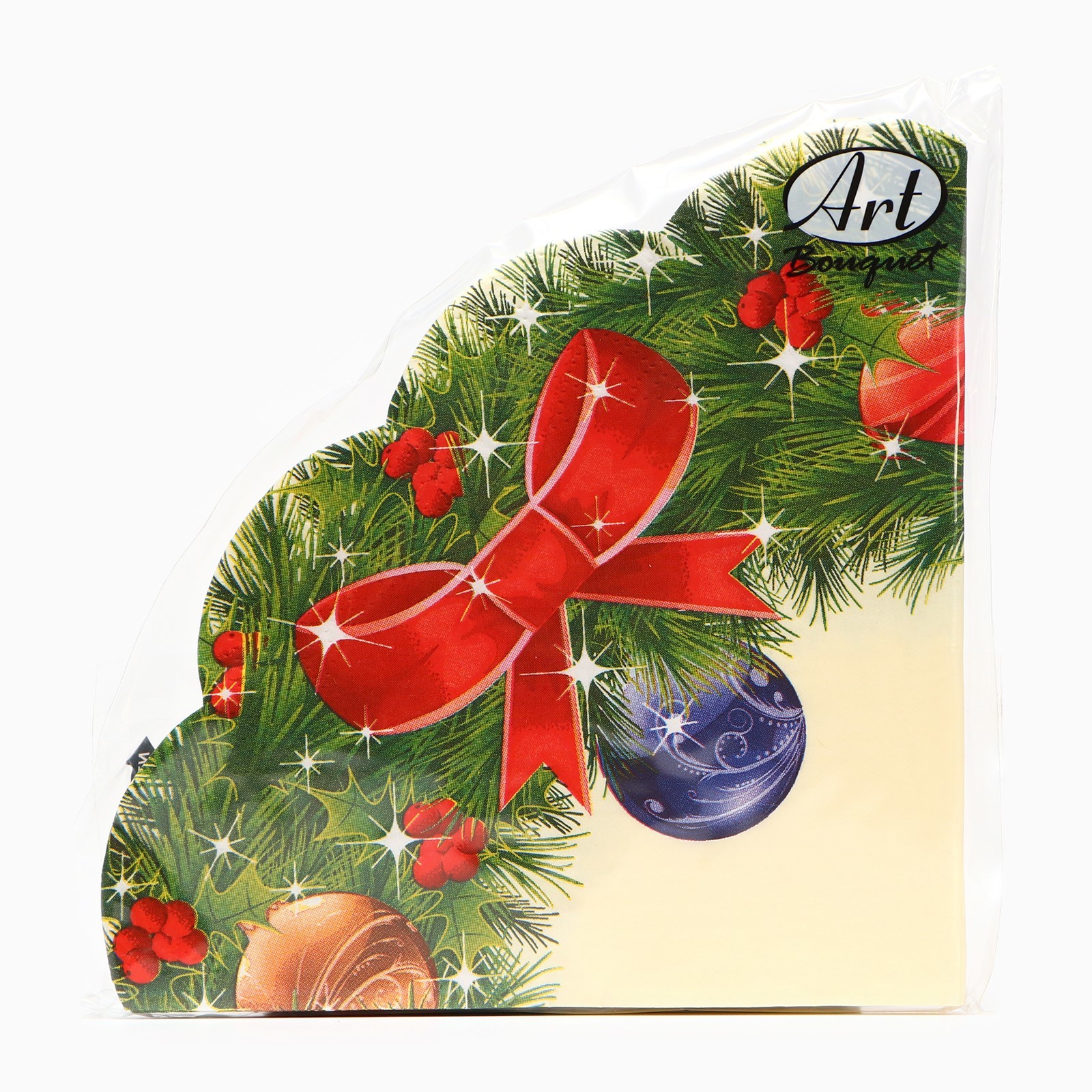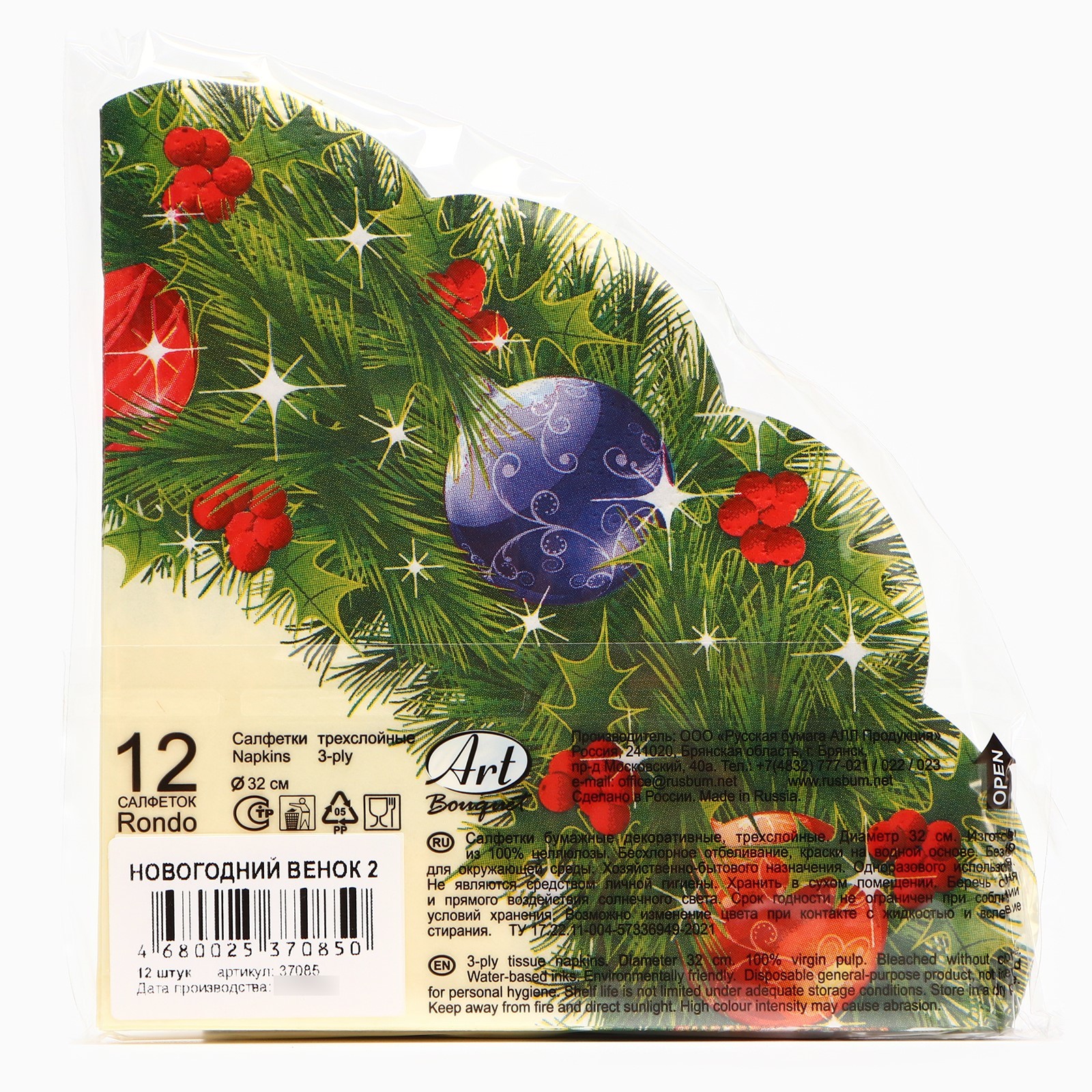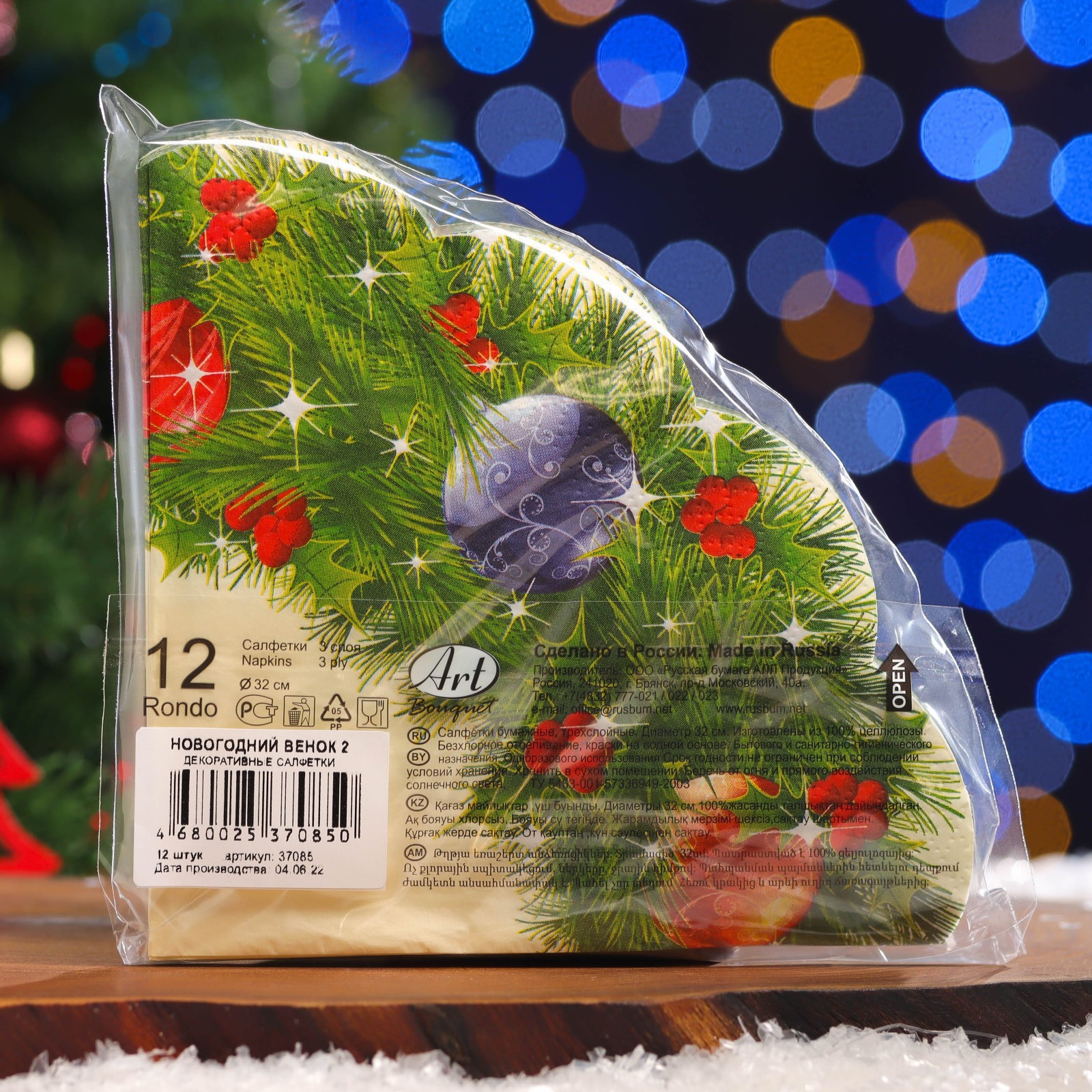 Новогодние салфетки бумажные круглые Art Bouquet Rondo «новогодний венок - 2», 3 слоя, D 32 см, 12 шт