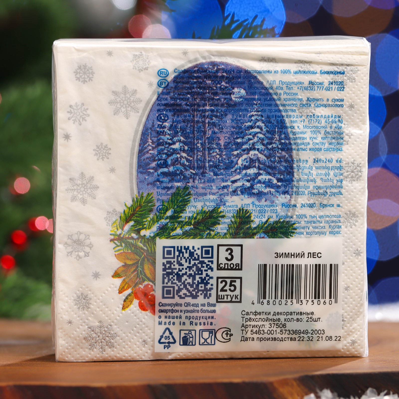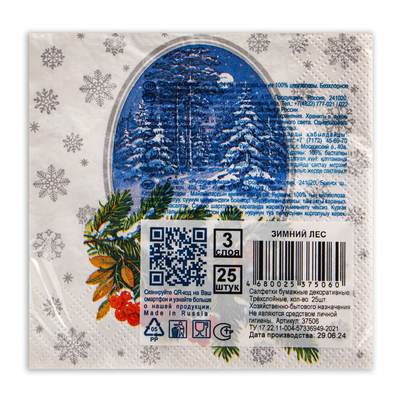 Новогодние салфетки бумажные Art Bouquet «зимний лес», 3 слоя, 24x24 см, 25 шт