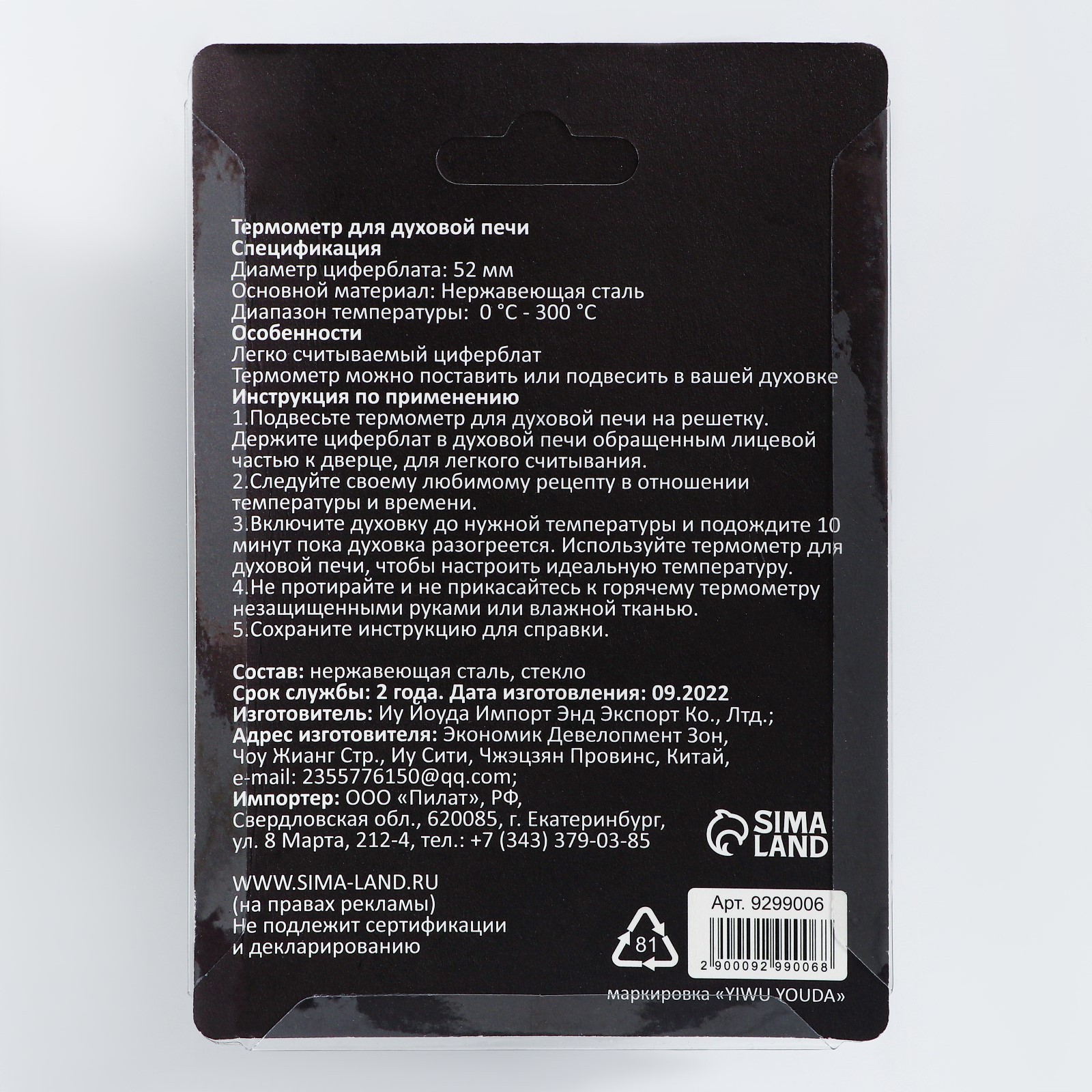 Термометр мастер к "для духовой печи", 50-300 °c, 6 х 7 см