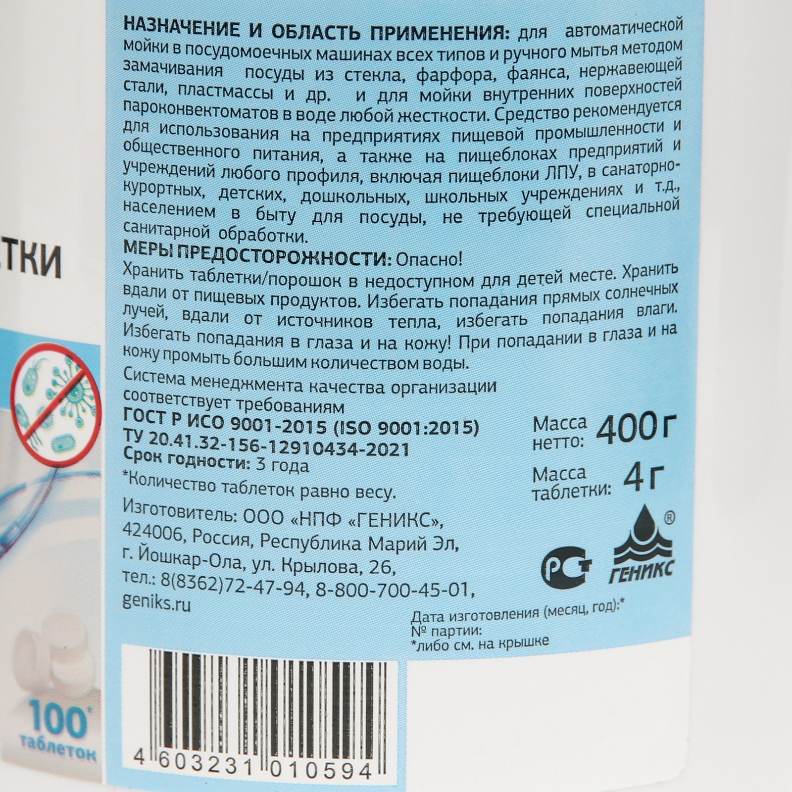 Средство для посудомоечных машин "ника" с антибактериальным эффектом, 100 шт. Таблетки предназначены для автоматической мойки в посудомоечных машинах всех типов и ручного мытья методом замачивания посуды из стекла, фарфора, фаянса, нержавеющей стали, пластмассы и др. и для мойки внутренних поверхностей пароконвектоматов в воде любой жесткости. Способ применения: для бытовых посудомоечных машин 1-4 таблетки (в зависимости от степени загрязнения). Мытье методом замачивания1-4 таблетки на 5 л. воды. Погрузить посуду на 5-15 минут. Состав: натрия триполифосфат > 15 %, сода кальцинированная > 15 %, поликарбоксилаты, натрия перкарбонат, активатор отбеливания, НПАВ, комплексообразователь, энзимы, вспомогательные компоненты. parts count: 0 В упаковке, шт.: 100 Ароматизированные: Нет Температурное ограничение: Нет  развернуть описание ▼