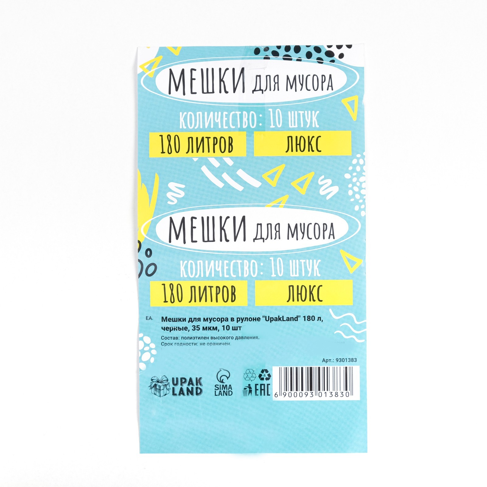 Мешки для мусора в рулоне "Upak Land" 180 л, черные, пвд, толщина 35 мкм, 88 х 106 см. 10 шт.
