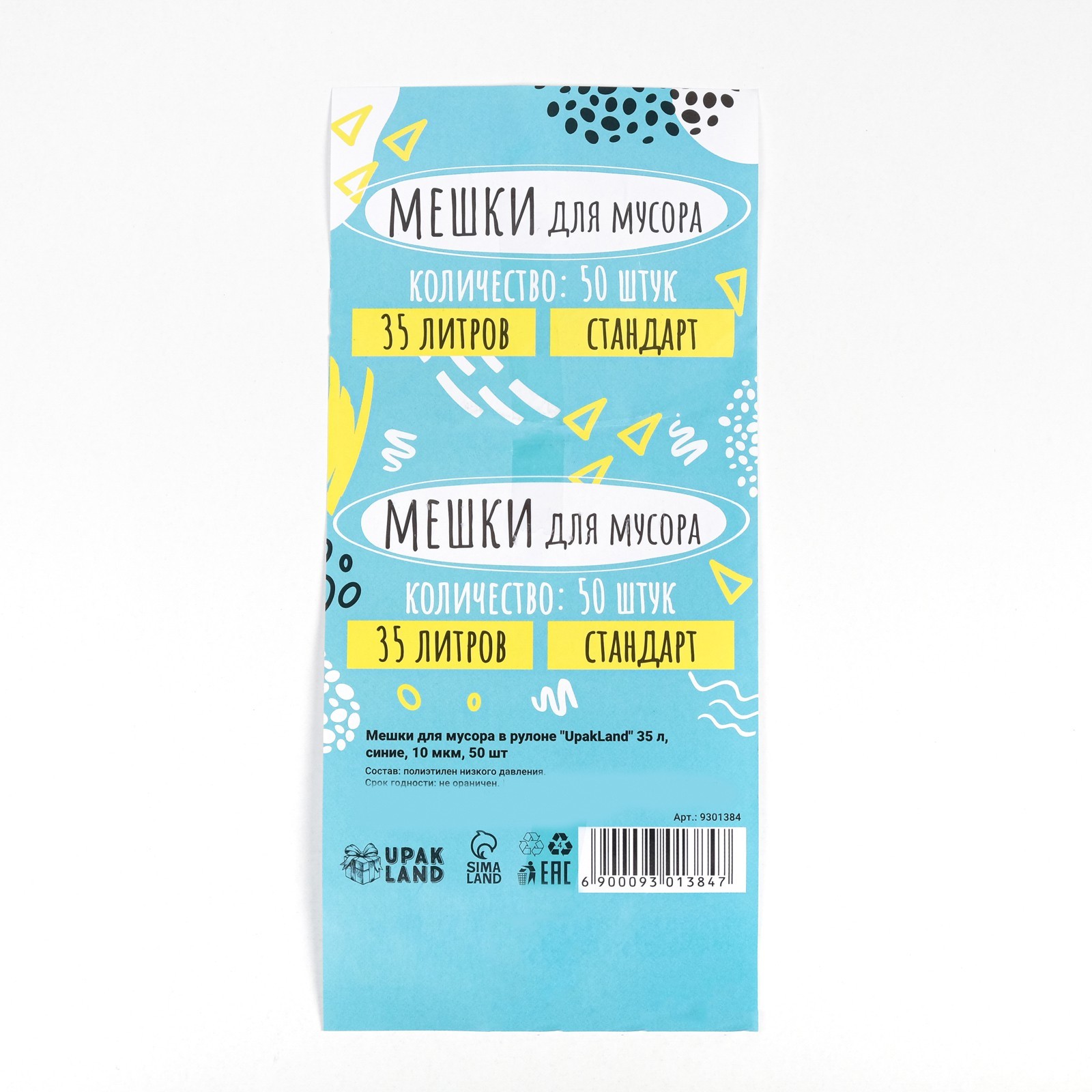 Мешки для мусора в рулоне "Upak Land" 35 л, синие, пнд толщина 10 мкм, 45 х 60 см. 50 шт.