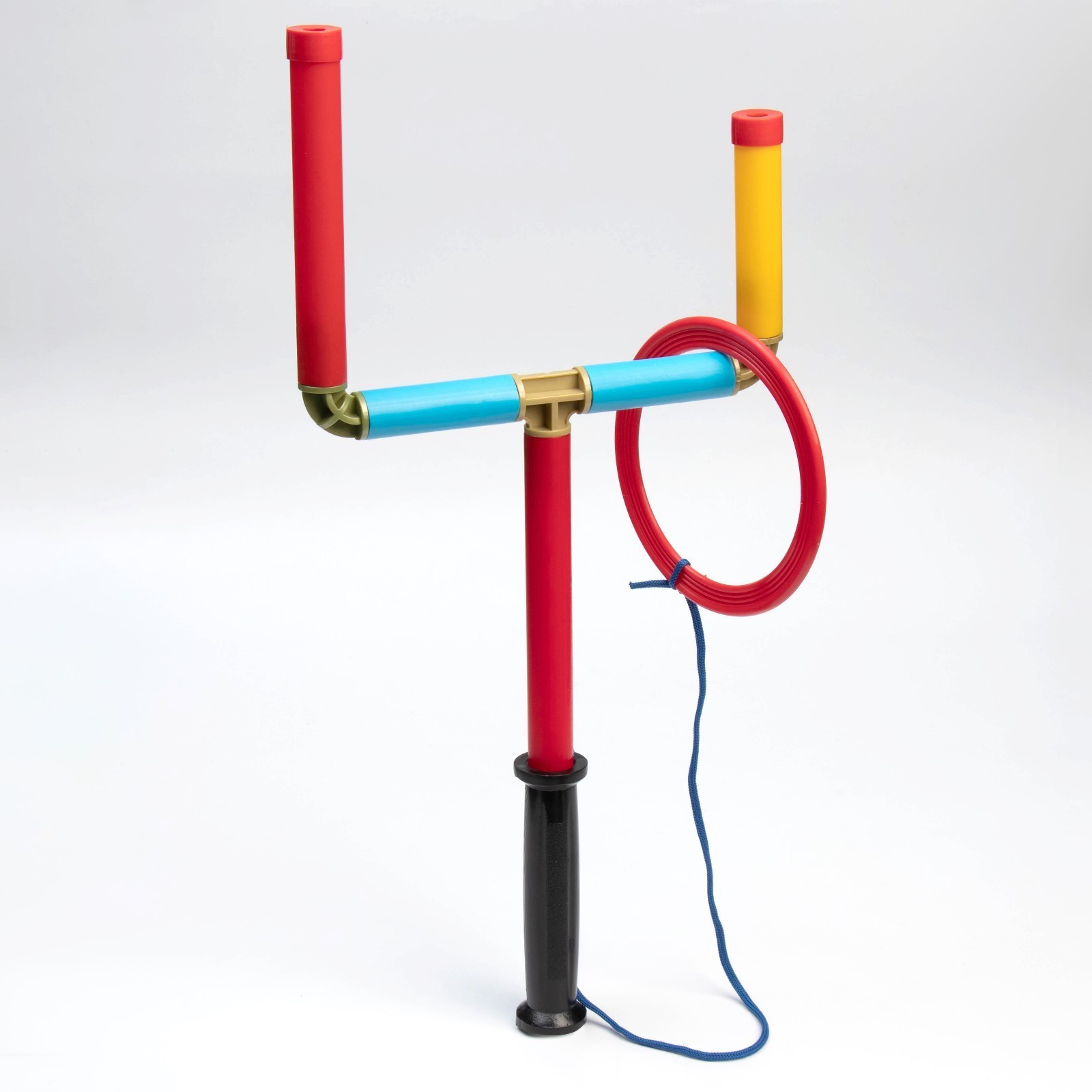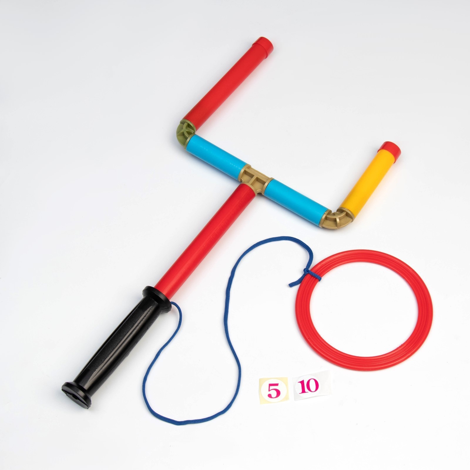 Игра кольцеброс "поймай кольцо". Увлекательная игра для развития ловкости и координации. Играть очень просто: раскачивая кольцо на веревке, игрок подбрасывает его кверху и старается поймать кольцо одной из стоек. В комплекте идут наклейки 5 и 10 очков. Ребенок сам выбирает на какую стойку (маленькую или большую) их наклеить. Задача игрока за определенное кол-во подбрасываний набрать наибольшее кол-во очков. Семейная игра позволяет устроить соревнования или эстафету, в которых победит игрок, набравший наибольшее количество очков за фиксированное количество попыток забросить кольцо. Увлекательная игра станет отличным подарком малышам и более взрослым детям на день рождения, новый год или другой праздник. Играть можно в помещении или на улице, игру легко взять с собой на прогулку, пляж, на дачу, в загородный дом, на природу или пикник. Яркий тренажер ловкости, меткости, координации движений, концентрации внимания можно установить в детском саду, школе, в детском лагере, на уличной площадке. Возраст: От 3 лет Материал: Пластик Количество игроков: 1 игрок Температурное ограничение: Нет Назначение: Для улицы Вид игры: Кольцеброс Вид: Кольцеброс  развернуть описание ▼