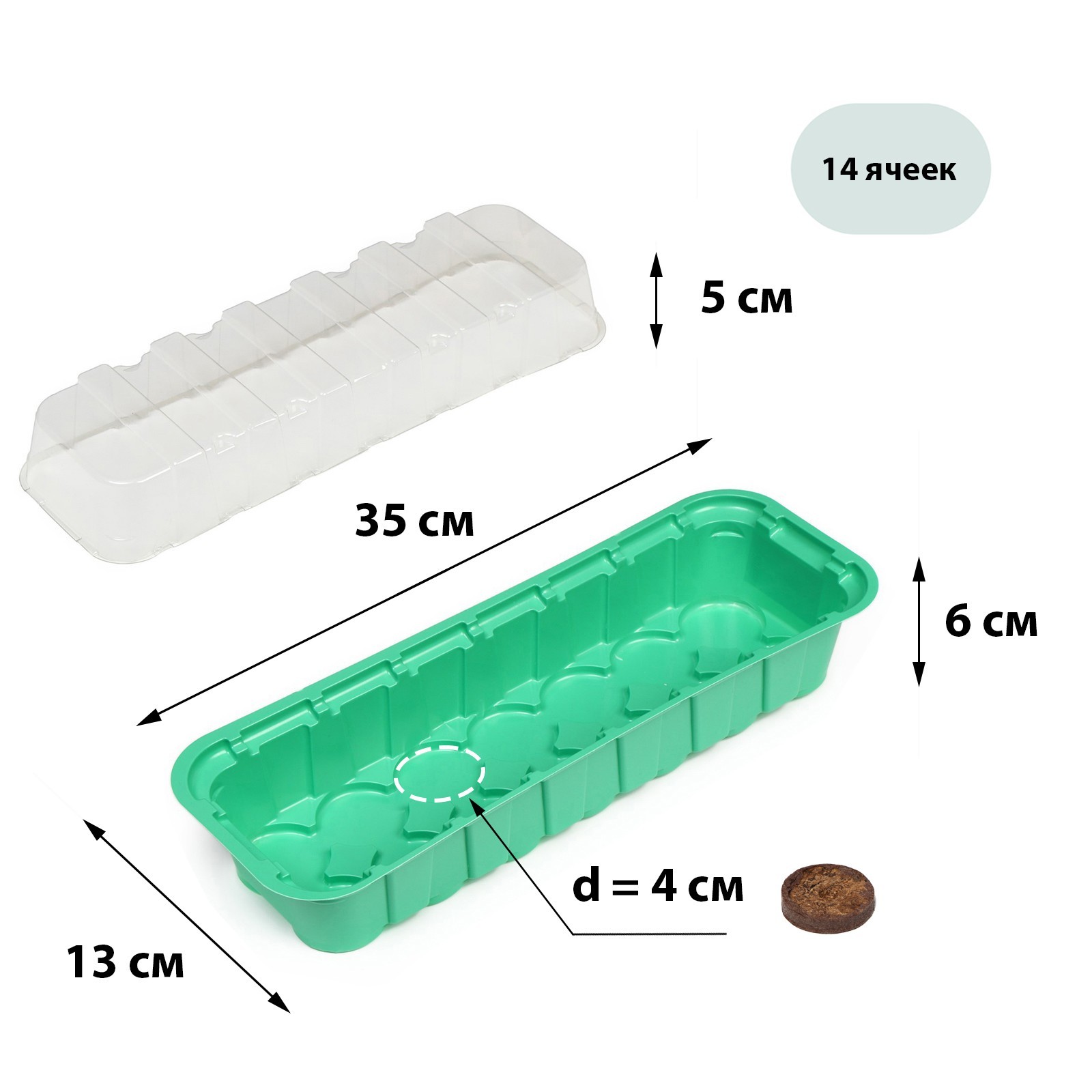 Мини-парник для рассады, 35 13 11 см, 24 ячейки под таблетки для рассады D=4 см, пластик, Greengo