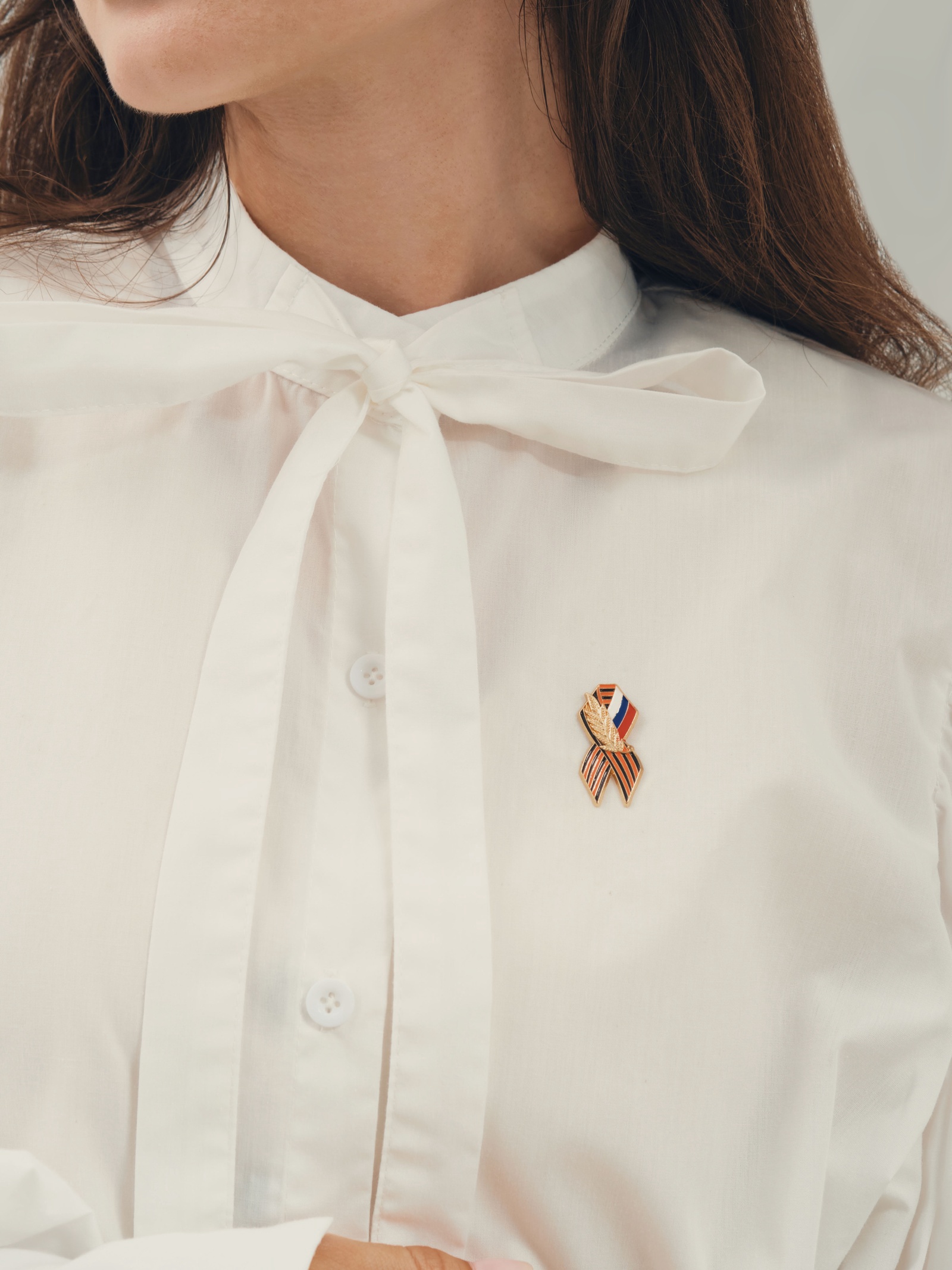 Значок «георгиевская лента» с флагом россии, цветной в золоте