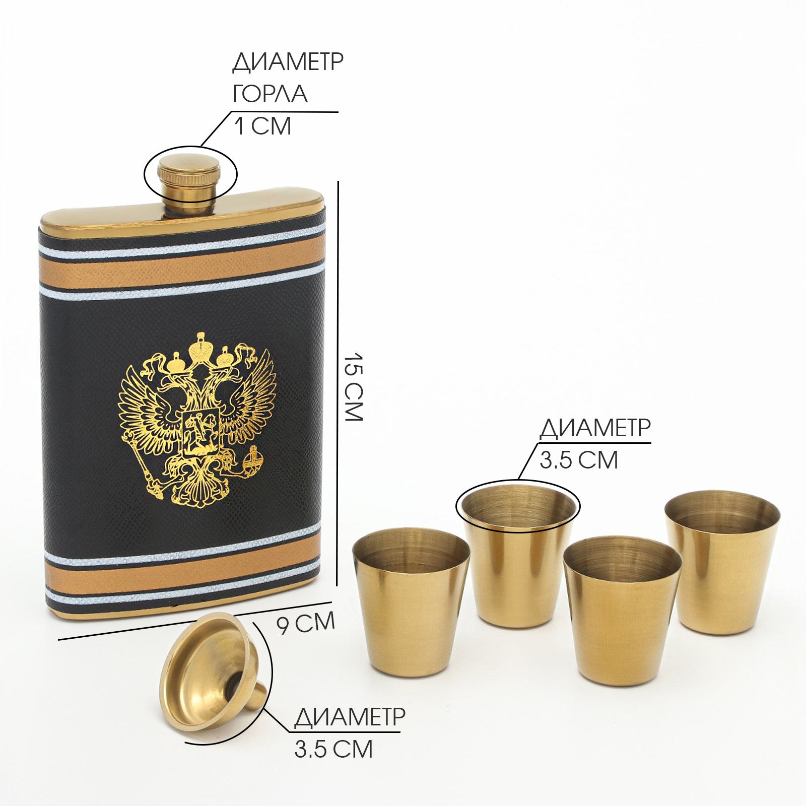 Подарочный набор 6 в 1 "герб": фляжка 270 мл, 4 стопки по 40 мл, воронка