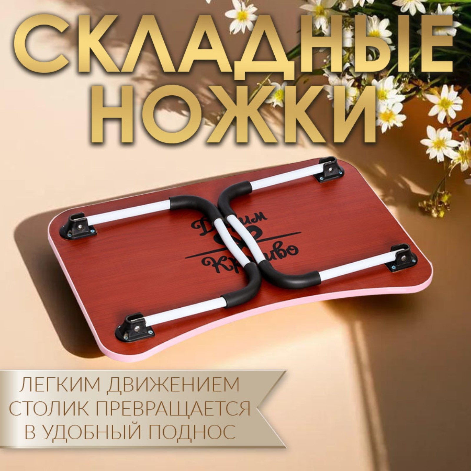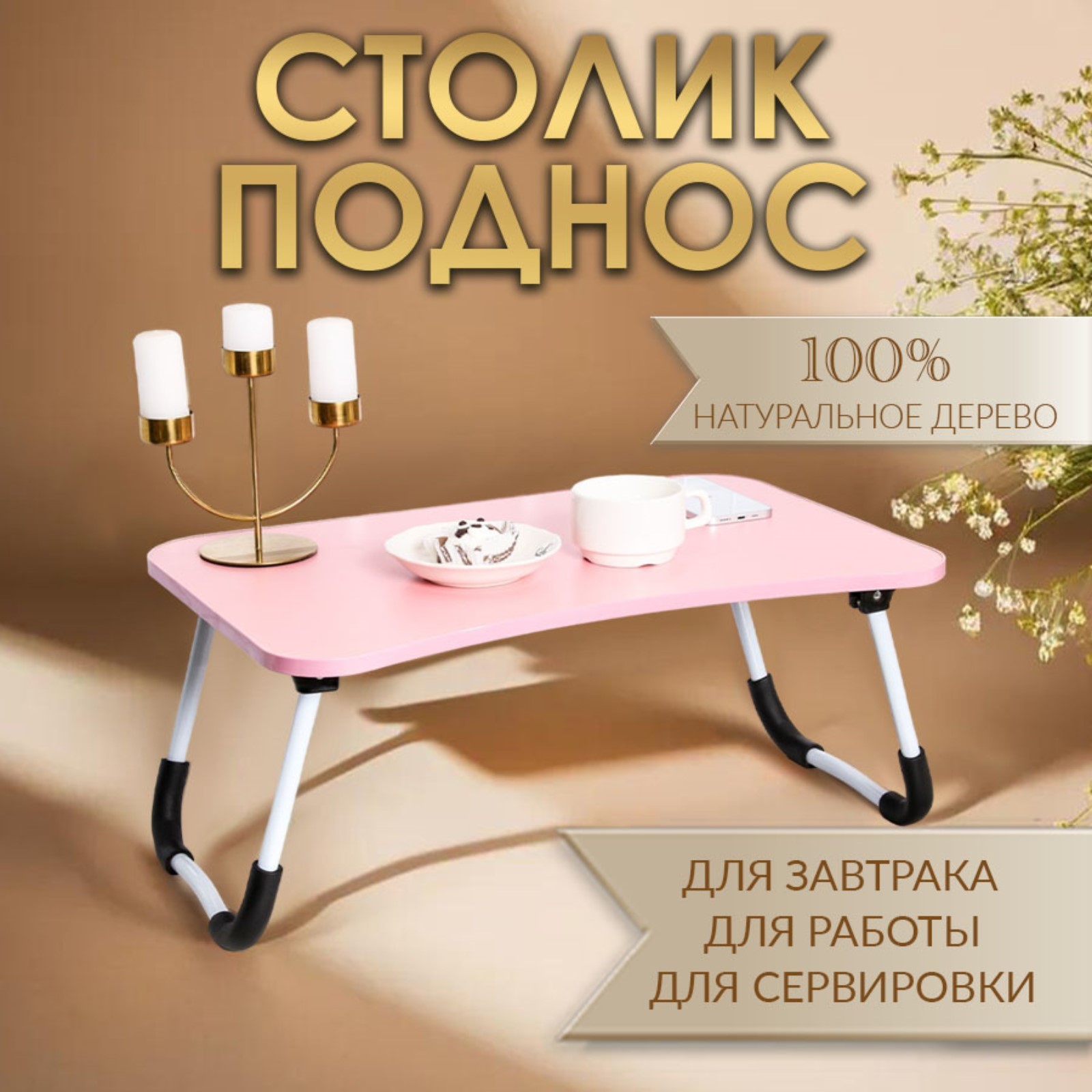 Столик - поднос для завтрака, для ноутбука, складной, розовый, 60х40 см