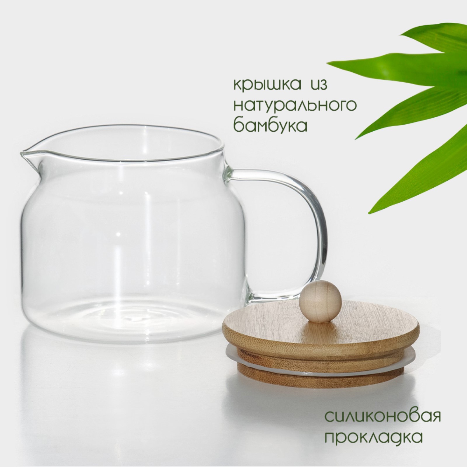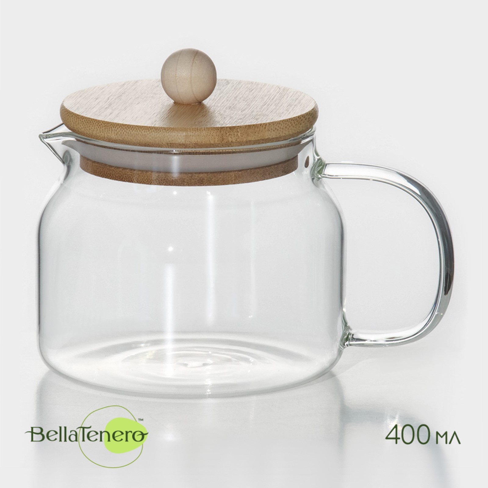 Чайник заварочный стеклянный с бамбуковой крышкой Bellatenero «эко», 400 мл, 13,5x10x10,5 см