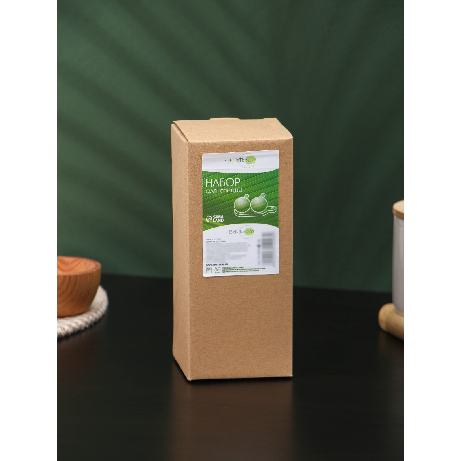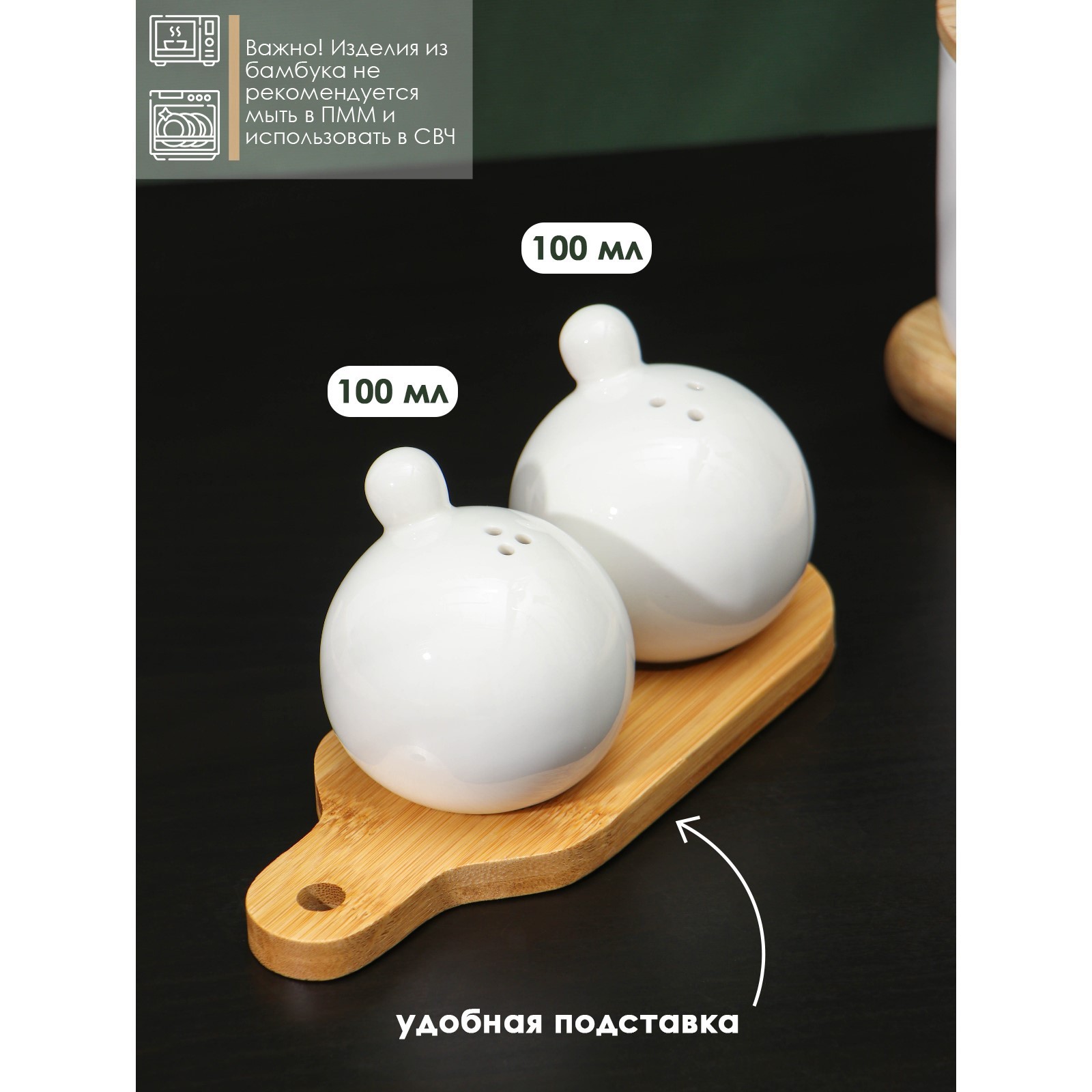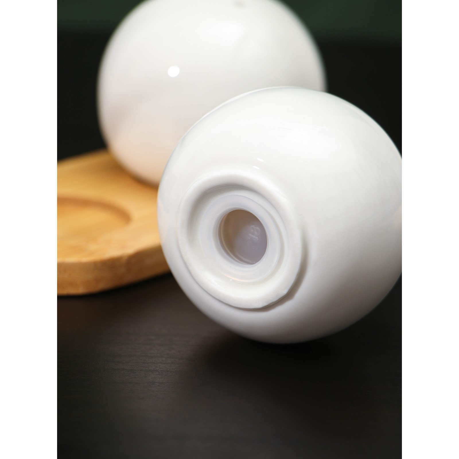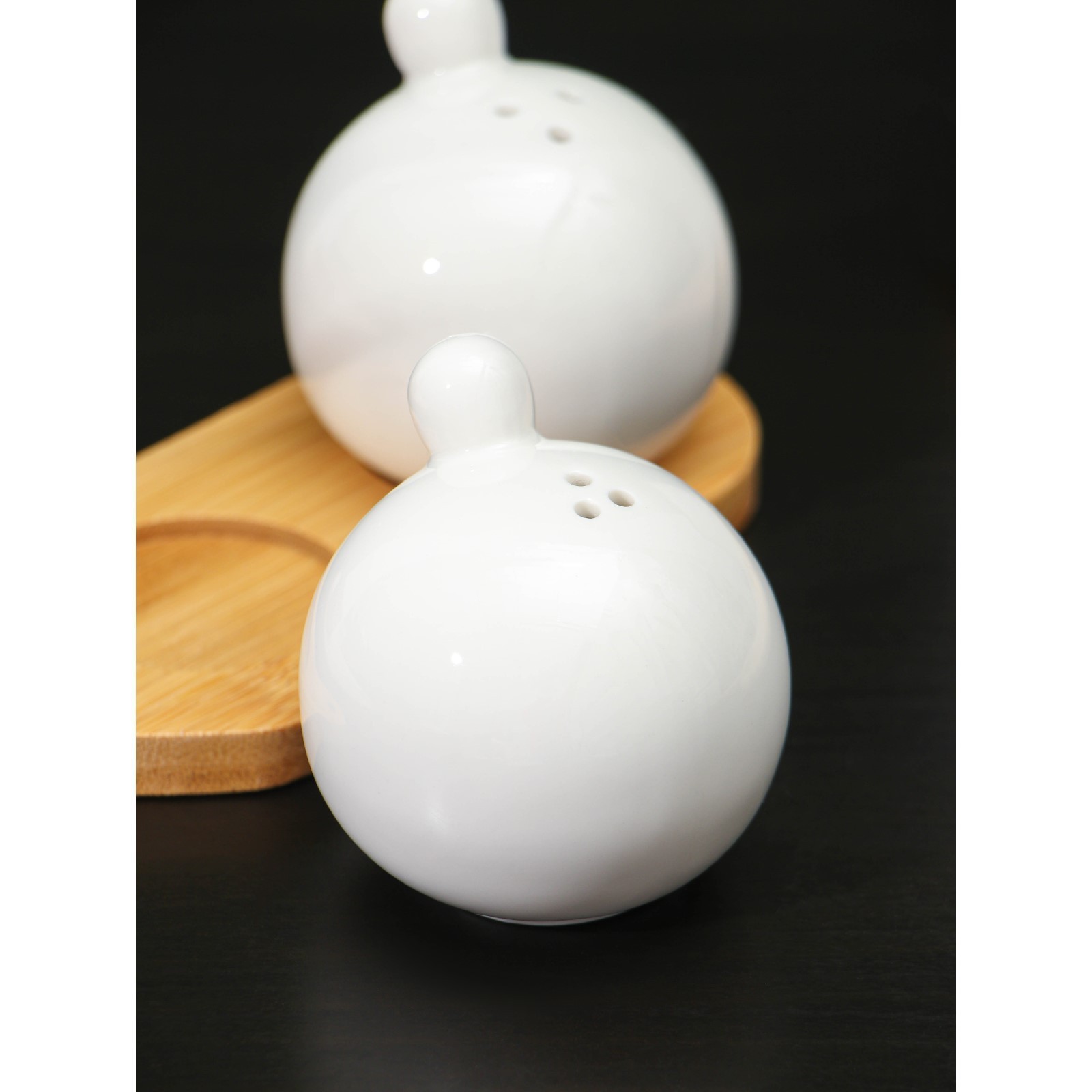 Набор фарфоровый для специй на бамбуковой подставке Bellatenero «шарики», 2 предмета: солонка 100 мл, перечница 100 мл, цвет бел