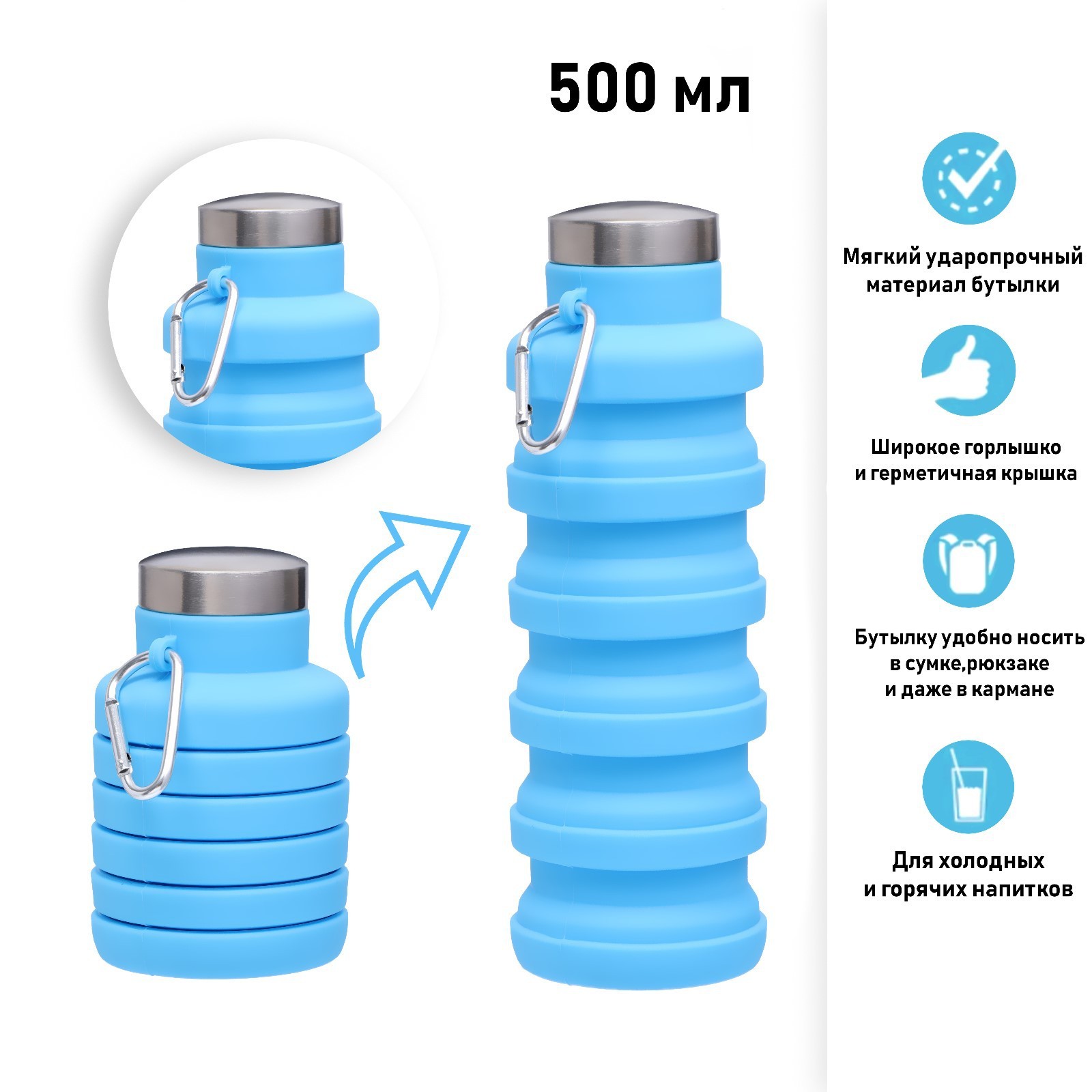Бутылка для воды складная, 500 мл, 7 х 21 см, силиконовая