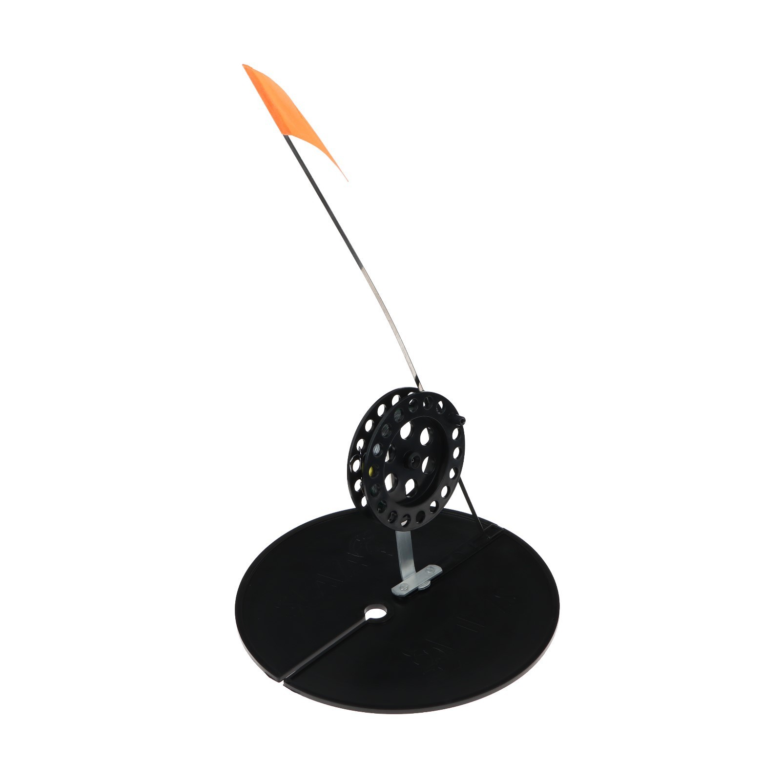 Жерлица оснащенная d=210 мм, алюминиевая стойка. Жерлица зимняя для подледной ловли рыбы состоит из основания, стойки с катушкой и флажка-сигнализатора с фиксатором крепления. Большое и прочное основание жерлицы из морозостойкого полипропилена гарантирует затемнение. Диаметр, мм: 210 Диаметр катушки, мм: 90 Оснащённый: Да Материал: Пластик Температурное ограничение: Нет  развернуть описание ▼
