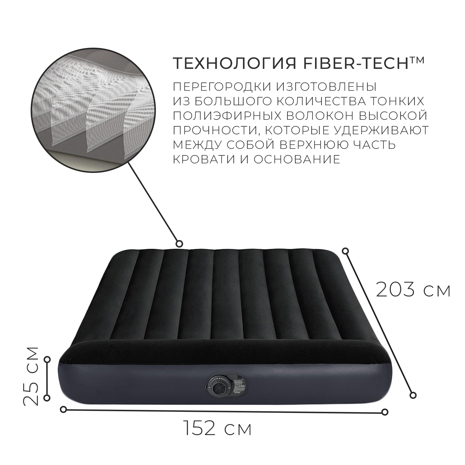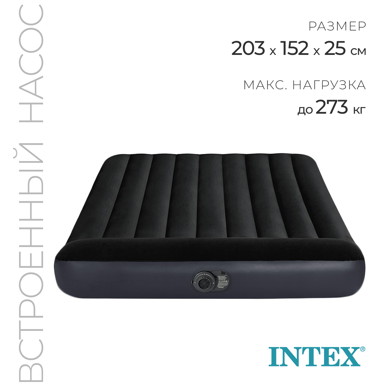 Матрас надувной queen pillow rest classic airbed, 152 х 203 х 25 см, 64150nd. Длина, см: 203 Ширина, см: 152 Высота, см: 25 Количество мест: 2 Максимально допустимый вес, кг: 273 : 0 Насос в комплекте: Да  развернуть описание ▼