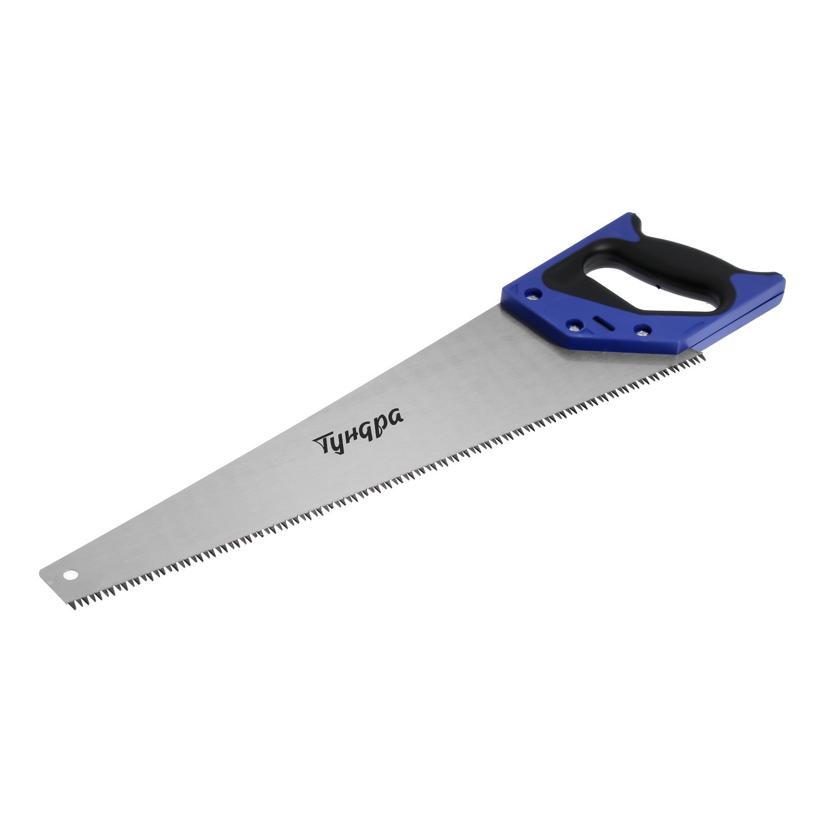 Ножовка по дереву тундра, 2к рукоятка, 3d заточка, большой зуб 8 мм, 7-8 tpi, 450 мм. Длина, мм:450|Применение:Дерево|TPI:5 - 6|Материал рукоятки:Двухкомпонентная|Страна:Китай