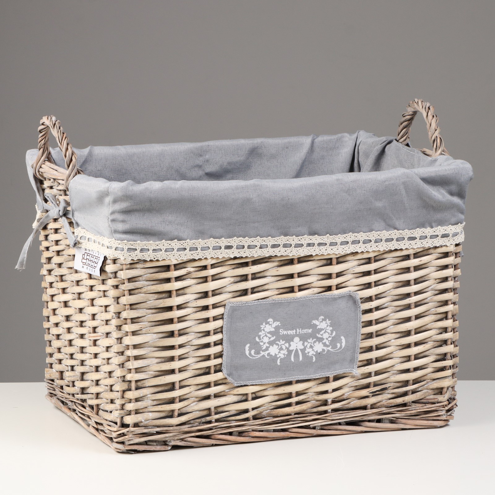 Корзина стеллажная высокая с ручками "лён", 44х33,5х30 см , серый