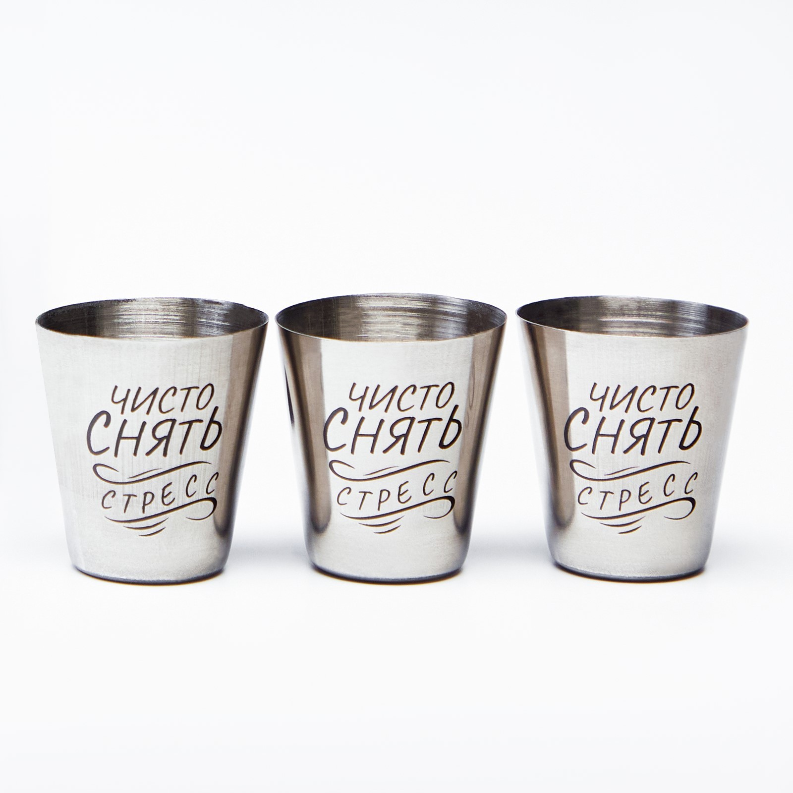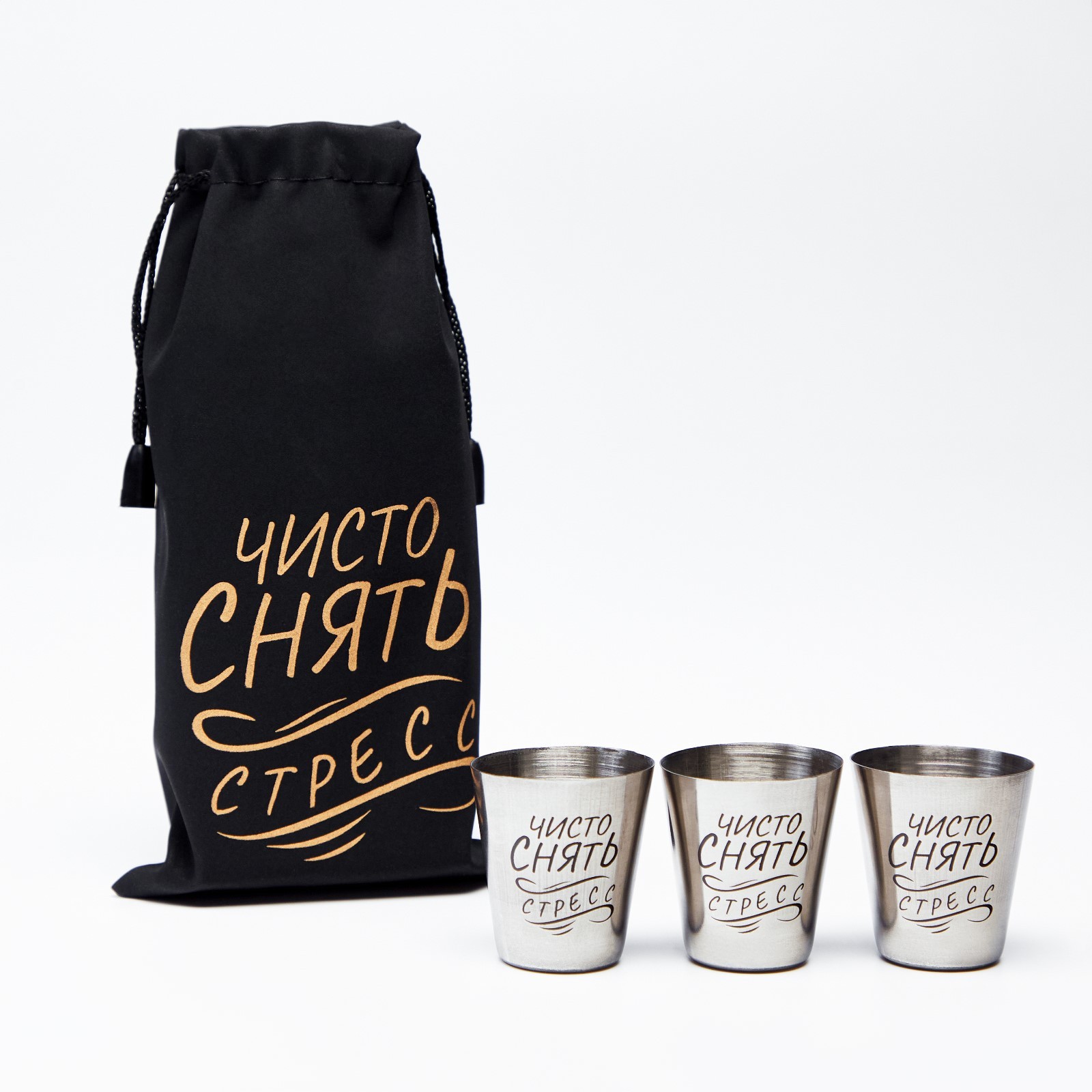 Стопки, 23 февраля, "чисто снять стресс", набор 3 шт по 30 мл, 4 х 3.5 см. Набор стопок из 3 штук по 30 мл из пищевой нержавеющей стали с удобным и компактным мешочком с завязками для хранения и переноски. Легкие и компактные, удобно брать с собой на отдых, рыбалку, охоту, природу или в путешествия. Супер прочные и стильные, эти стопки изготовлены из высокого качества 304 нержавеющей стали, они не только красиво смотрятся, но и обеспечивают долгий срок службы изделия. Легко моются и подходят для повседневного использования. Отлично заменят стеклянные рюмки и бокалы, смотрятся эффектно и стильно. Стопки не слишком высокие, удобно помещаются в руке и имеют оптимальный объем 30 мл. Это подарочный набор на все случаи жизни! Стаканчики станут прекрасным подарком на новый год папе или маме, бабушке или дедушке, а еще коллеге или начальнику боссу на день рождения или 23 февраля, 9 мая, 8 марта, юбилей. Этот набор шоттов удивит и порадует каждого получателя. Рюмки подойдут для водки, самогона, коньяка, виски, рома, ликера и другого алкоголя. Также допустимо использовать для безалкогольных напитков, таких как сок, вода или морс. Небольшие шоты идеальны для коктейлей, текилы или настоек. Цвет: Хромированный parts count: 0 В наборе, шт.: 3 Объём, мл: 90 tnved: 7323930000 Материал: Нержавеющая сталь  развернуть описание ▼
