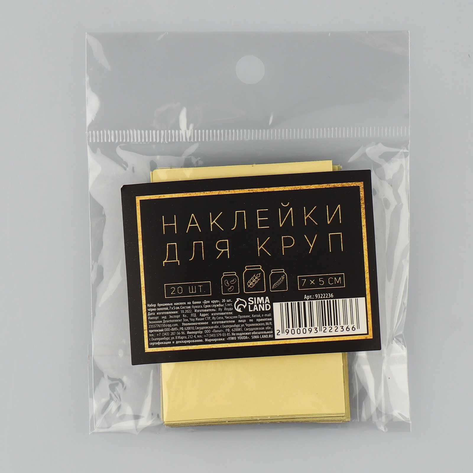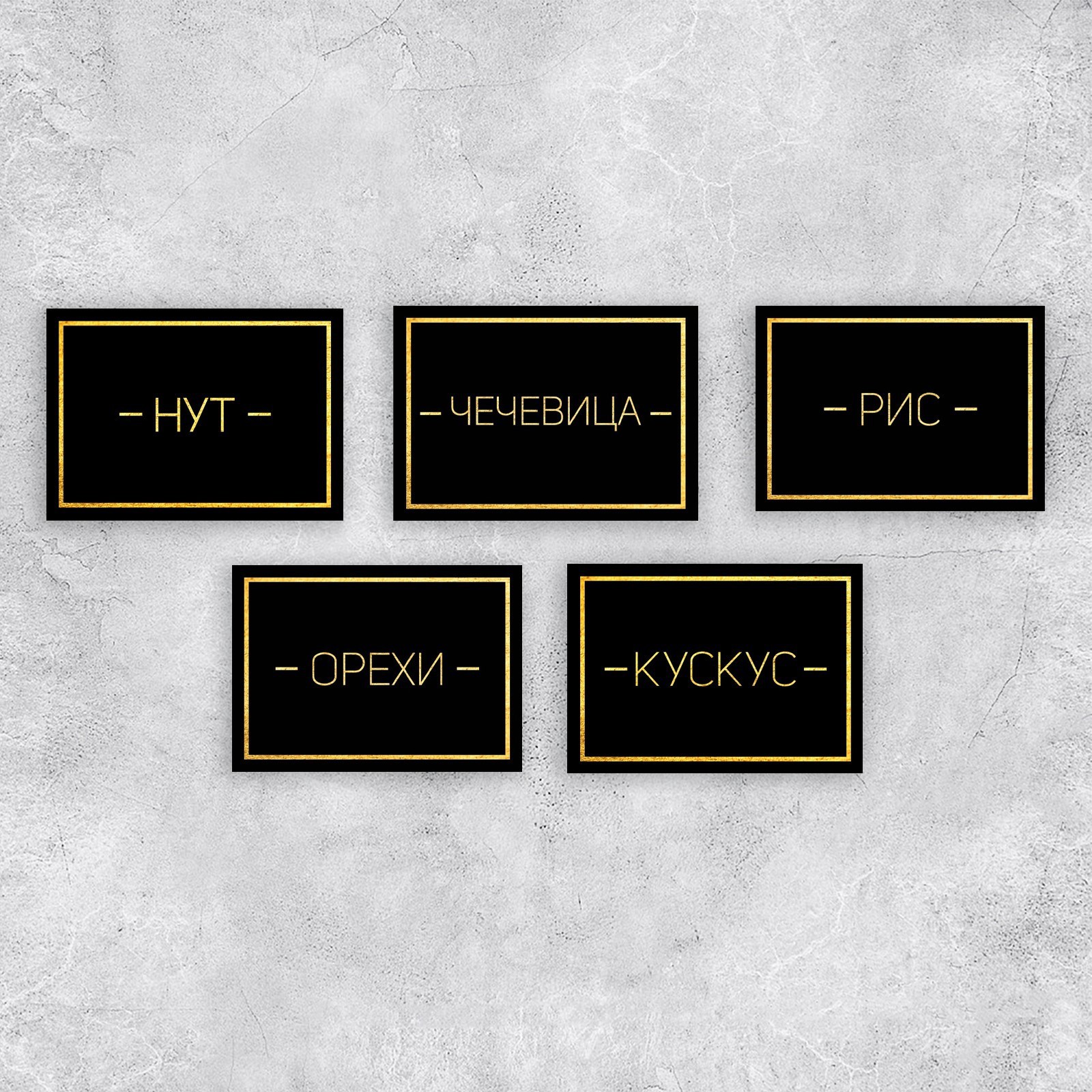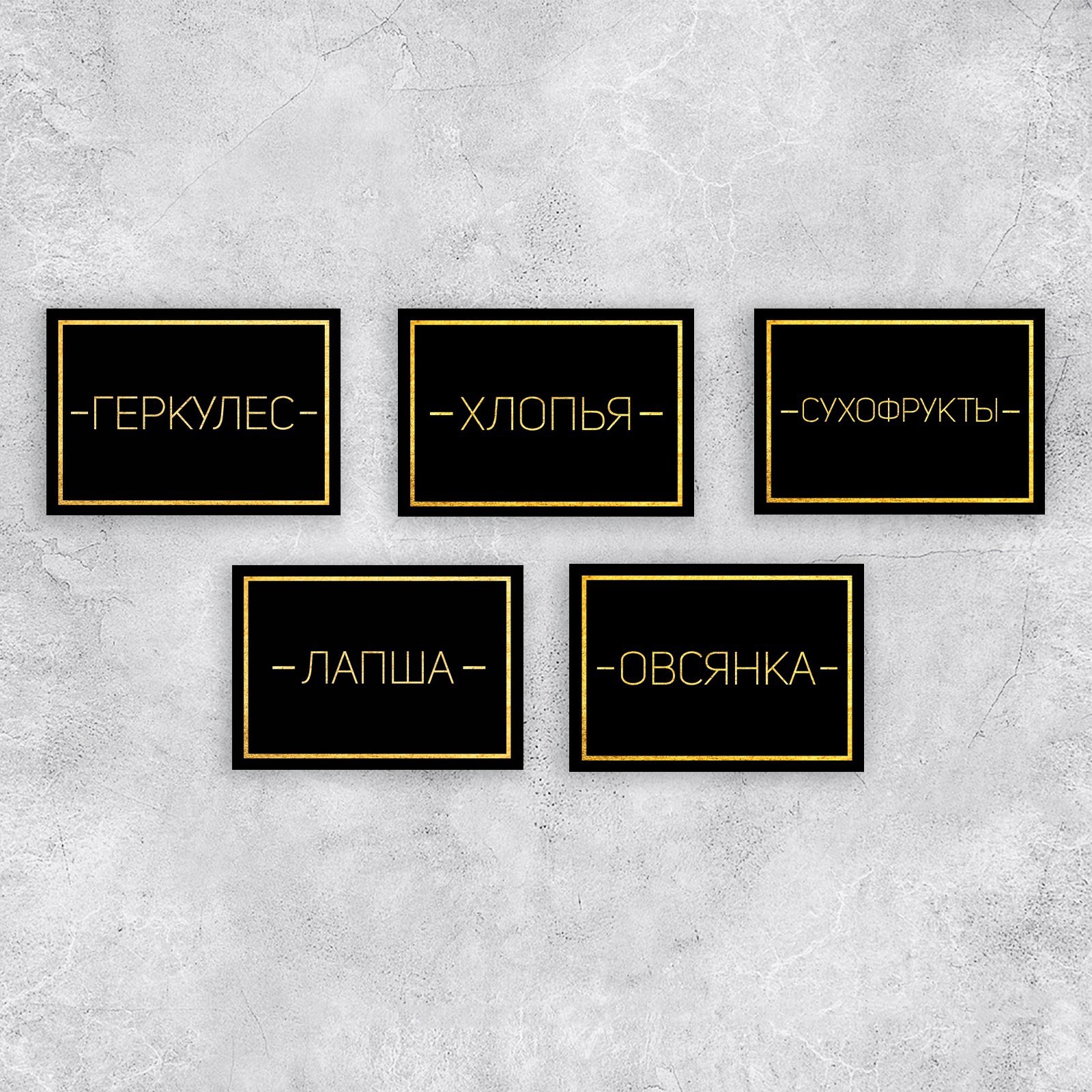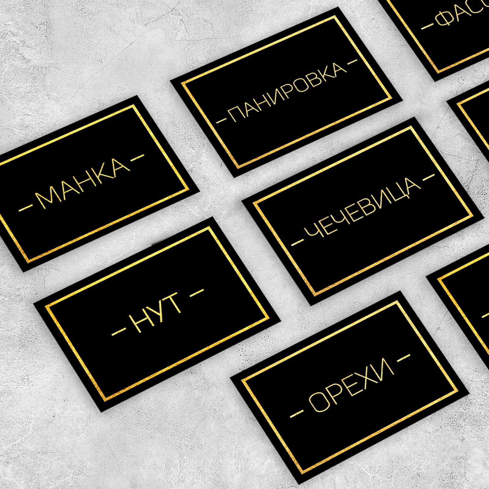 Набор бумажных наклеек на банки «для круп», 20 шт, черно-золотой, 7 х 5 см