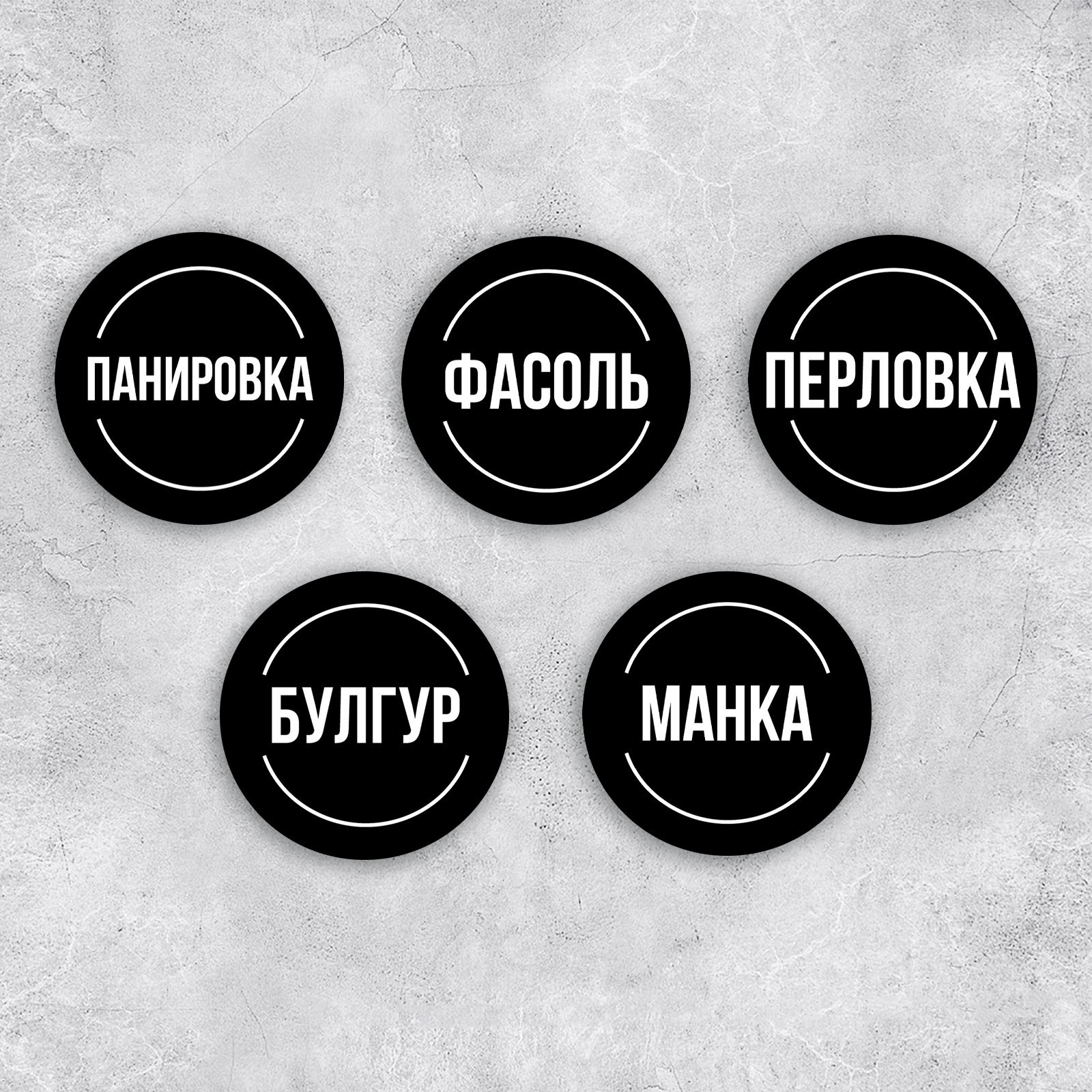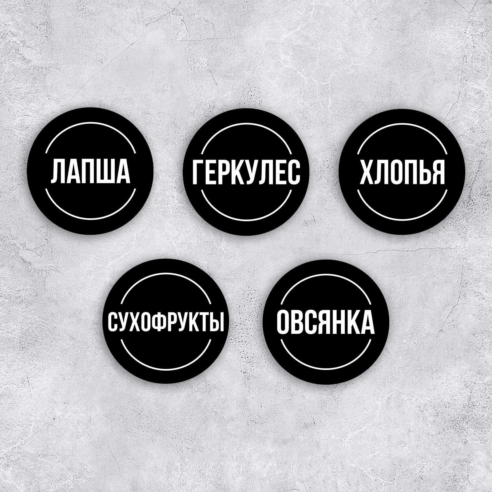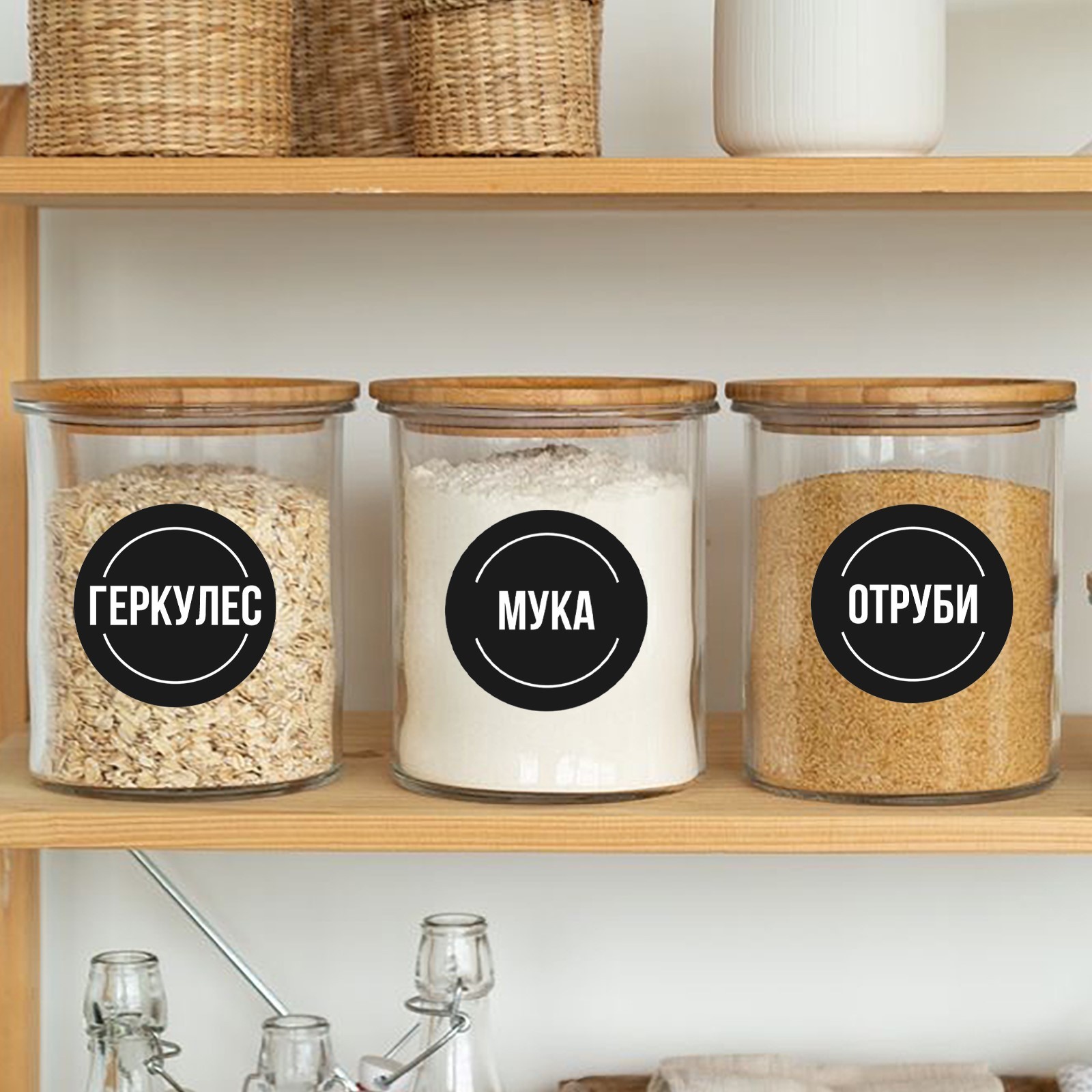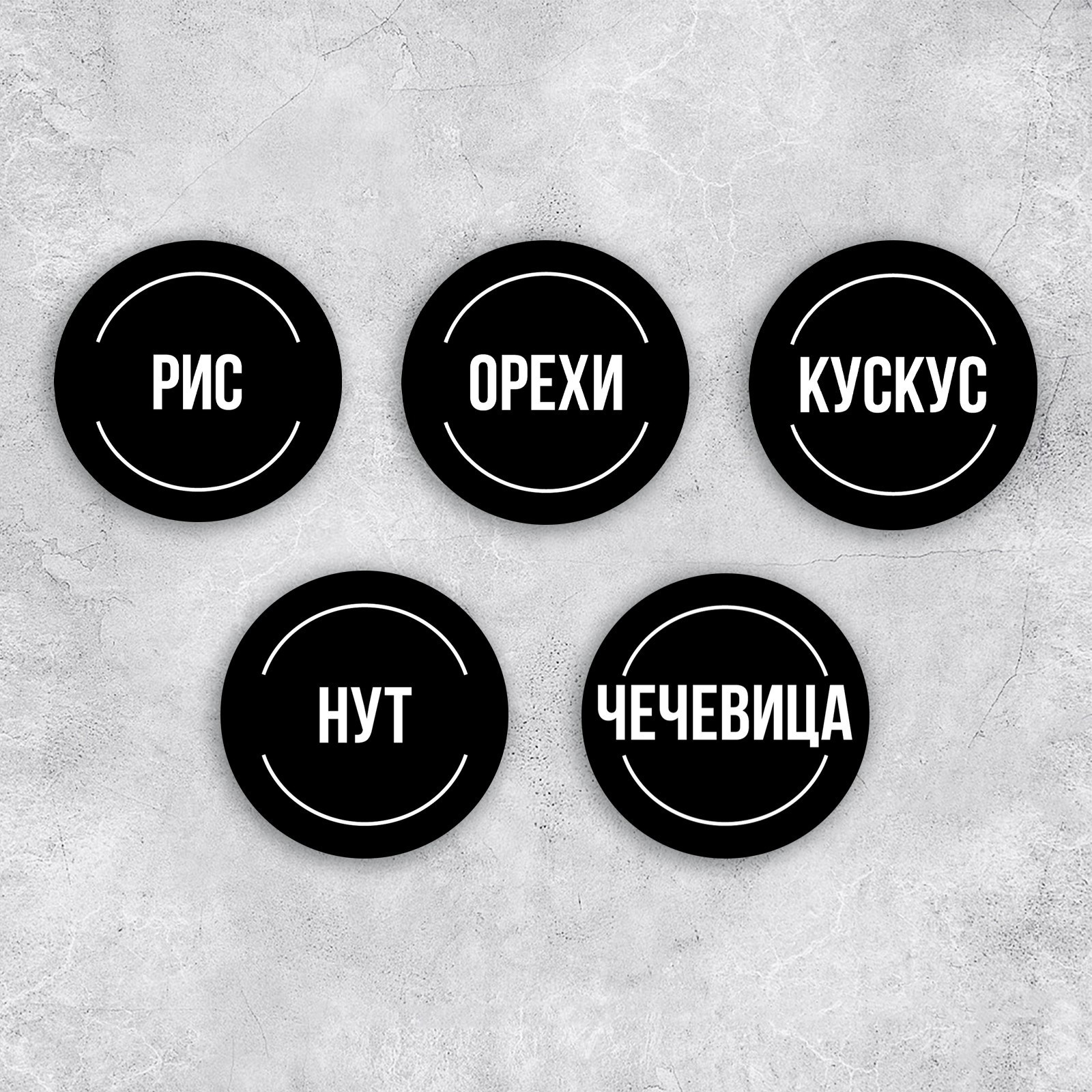 Набор бумажных наклеек на банки «для круп», 20 шт, черный, 6 х 6 см