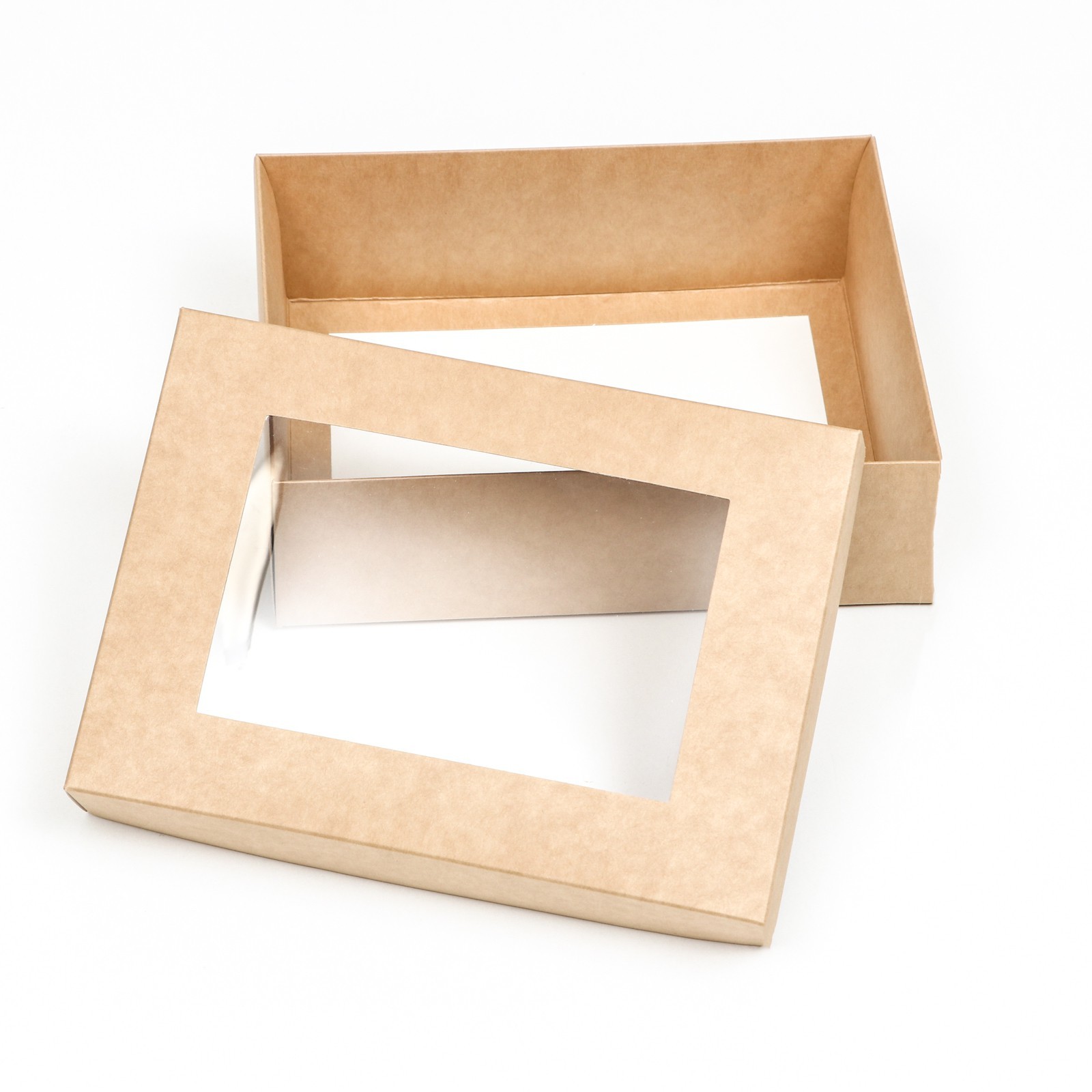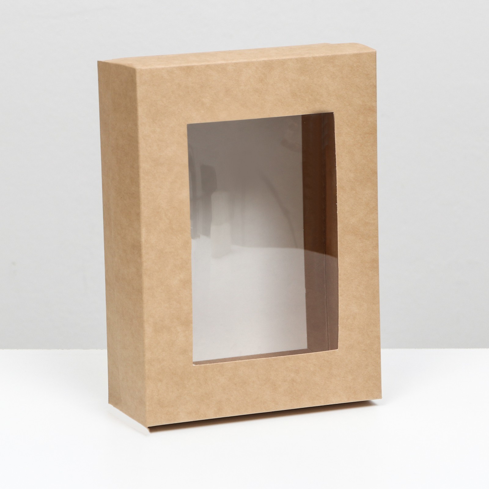 Коробка складная, крышка-дно,с окном, крафт, 21 х 15 х 7 см