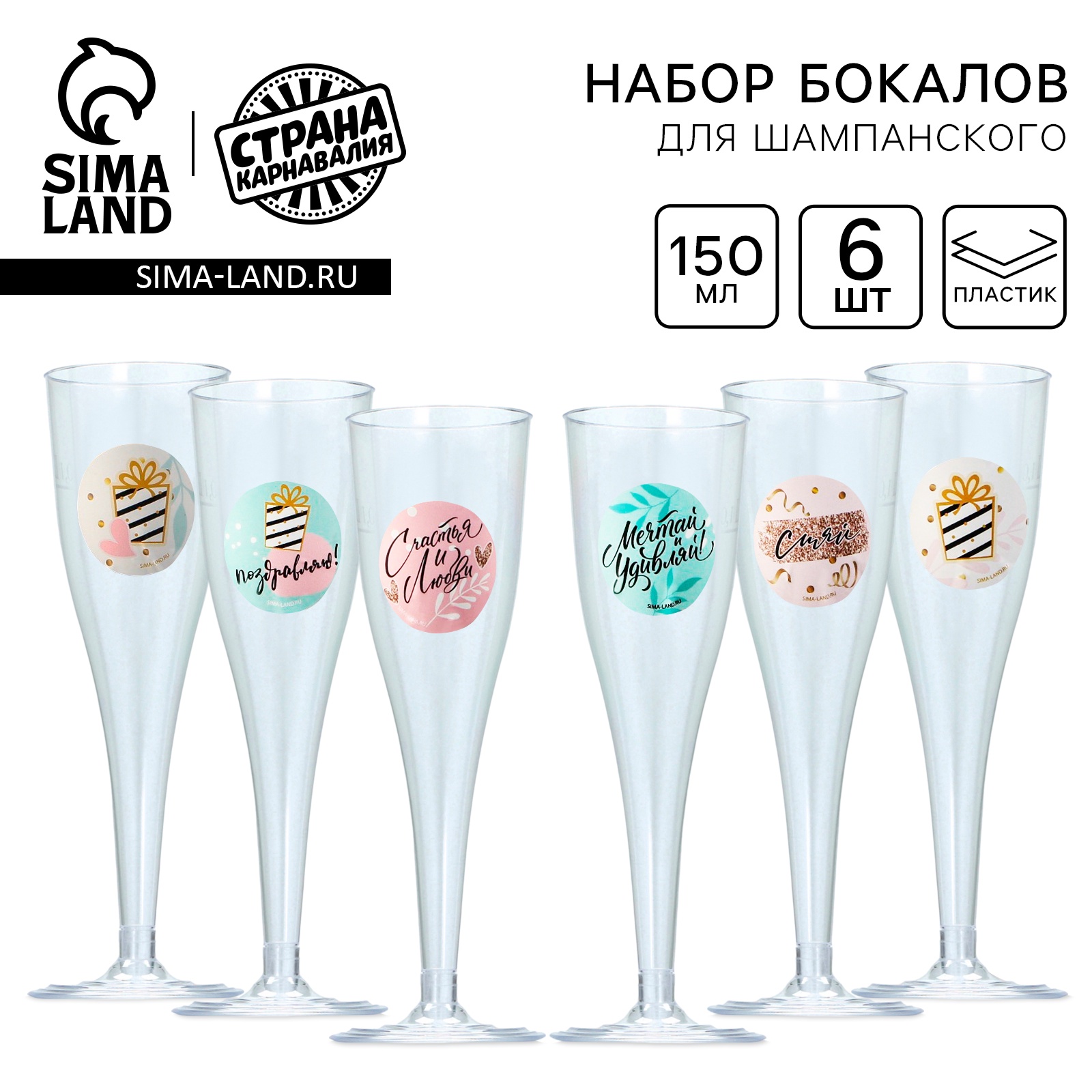 Набор бокалов для шампанского «тропики», 150 мл, 6 шт