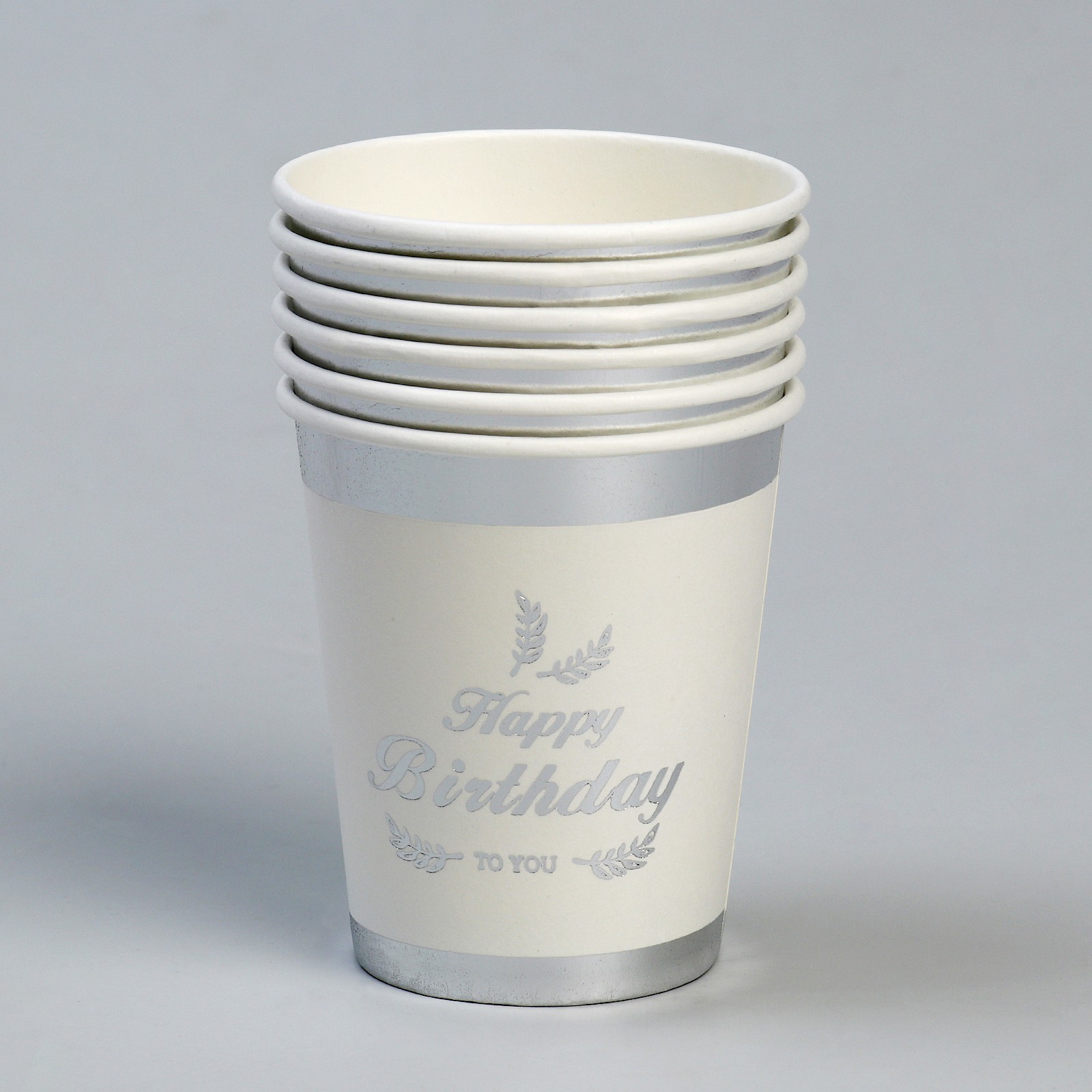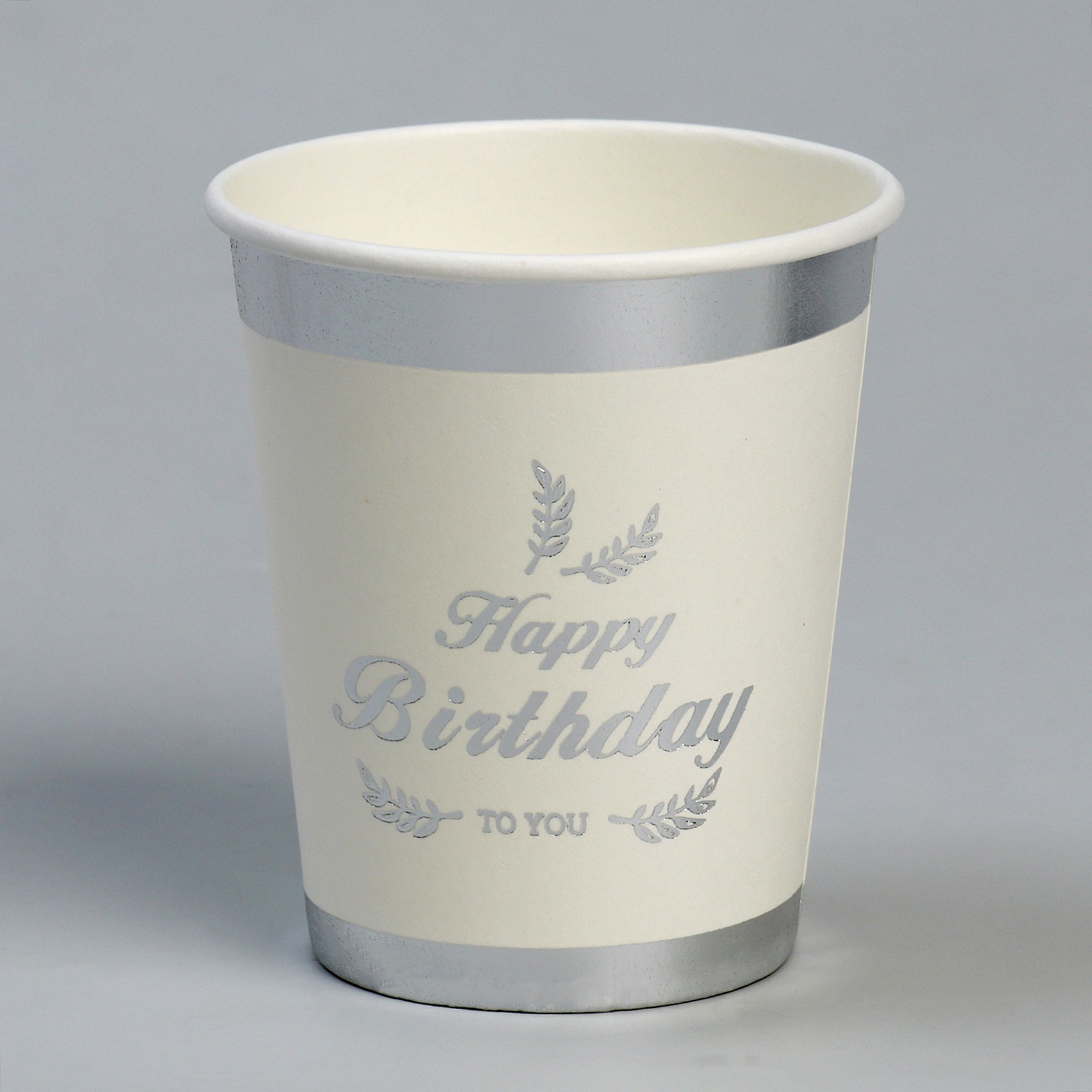 Стакан бумажный «с днём рождения», в наборе 6 штук, серебряный Стакан бумажный «с днём рождения», в наборе 6 штук, серебряный