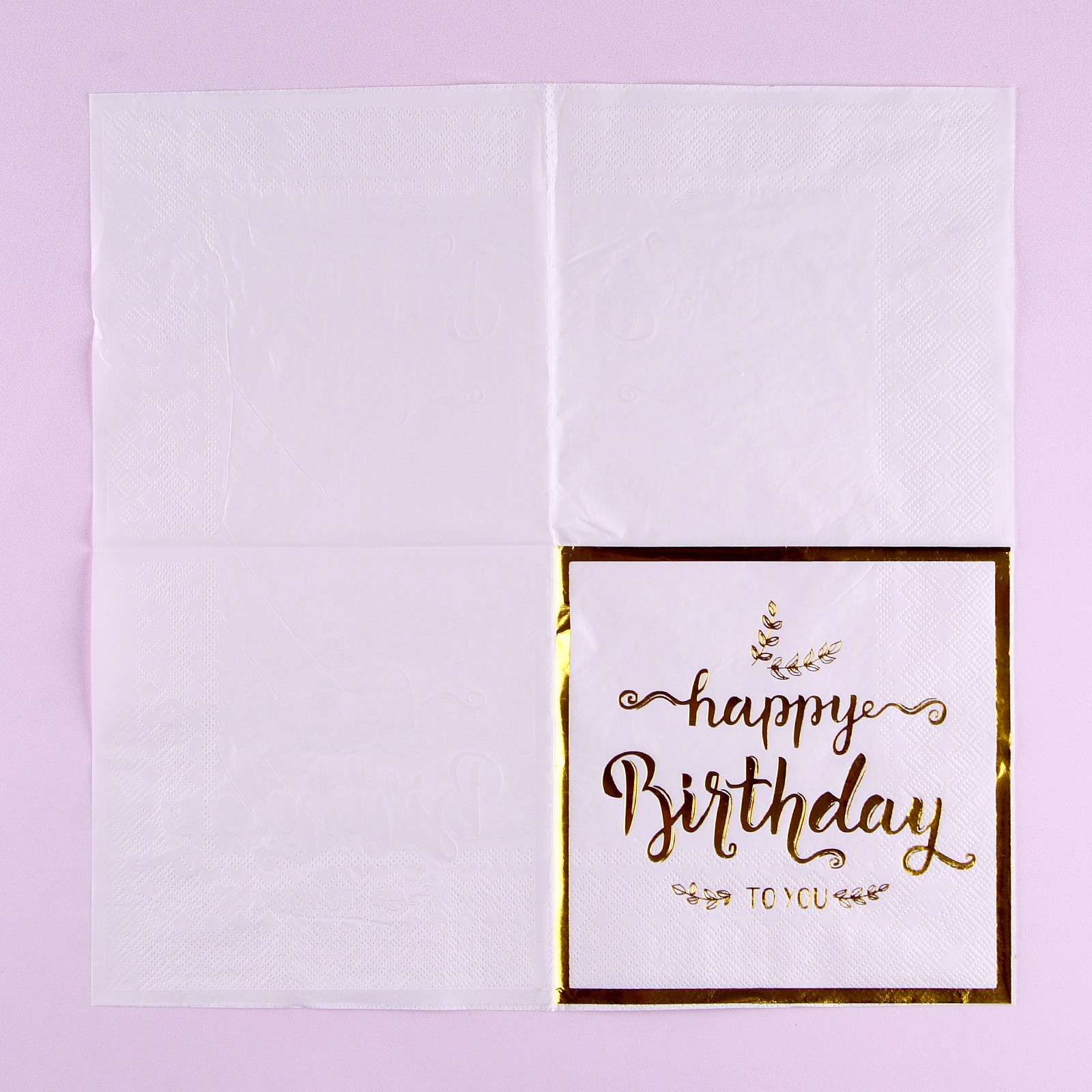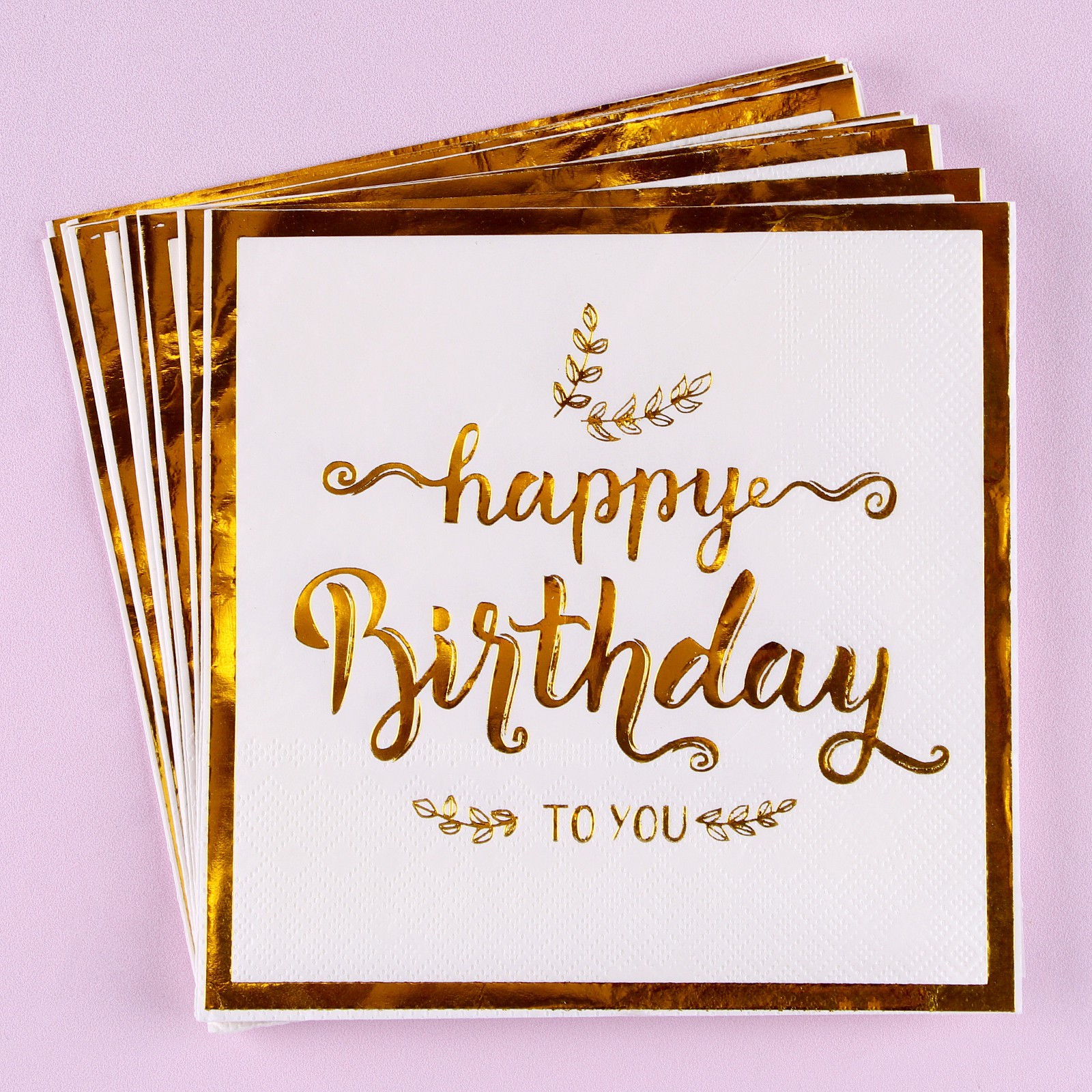 Салфетки бумажные «с днём рождения», 33 X 33 см, в набор 12 штук, цвет золотой
