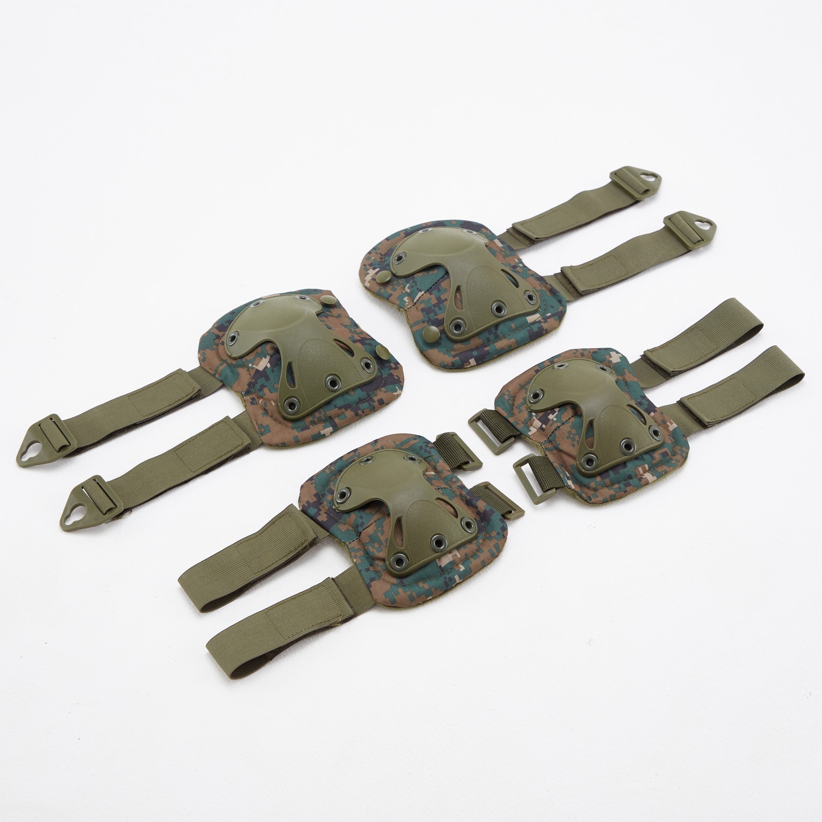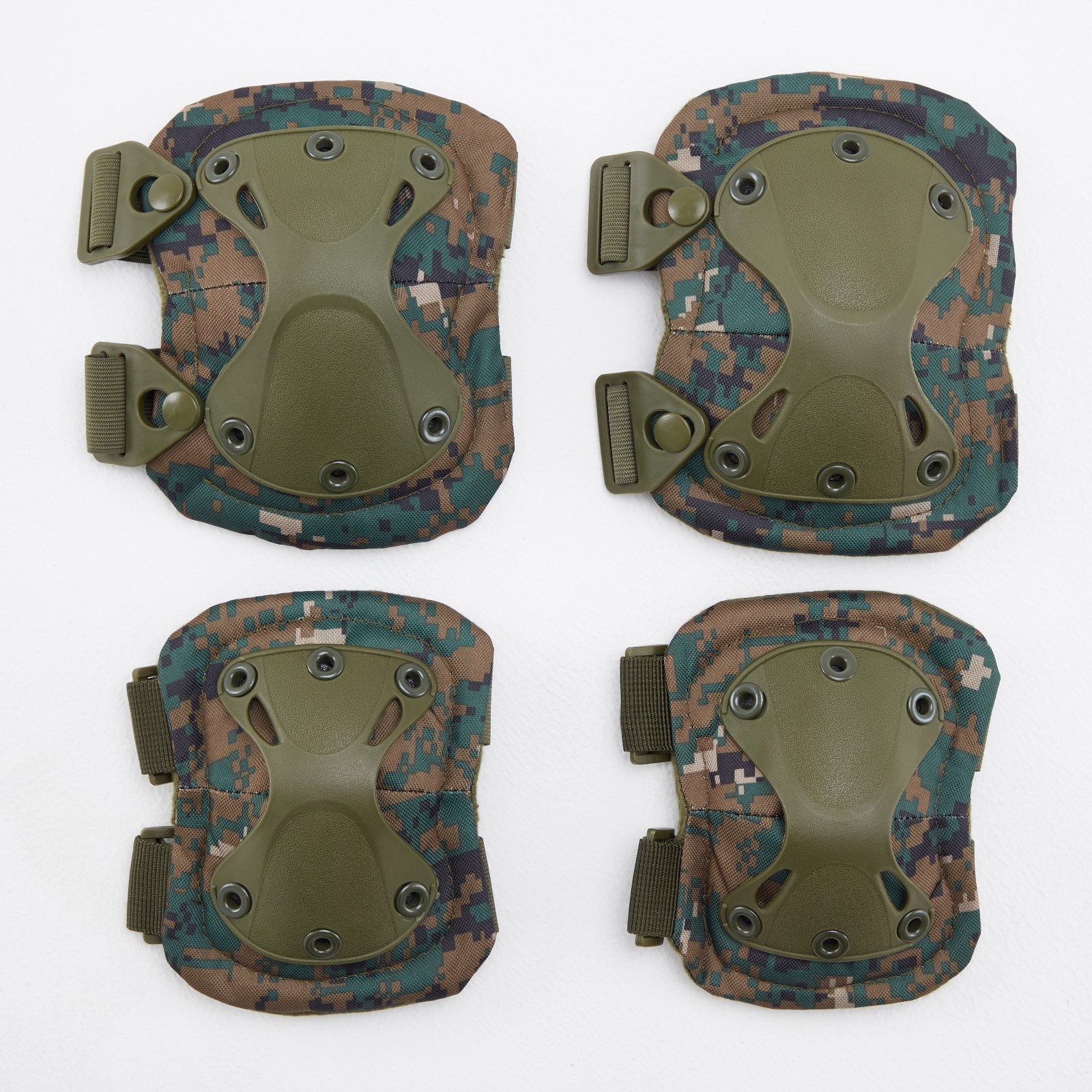 Набор 2 наколенника, 2 налокотника, пиксель. Размеры: Налокотники 16 х 12 см, Наколенники 18 х 14, 5 см. Максимальная и минимальная величина обхвата: Налокотники 17-13 см, Наколенники 21-15 см. Цвет: Зелёный Цвет: Камуфляж Материал: Пластик Материал: Текстиль Размер: Универсальный Тип: Наколенники Тип: Налокотники Вид: Наколенники  развернуть описание ▼
