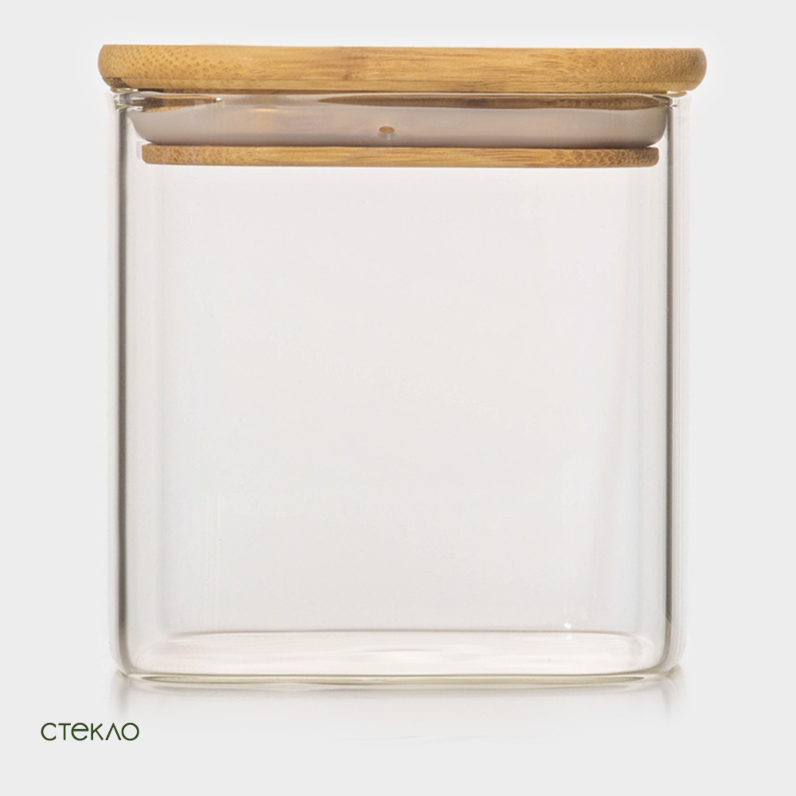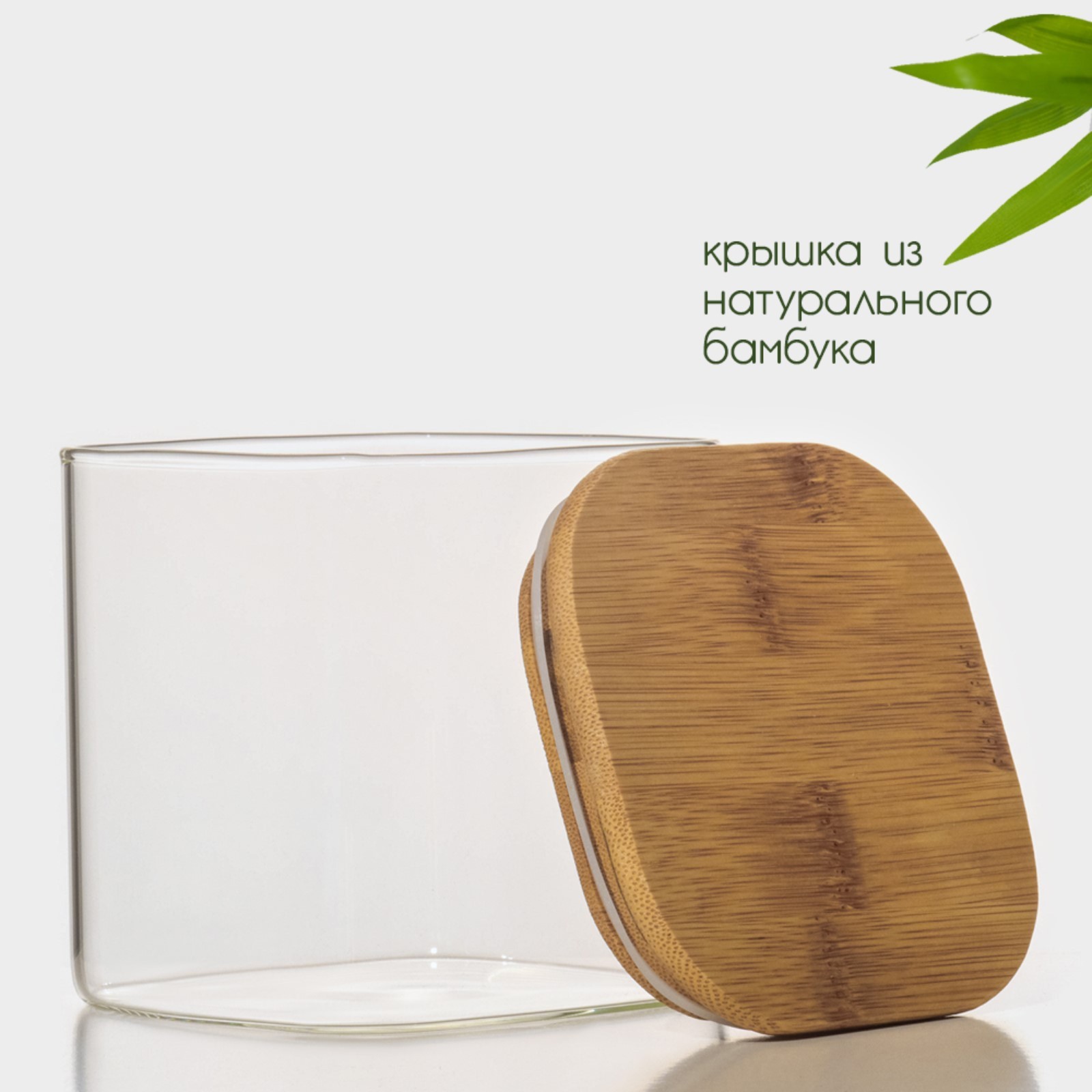 Банка стеклянная для сыпучих продуктов с бамбуковой крышкой Bellatenero «эко. квадратная», 700 мл, 10x10,5 см