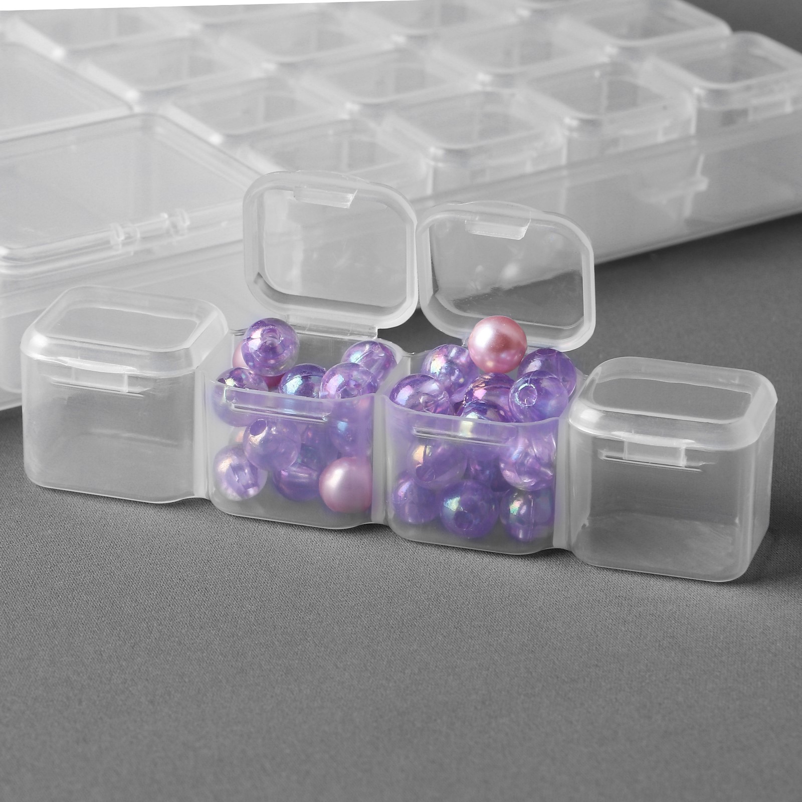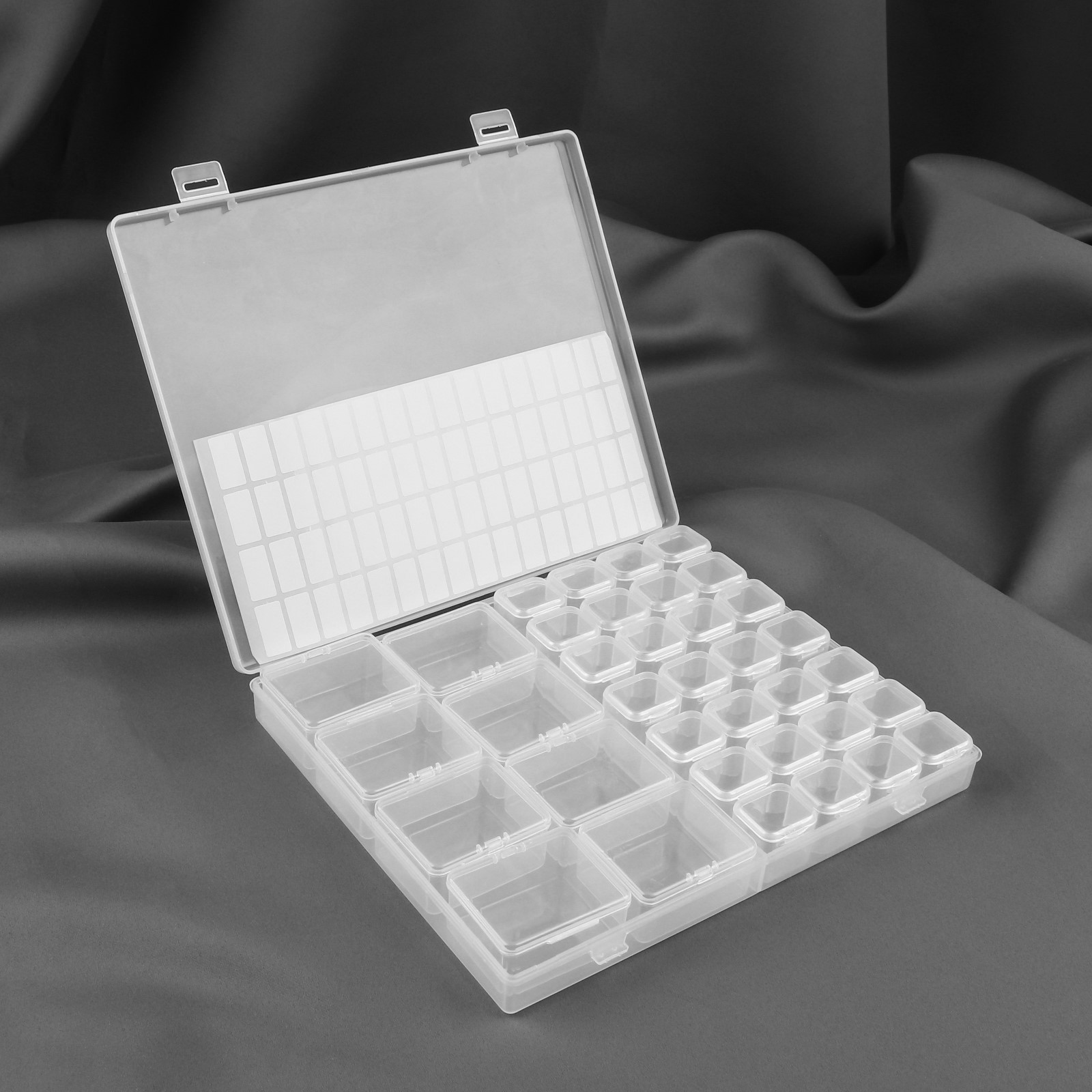 Набор контейнеров для рукоделия, 8 шт, 4,5 X 3,6 X 2 см, 7 органайзеров по 4 отделения, с наклейками, в контейнере, 21 X 17 X 2,