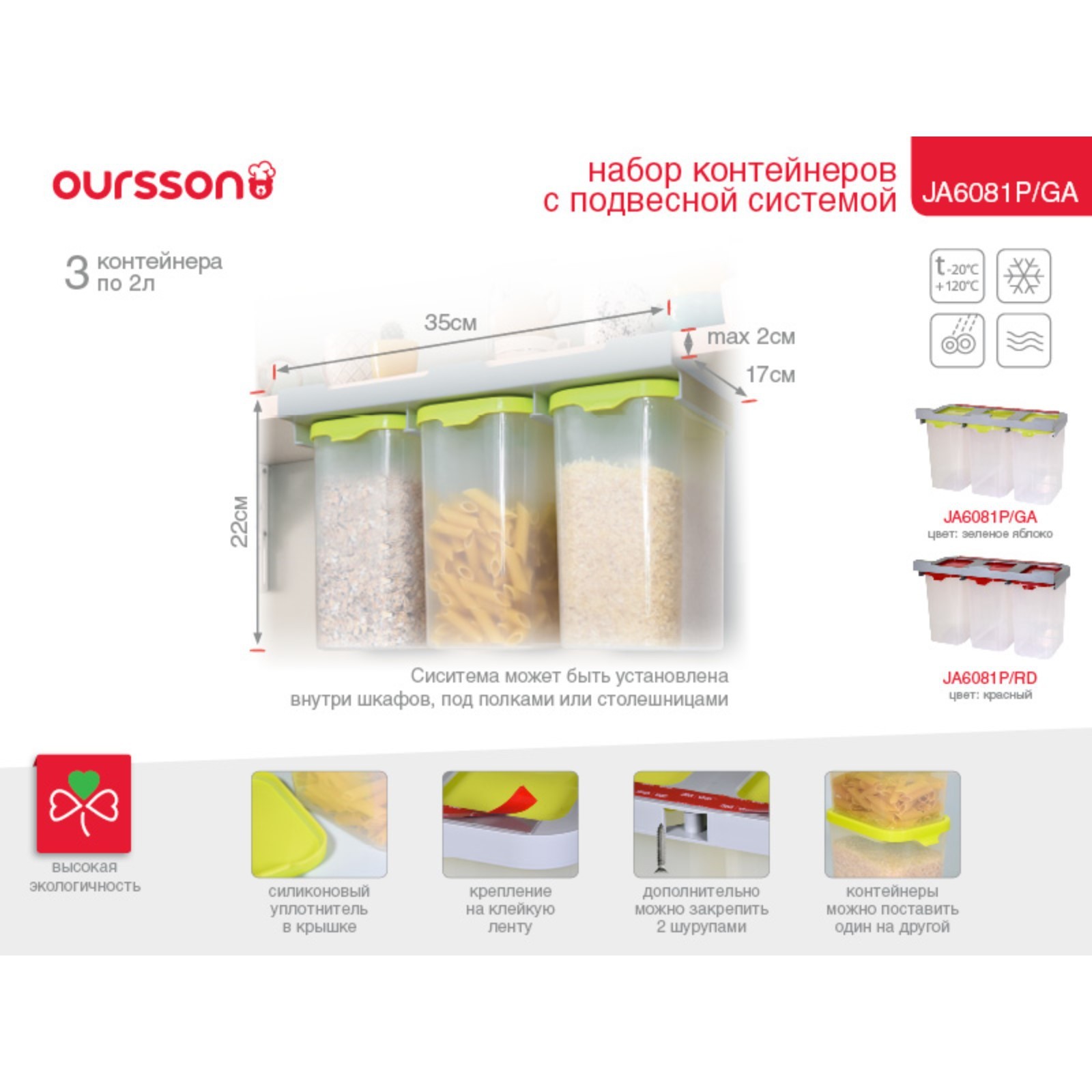 Набор емкостей на подвесе объёмом 2л Oursson, зеленое яблоко