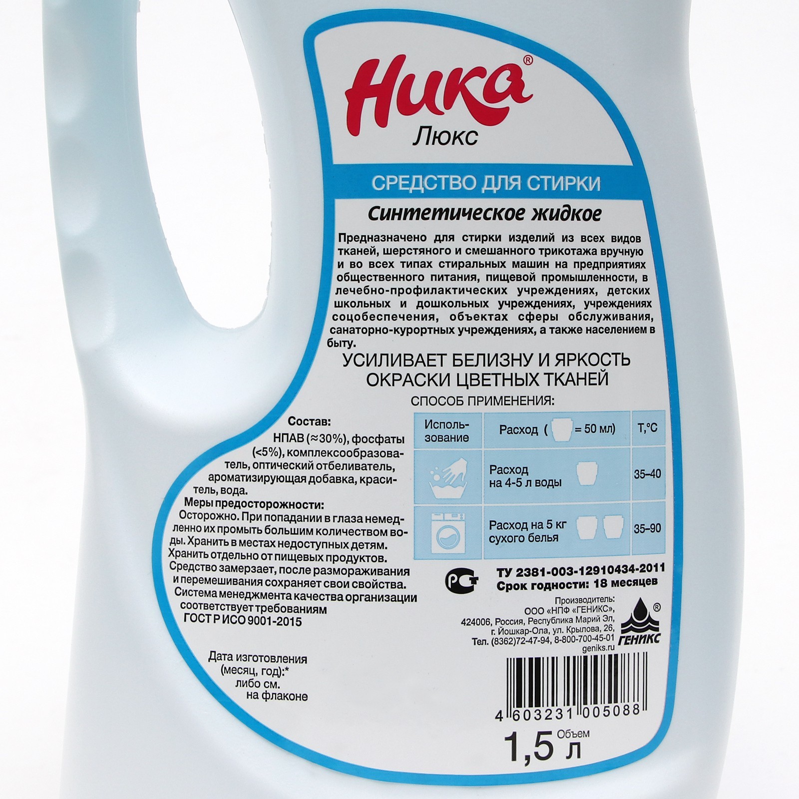 Жидкое средство для стирки "ника-люкс", 1,5 кг