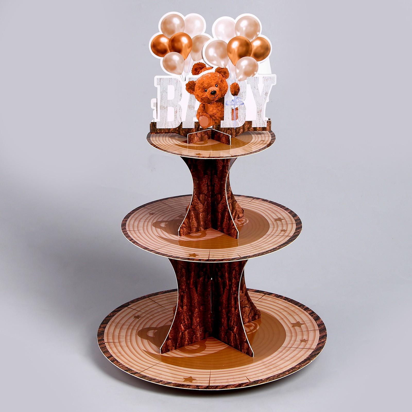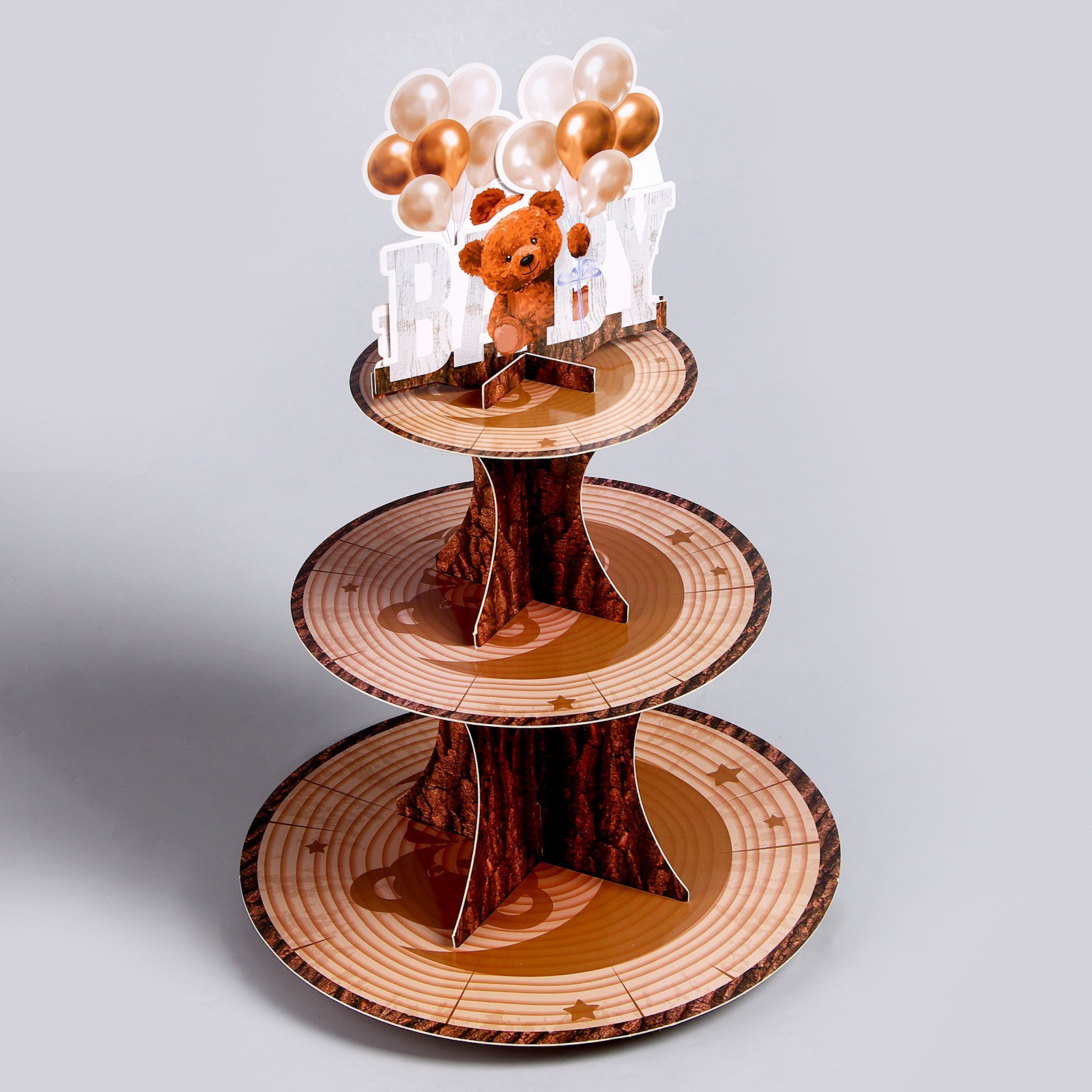 Подставка для пирожных «малыш». Цвет: Коричневый Форма: Фигурная parts count: 0 В наборе, шт.: 1 Количество ярусов: 3 Тематика: Дерево Тематика: Надписи, цифры, буквы Тематика: Животный мир Материал: Картон Текстура: Гладкая Особенности: Без особенностей Форма: Круг, шар, цилиндр  развернуть описание ▼