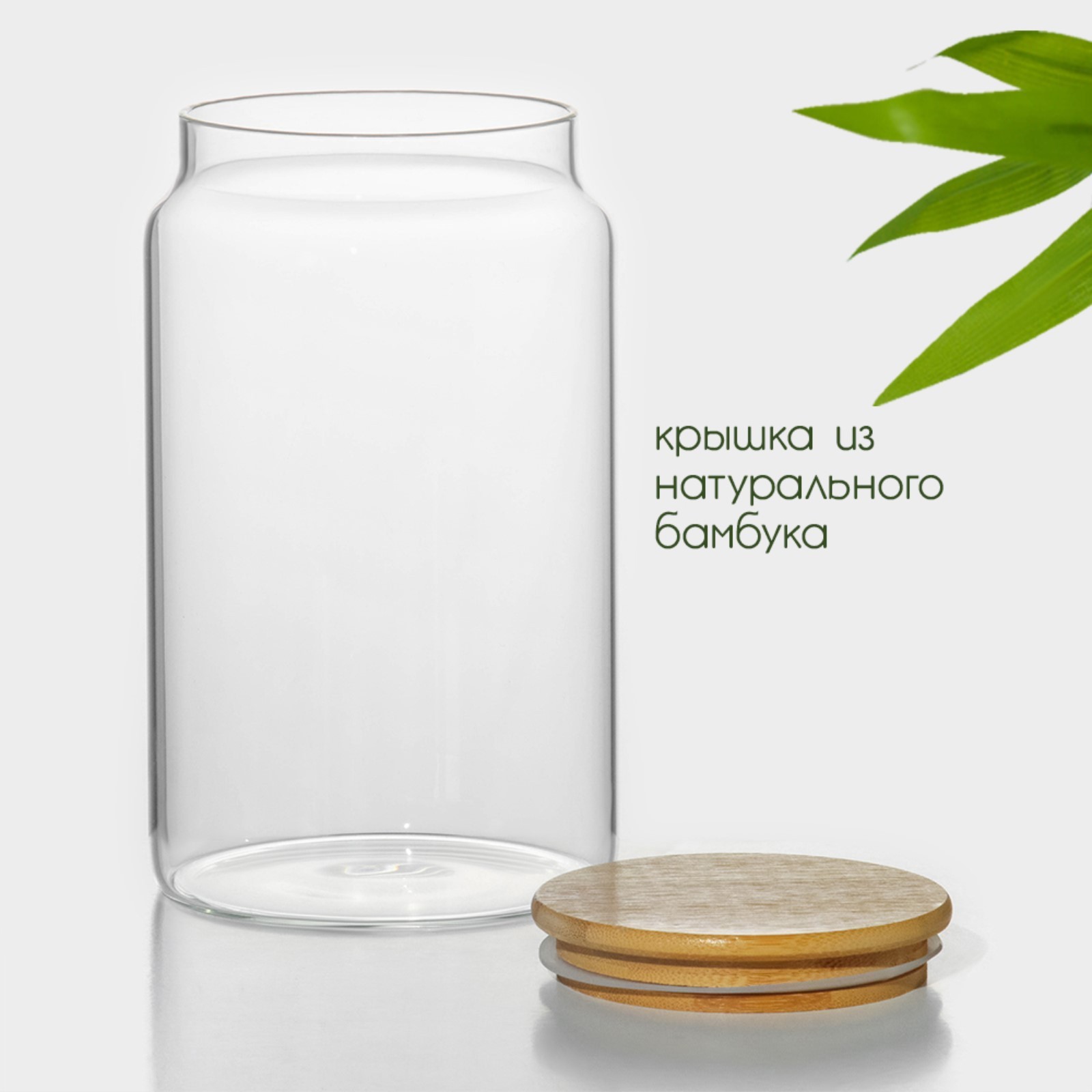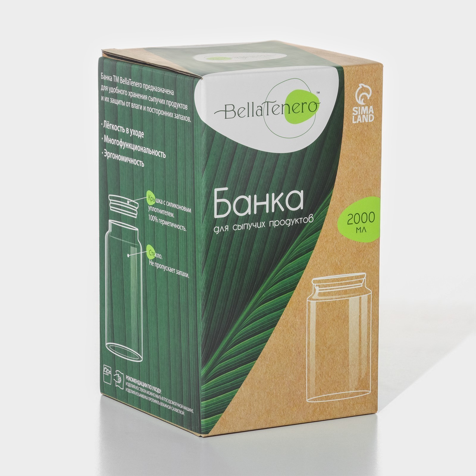 Банка стеклянная для сыпучих продуктов с бамбуковой крышкой Bellatenero «эко», 2 л, 12x20 см