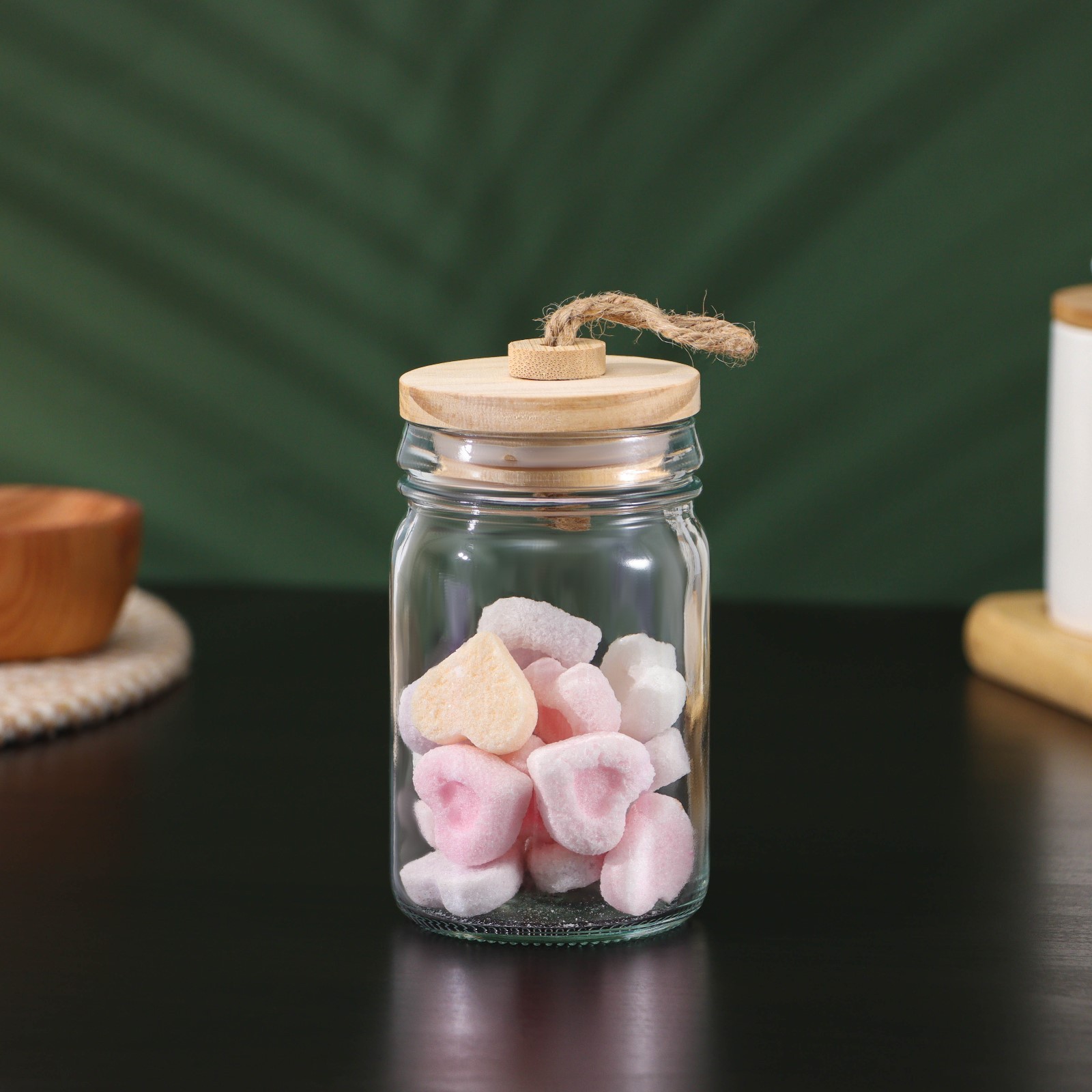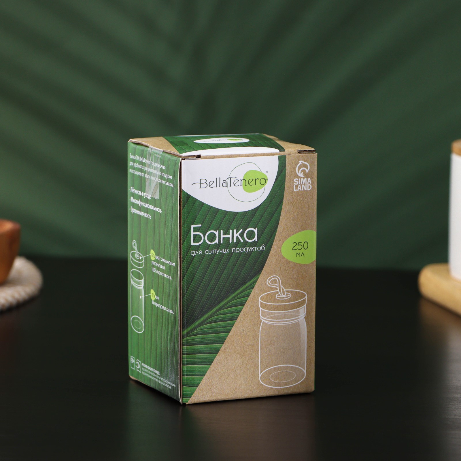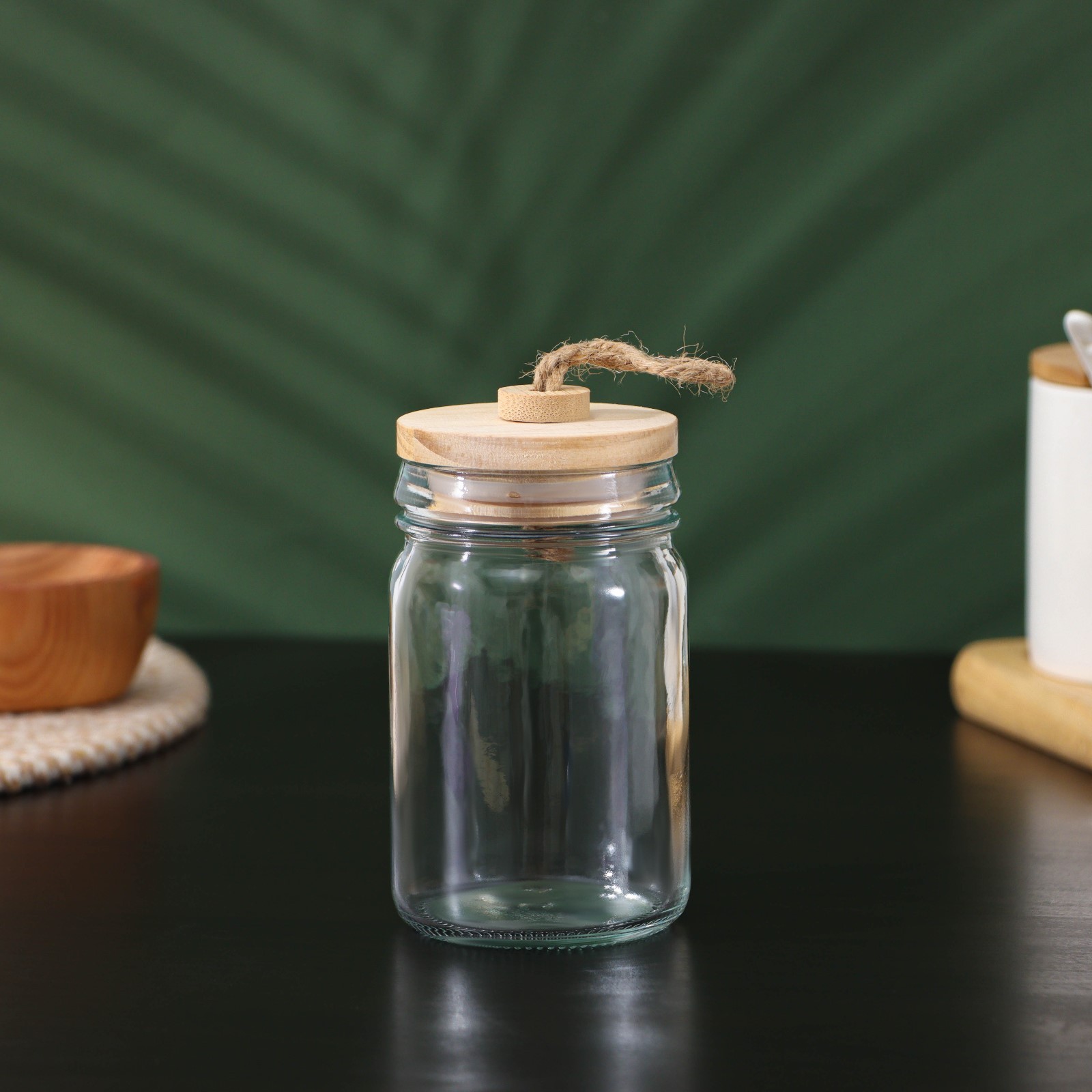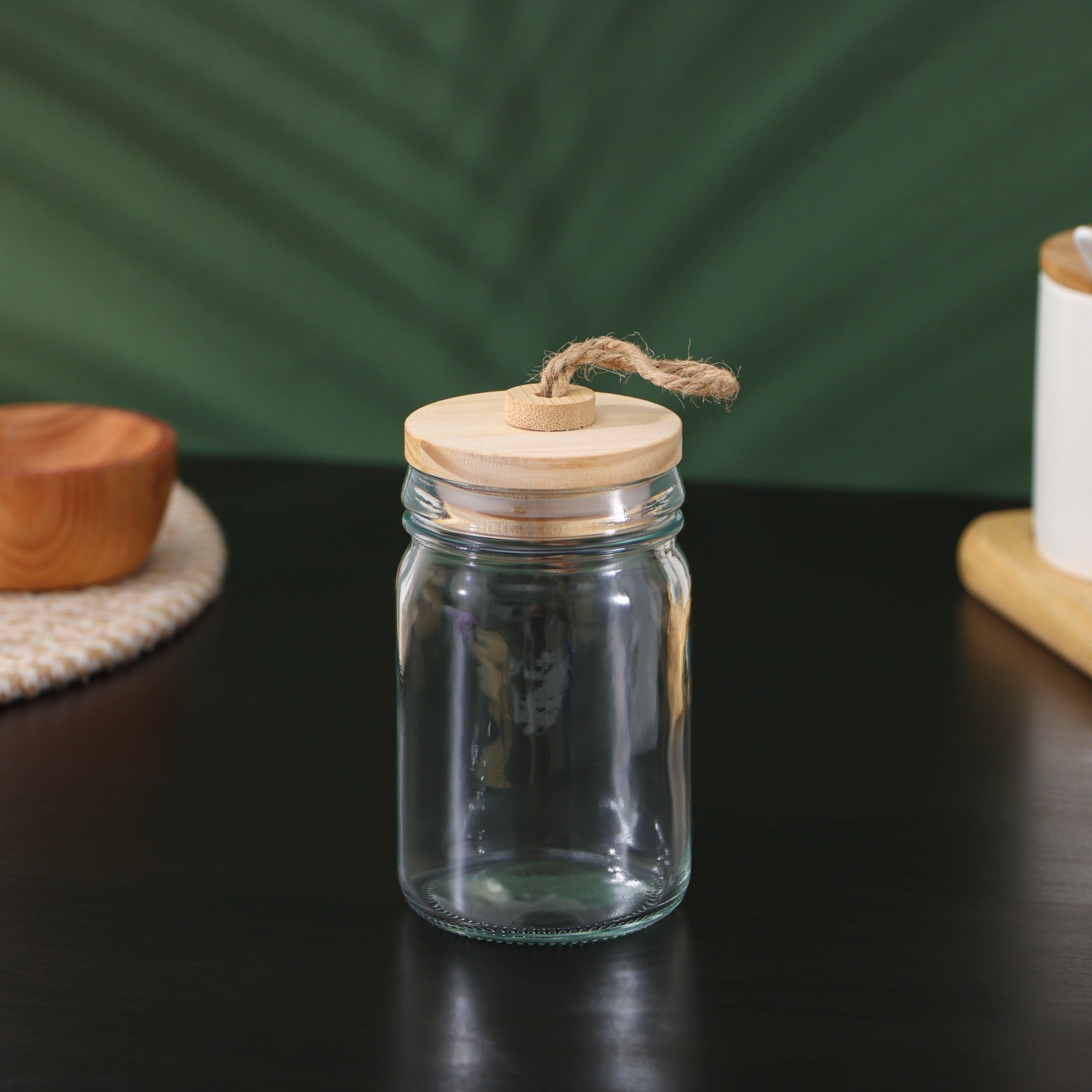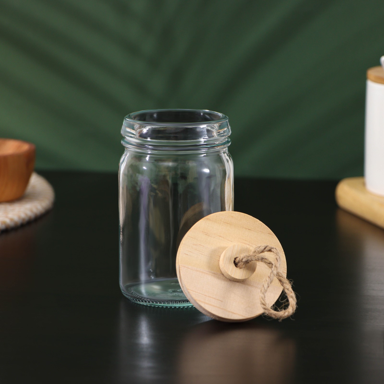 Банка стеклянная для сыпучих продуктов с бамбуковой крышкой Bellatenero «эко», 250 мл, 6,5x12 см