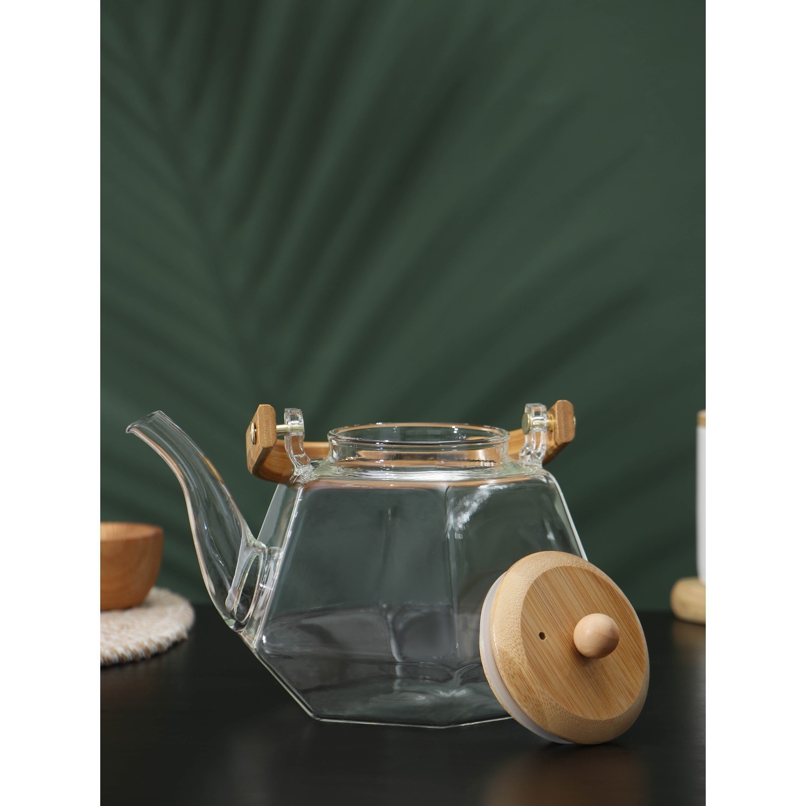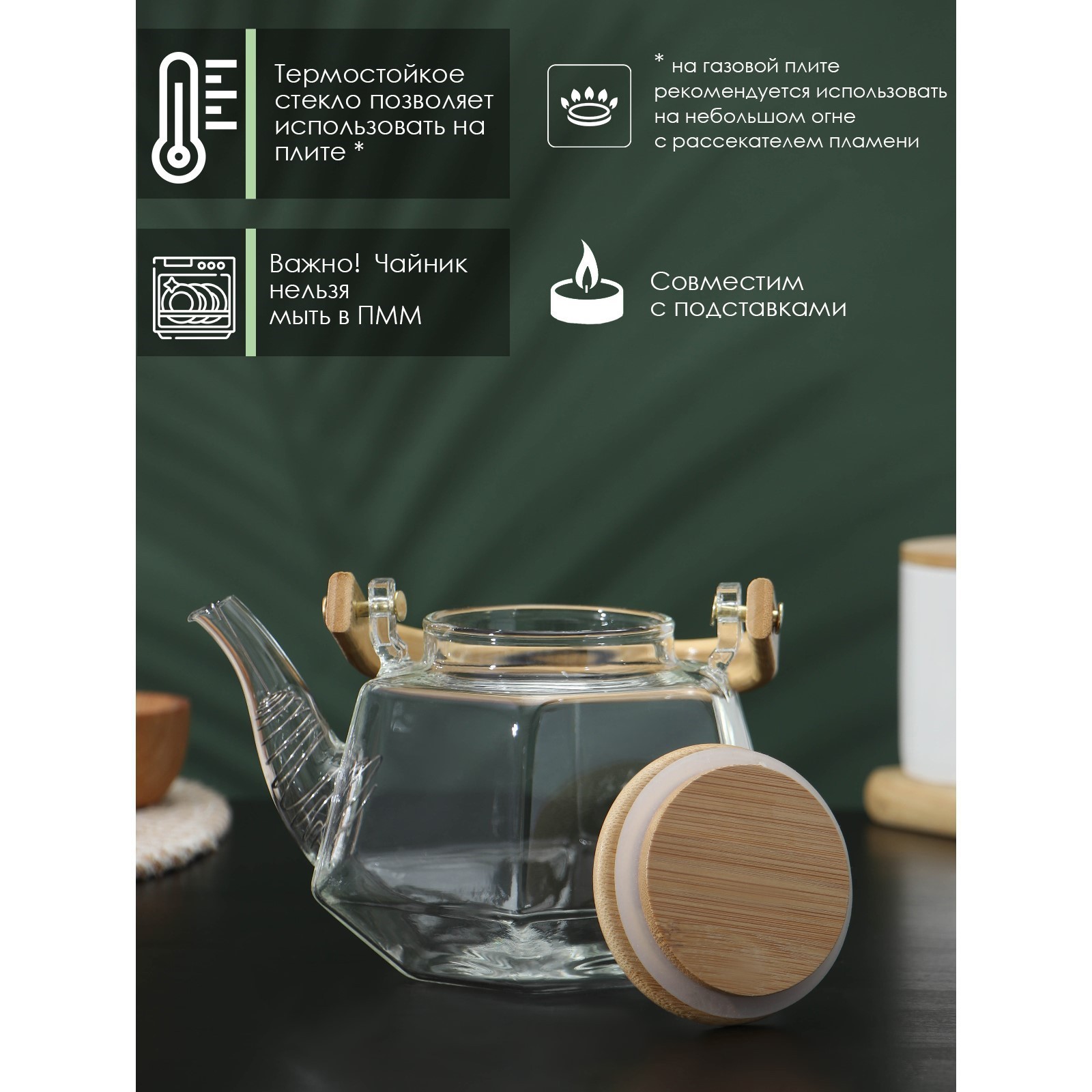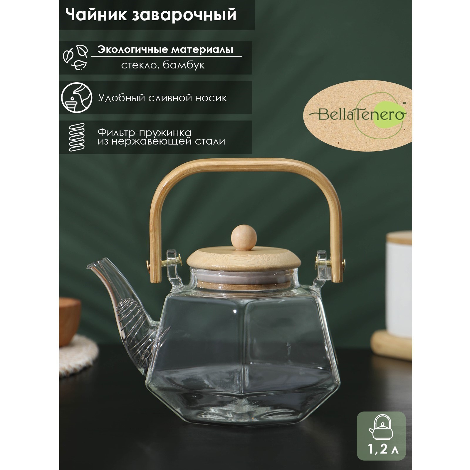 Чайник заварочный стеклянный с бамбуковой крышкой и металлическим фильтром Bellatenero «октогон», 1,2 л