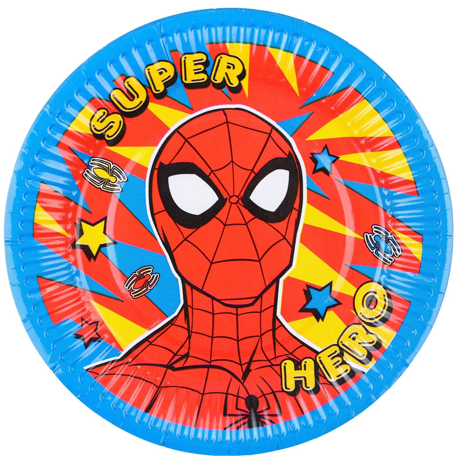 Тарелка бумажная "с днем рождения!", 18 см, человек-паук