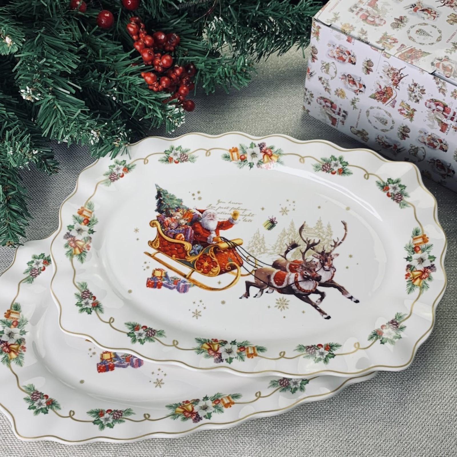 Набор из 2 овальных блюд Lenardi, 30.5 см, принт новогодний