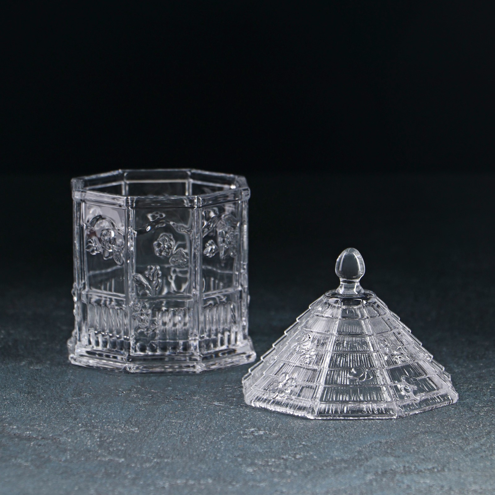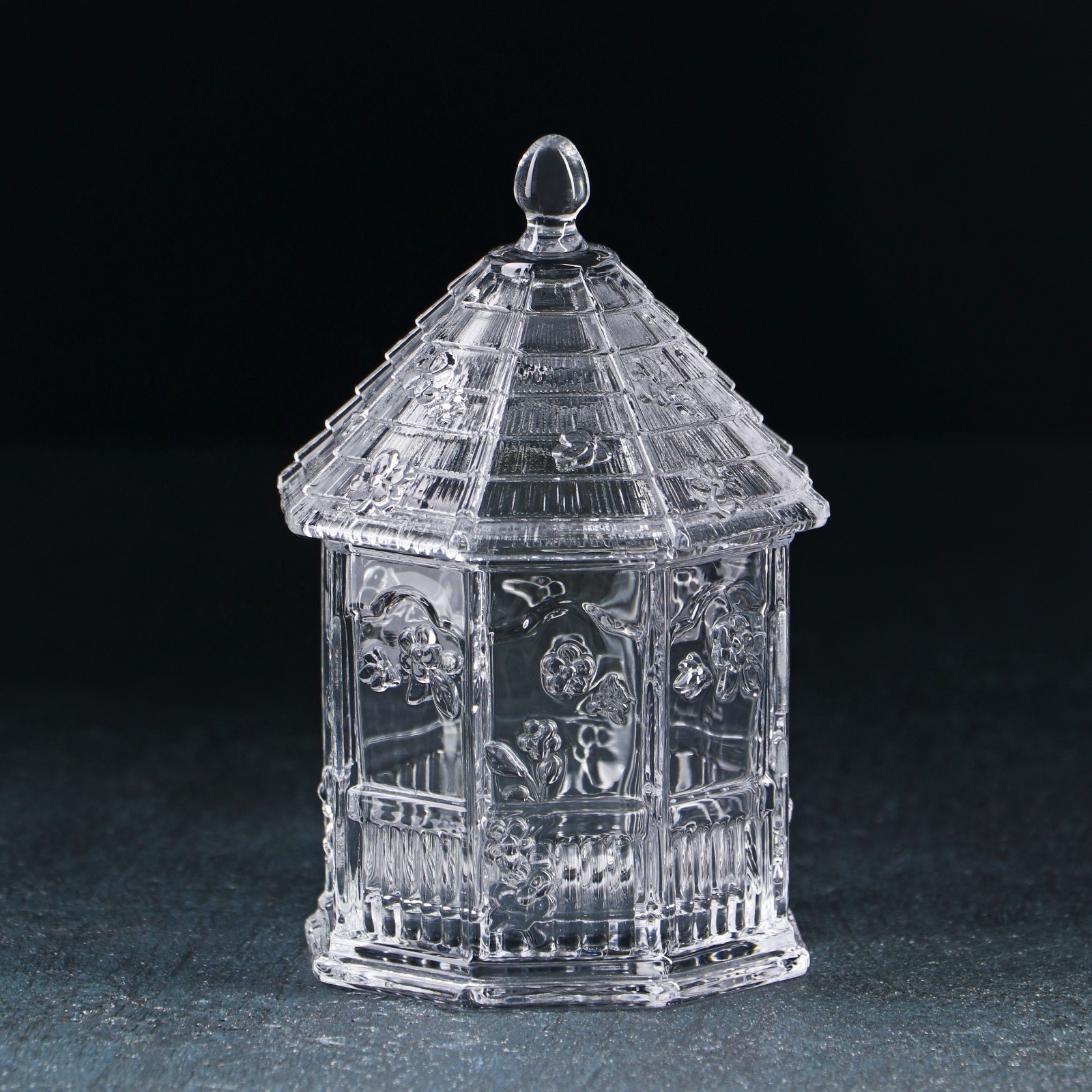 Конфетница стеклянная «беседка», 300 мл. Стеклянные вазы-конфетницы – легкий способ оживить сервировку и элегантно подать самые простые лакомства. Ваза предназначена для подачи и хранения сладостей, конфет, сахара, мёда, изюма, орехов, сухофруктов и многого другого. Конфетница не только украсит ваш кухонный стол и подчеркнет прекрасный вкус хозяина, но и станет отличным презентом для ваших близких и друзей. Цвет: Прозрачный Форма: Фигурная parts count: 0 Объём, мл: 300 tnved: 7013499900 Тематика: Однотонная Крышка: Да Материал: Стекло Можно мыть в посудомоечной машине: Да Текстура: С рельефом Особенности: Без особенностей Запрет реализации по сегментам: 00000000485 Форма: Фигурная  развернуть описание ▼