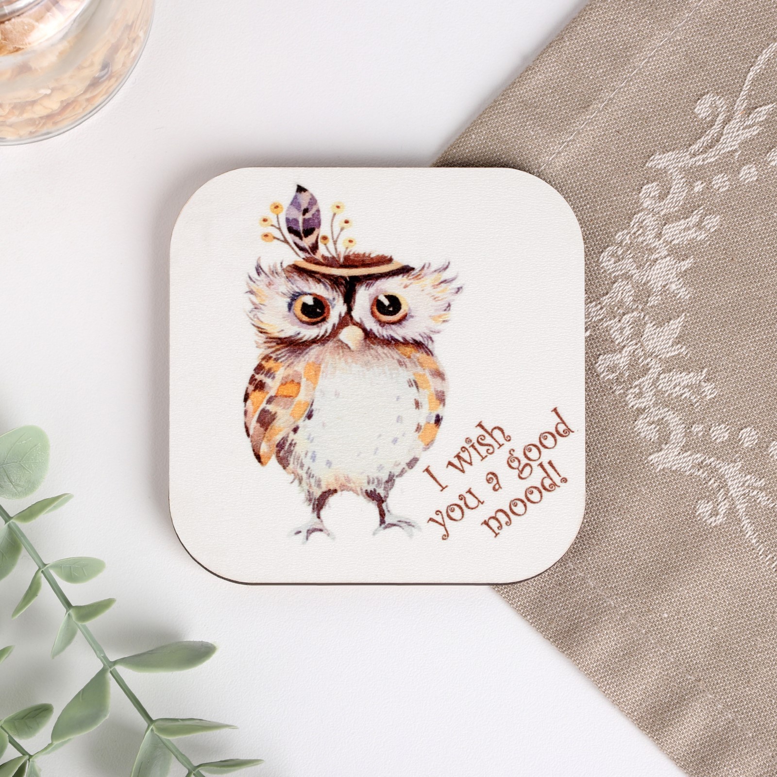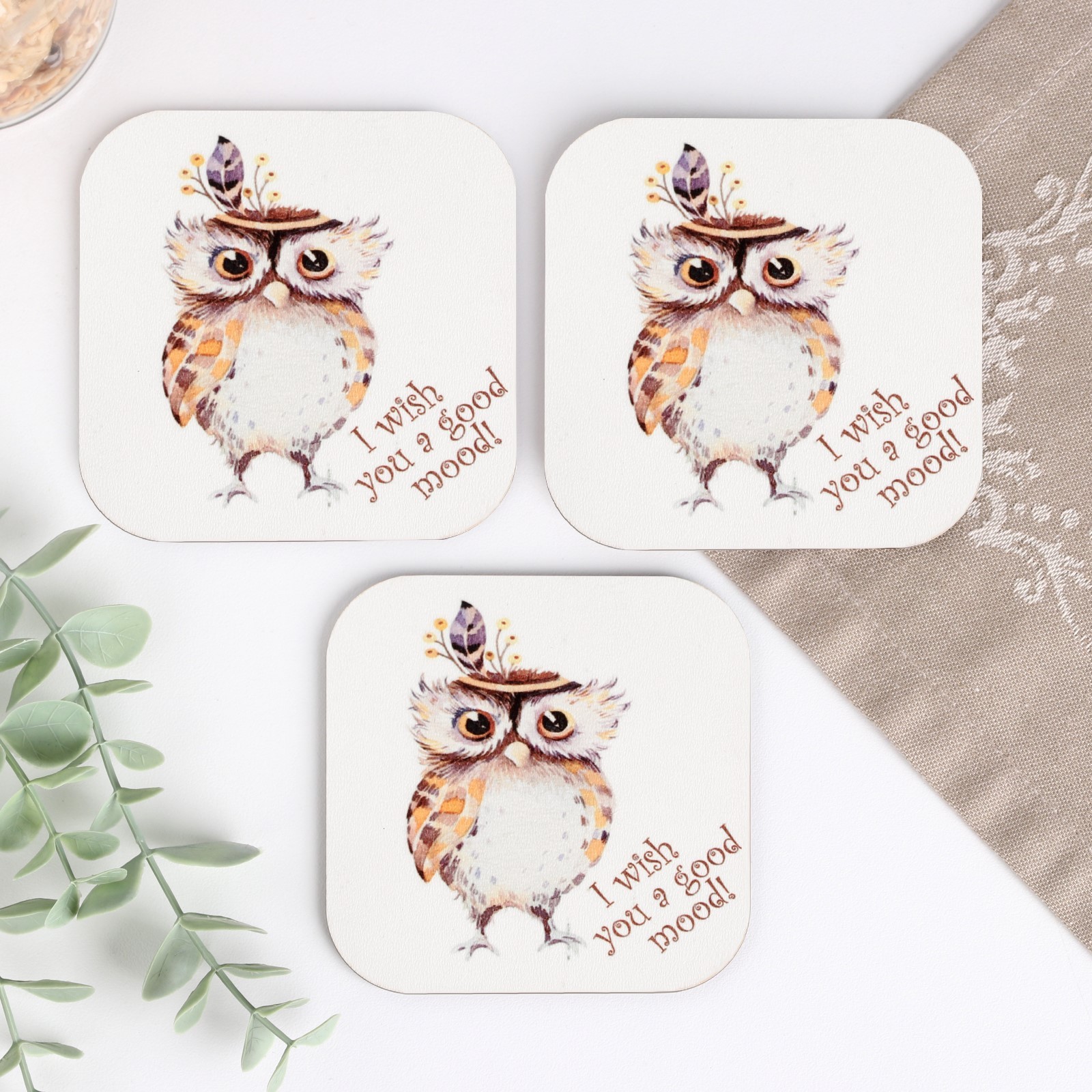Набор подставок под горячее, деревянные "сова" 9,5х9,5х0,9 см 3 шт