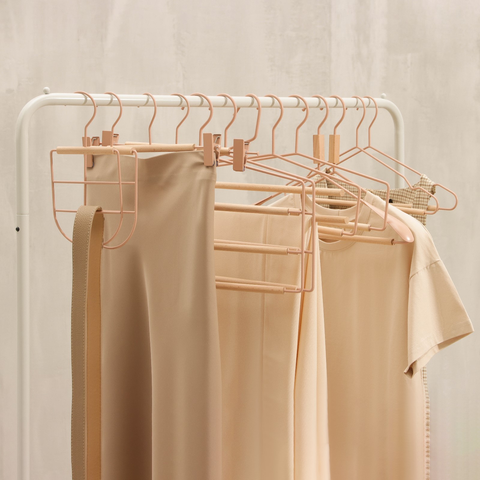 Array. На неудачно сложенной одежде могут появиться заломы и складки, из-за чего вещи приходится гладить повторно. Это маленькое неудобство можно решить с помощью специального предмета - вешалка. Вешалка – это компактное приспособление, которое позволит вам разместить в гардеробе классические штаны из лёгких или плотных материалов, блузки, рубашки, кофты и другие вещи. Изделие практичной формы занимает мало места, что позволяет экономить пространство в шкафу. Эргономичная форма поможет надёжно зафиксировать одежду и предотвратить её падение. Преимущества: Небольшой размер;Долговечность;Удобство эксплуатации;Безопасное покрытие. Цвет: Белый Вид вешалки: Для рубашек, блузок, трикотажа Возраст: Любой Материал: Металл Материал: Дерево Размер: 19.5 - 42.5 Многоуровневая: Нет Покрытие: Без покрытия  развернуть описание ▼